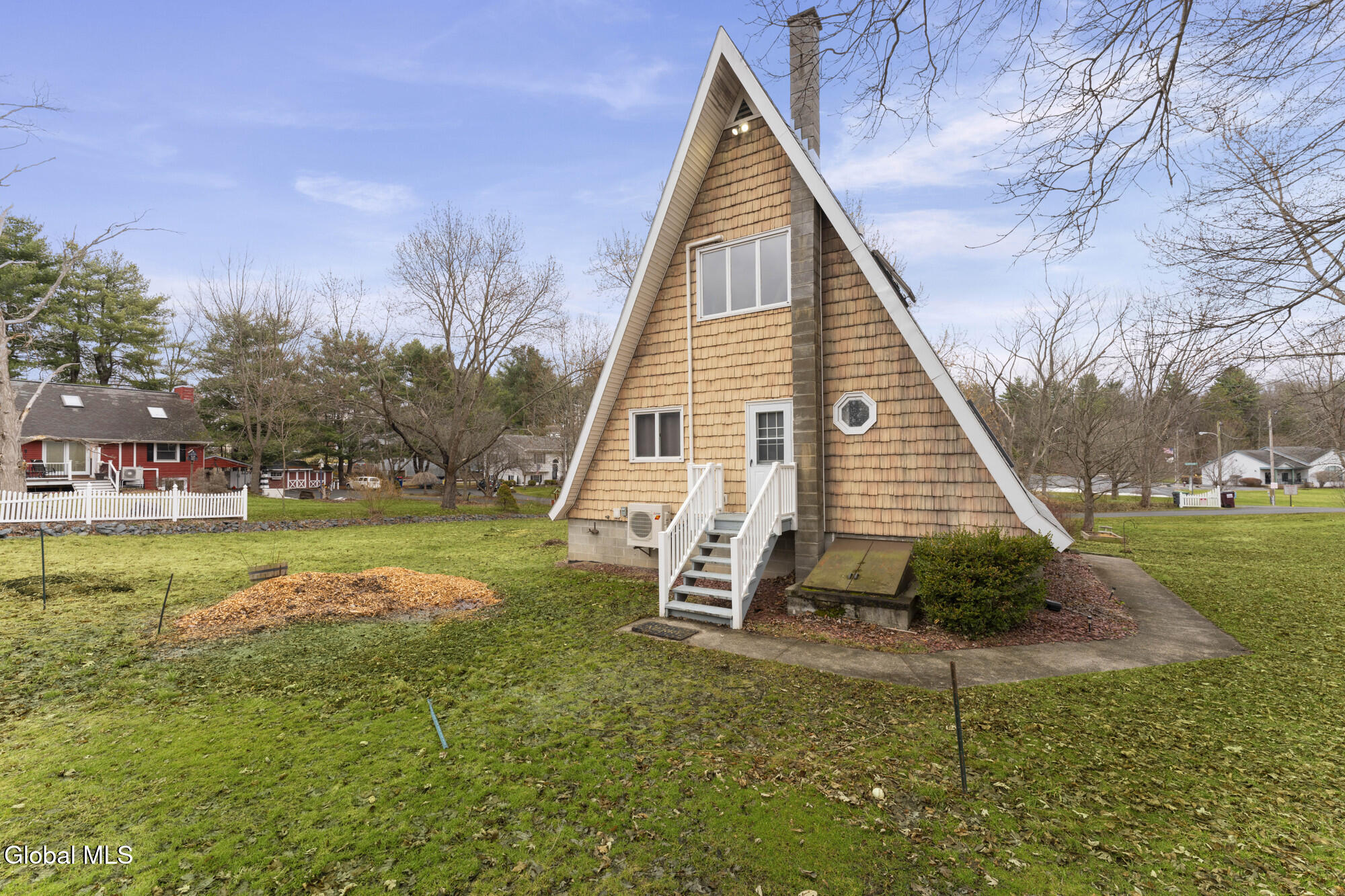 **Best and Final Offer Deadline Sunday 3/22 @ 2PM**Welcome Home! Here is your chance to own your fairy tale house. Opportunities like this do not come along often. Unique southern facing A-Frame which allows all the natural sun light throughout the day. Wide open floor plan with a cute spiral staircase in the center leading up to your loft bedroom. Great spot for entertaining with plenty of parking, large side yard and a full house length deck. Community center across the street with basketball and pickleball courts. Easy access for walking trails. Bathroom has new vanity. Adirondack Basement system installed in 2025. Roof is only 5 years old. Basement is ready to be finished to add additional living space. Close proximity to shopping and walking distance to Duncan's Dairy Barn.