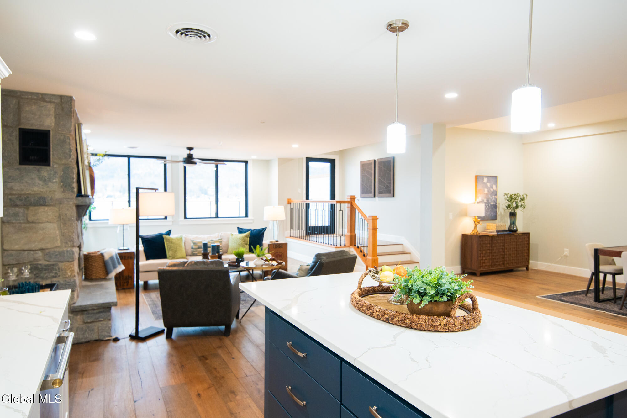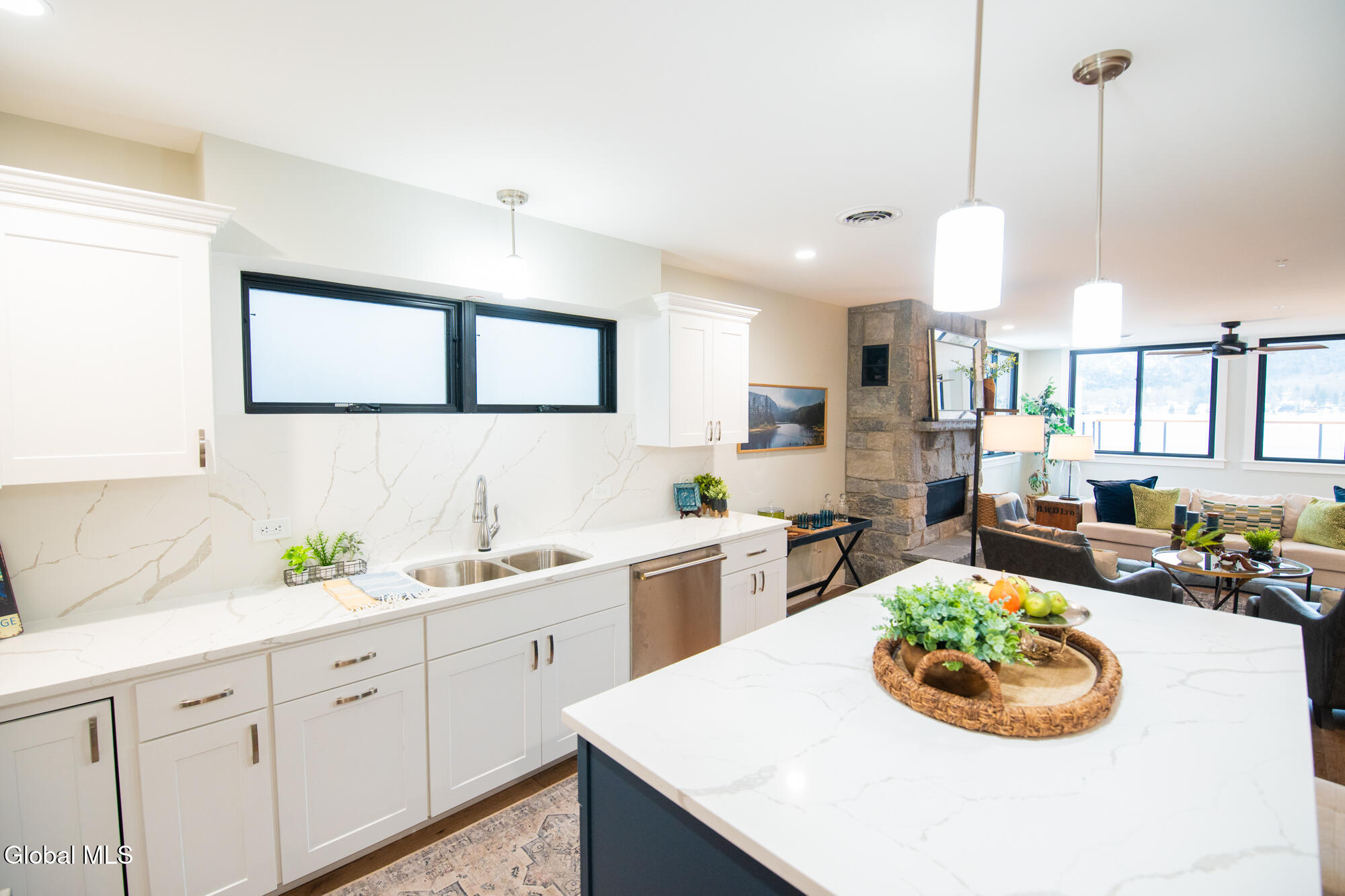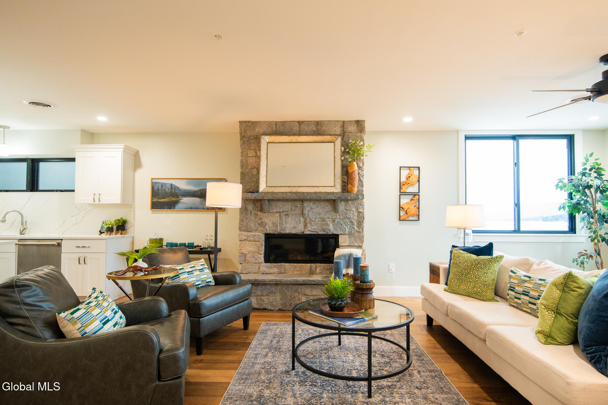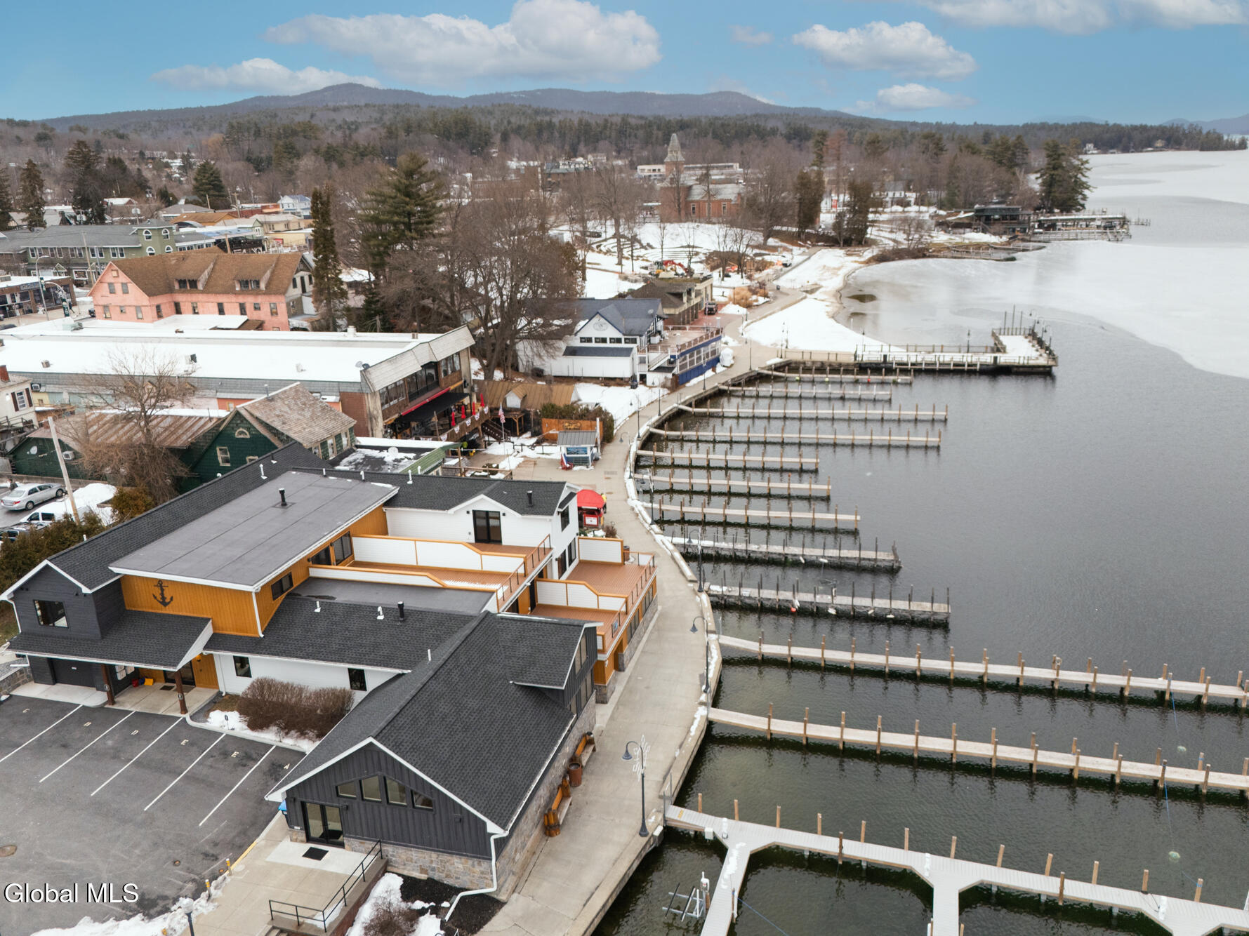 Exceptional brand new lakefront condominium located in the heart of Lake George Village, offering the ultimate in luxury, convenience, and low-maintenance living. This spacious 2,206 sq ft residence features 3 bedrooms, 2.5 baths, an attached 411 sq ft garage, and a stunning 377 sq ft lake-facing deck ideal for outdoor entertaining and enjoying panoramic water and mountain views. High-end finishes include quartz kitchen countertops, new appliances, a modern kitchen with island, stone gas fireplace, full walk-in showers, and a convenient laundry area. Also includes a private lobby locker, providing convenient additional storage for seasonal and recreational gear. Additional highlights include a high-efficiency gas furnace, central air, 40-gallon hot water heater, and a full fire sprinkler system. Dock space includes power and water, allowing your boat to be just steps away. HOA services include insurance, snow removal, yard maintenance, and common area care. A rare opportunity for new construction waterfront ownership with short-term rental potential (with the option to lease 30' dock slips directly on Lake George). Only five units available.