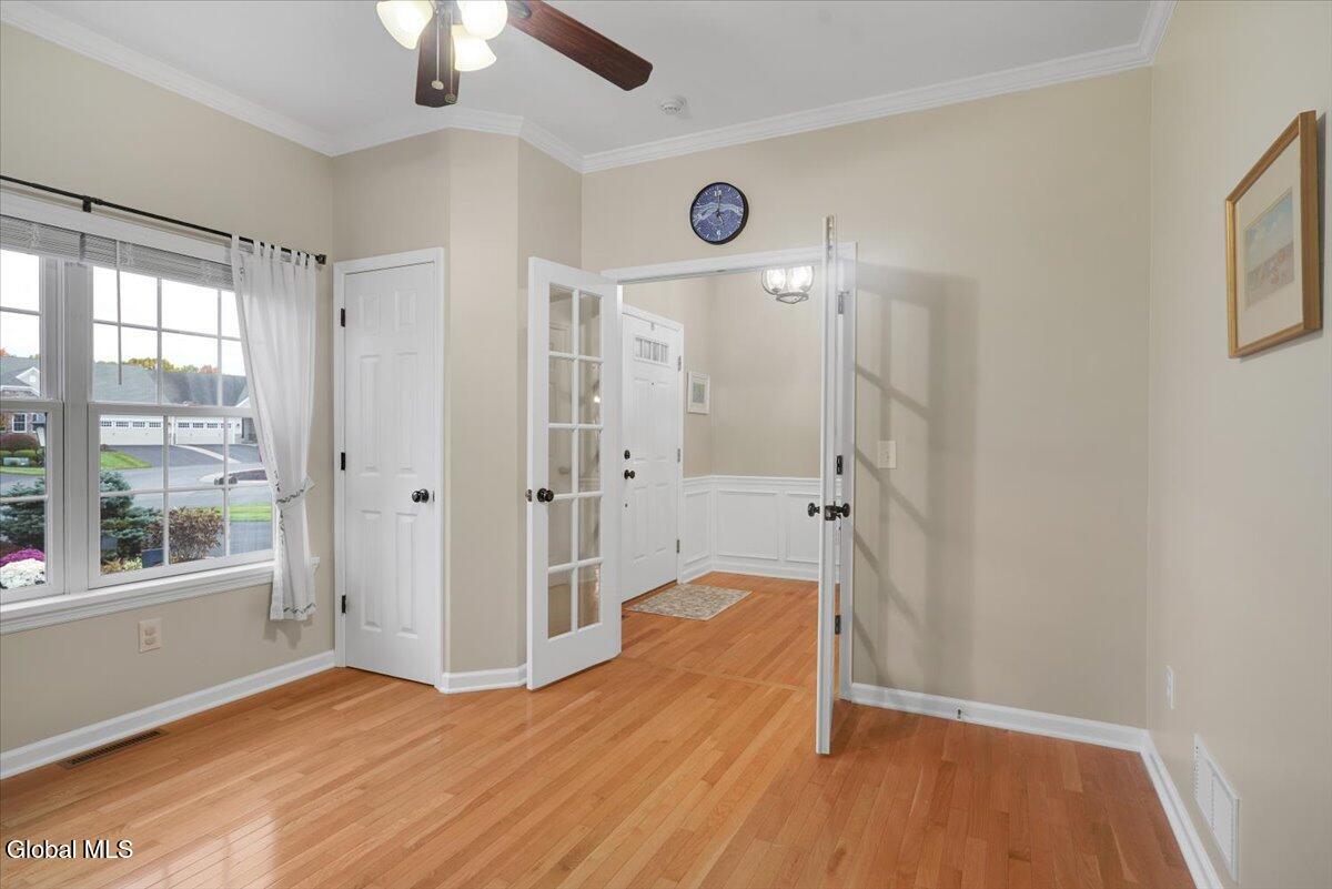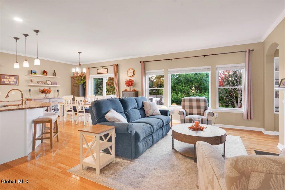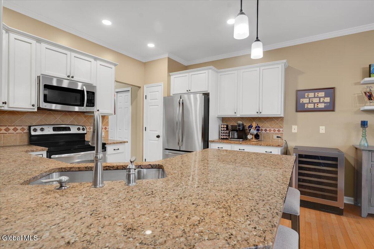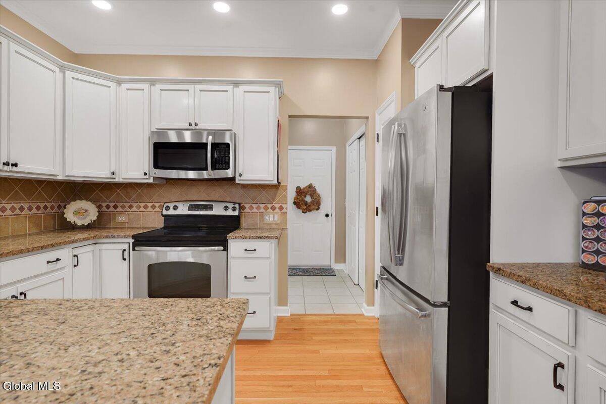 OPEN HOUSE CANCELLED! Discover refined living in this beautifully appointed two-story townhouse, perfectly blending sophistication and comfort. This 3-bed/2.5 bath home boasts an open-concept floor plan showcasing gleaming hardwood floors and crown molding. A stately fireplace anchors the inviting living room, creating the perfect ambiance for relaxing or entertaining. The kitchen is equipped with stainless steel appliances and ample cabinetry, seamlessly flowing into the dining and living spaces. The first-floor primary suite offers a private retreat with a spacious walk-in closet and a spa-inspired bath adorned with ceramic tile and elegant fixtures. Two additional bedrooms and a full bath provide comfort and flexibility for family or guests. Enjoy the convenience of first-floor laundry and a full unfinished basement—ideal for future expansion or additional storage. Outdoor living is equally impressive with a covered front porch and a pressure-treated deck overlooking a fenced in backyard complete with front and rear sprinkler system. Additional highlights include a two-car garage, central air, and access to premier community. The beautiful, spacious community clubhouse includes fully equipped fitness center, locker rooms, billiard room, library, full kitchen, and entertainment areas including a sparkling pool. If you are looking for additional outdoor activities, enjoy the pickleball and tennis courts as well as the nearby paved hiking trails are perfect! Experience the perfect balance of luxury, style, and low-maintenance living in this exceptional home. *Washer and dryer, Wine refrigerator and refrigerator in garage are NOT included in sale.
