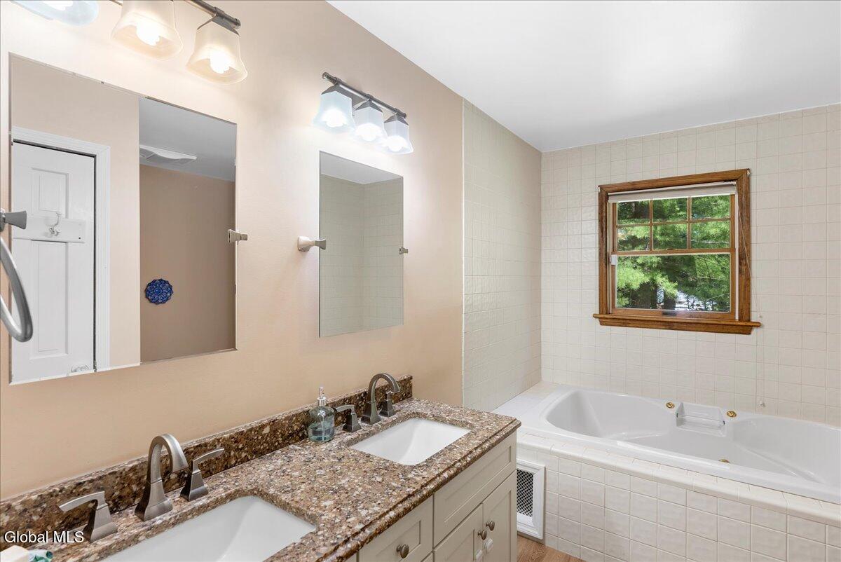 This beautiful home offers over 3100 sq. ft of private living nestled on a 2.6 acre corner lot in East Greenbush Schools. Featuring two primary suites (one being on the first floor), a vaulted two story living room, a custom kitchen with stainless steel appliances and granite countertops, a large pantry, stylish bathrooms, and a beautiful sunroom to enjoy the secluded backyard. The upstairs has a loft for bonus space - make it a gym, an office, or playroom. Other features include hardwood floors, crown molding, skylights, a 6 year old roof, sheds for storage, and so much more. Don't miss this slice of privacy in a quiet neighborhood, just minutes from shopping, schools, restaurants, and more. Quick close available - be in by the end of August!