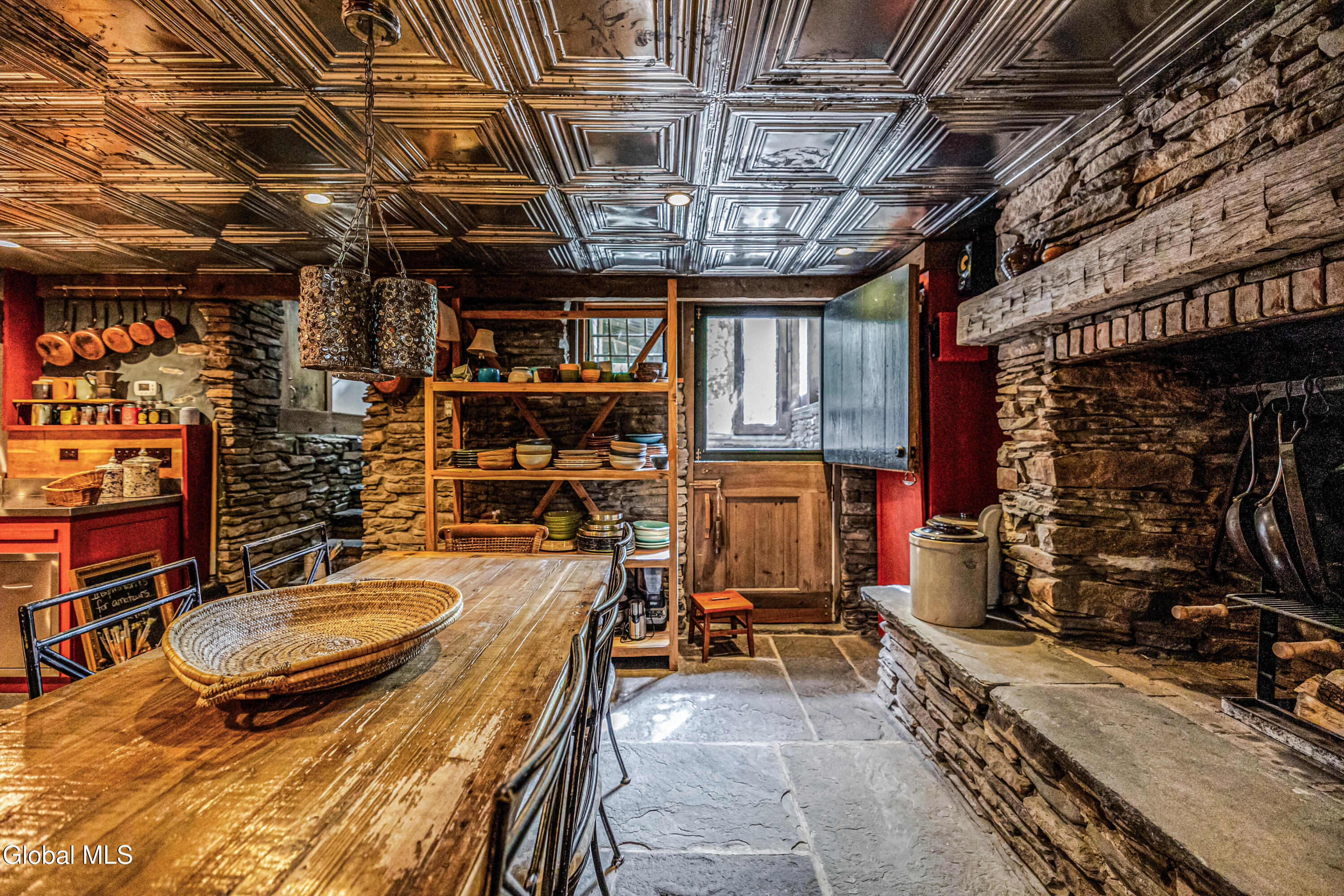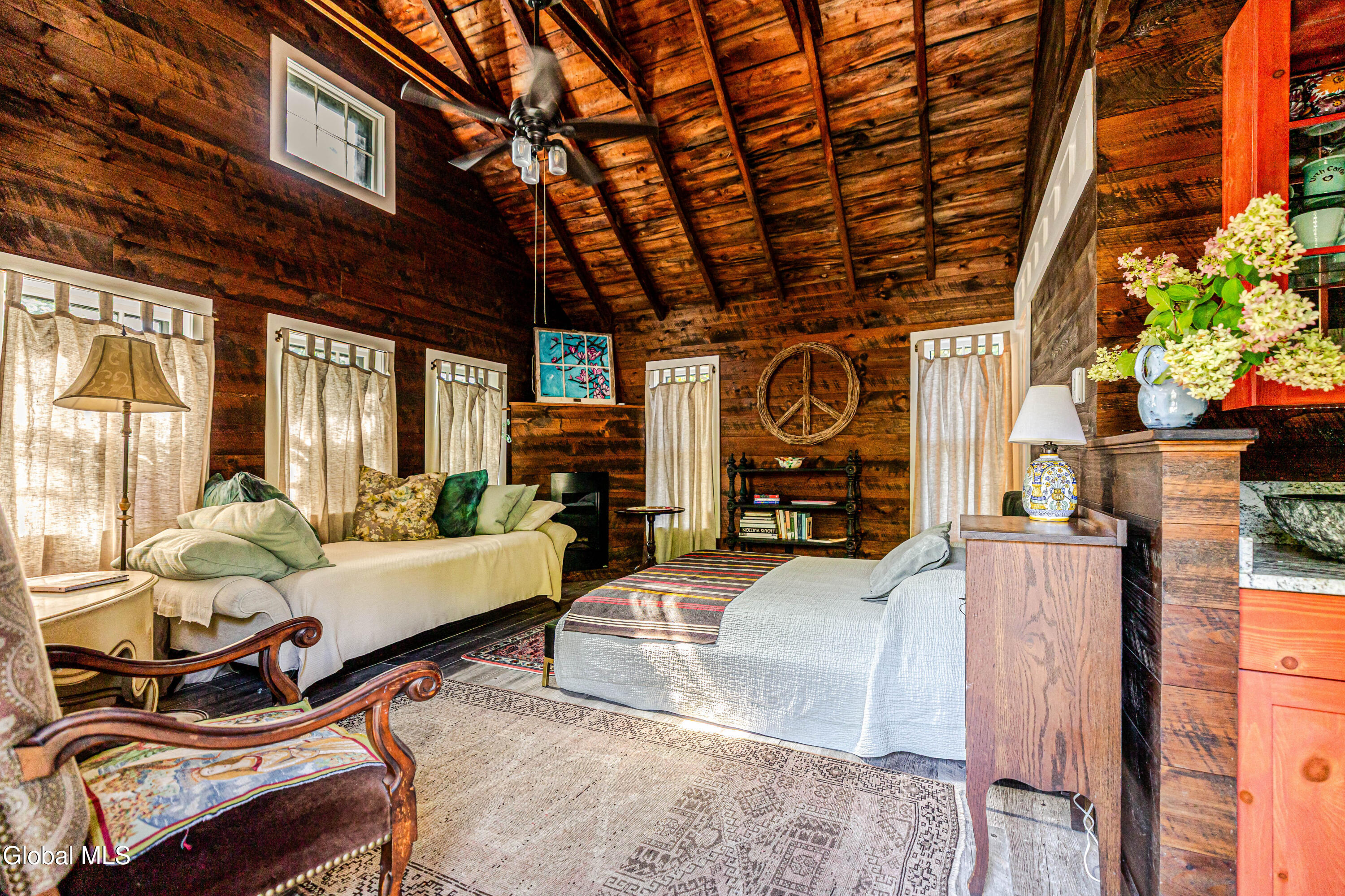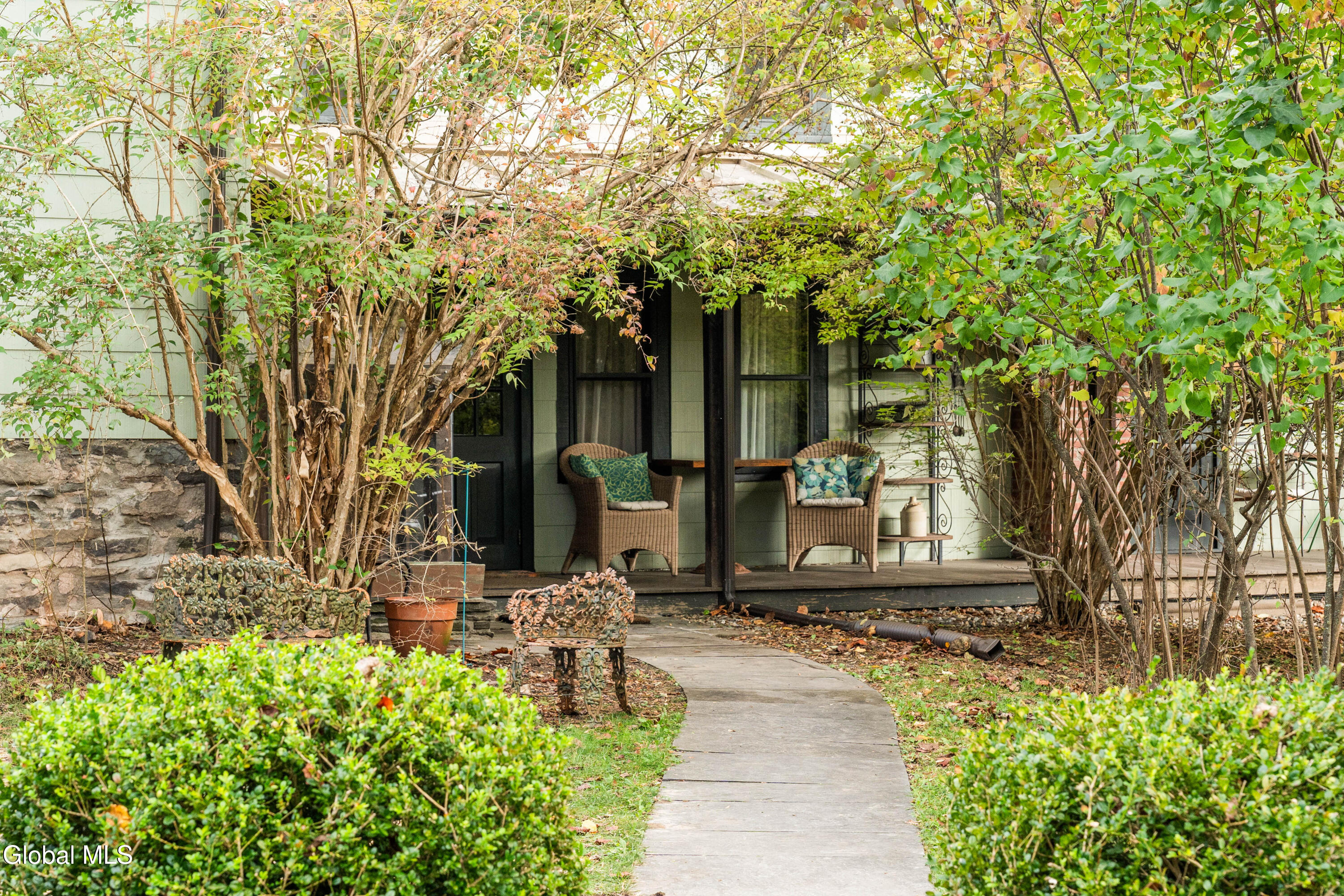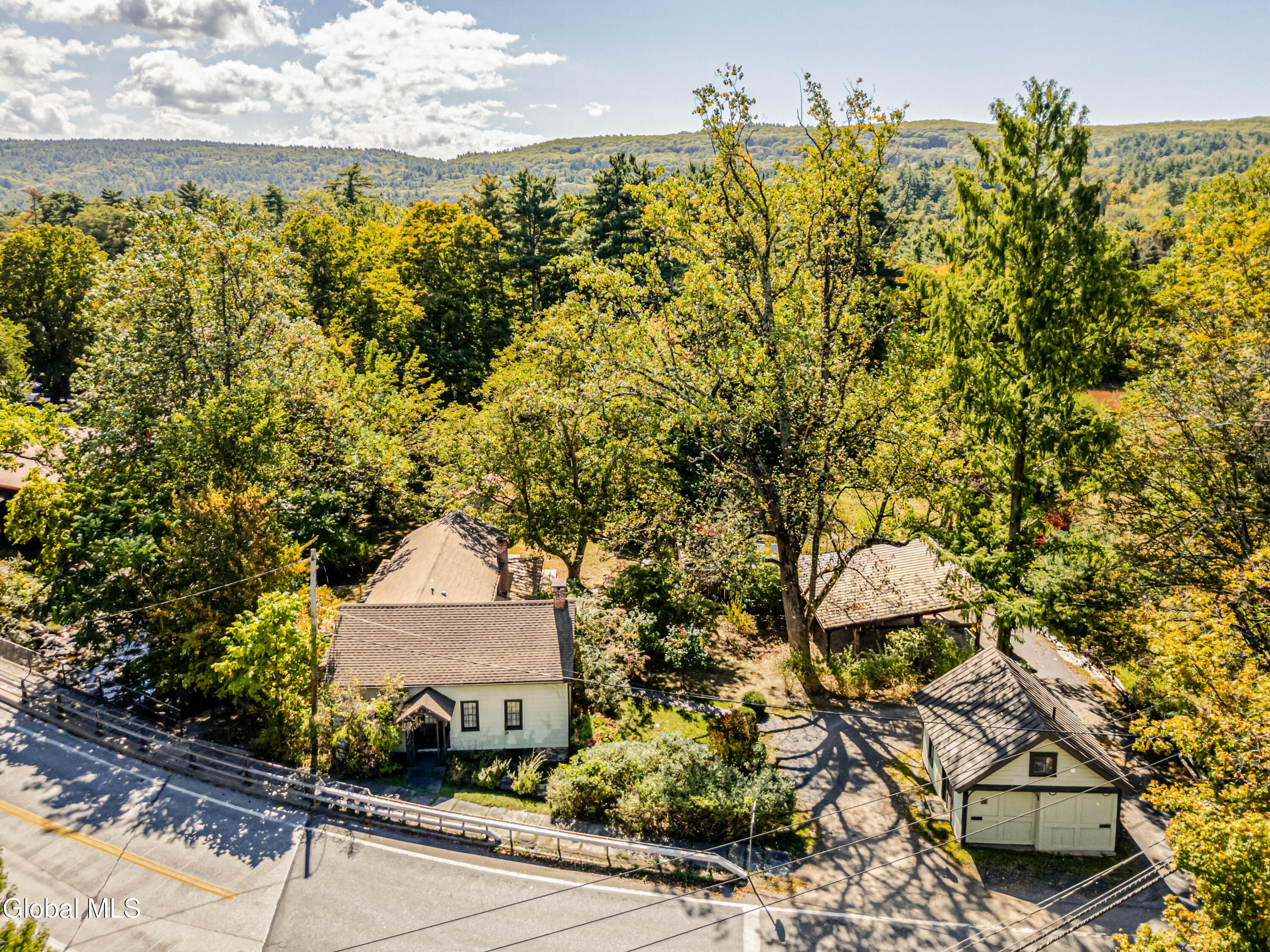 Welcome to Bearsville Record House, a landmark property with a legacy in American music. Built in 1873 and once home to Bearsville Records, this storied compound includes two dwellings; the main farmhouse and a guest cottage, plus a studio building waiting to be finished to your specs. A gunite saltwater pool, outdoor kitchen, and fenced-in plum orchard complete the grounds, all along 500 feet of private Sawkill creek frontage. The main house retains its 19th-century character with a vaulted living room with wood stove, library with cedar sauna, and a chef's kitchen with dramatic wood-burning hearth and radiant-heated bluestone floors. The guest cottage features a walk-in shower and kitchenette, and the studio adds creative flexibility. Steps from Cub Market and Bearsville Theater, and just two miles from Woodstock, this is a one-of-a-kind Catskills cultural retreat.