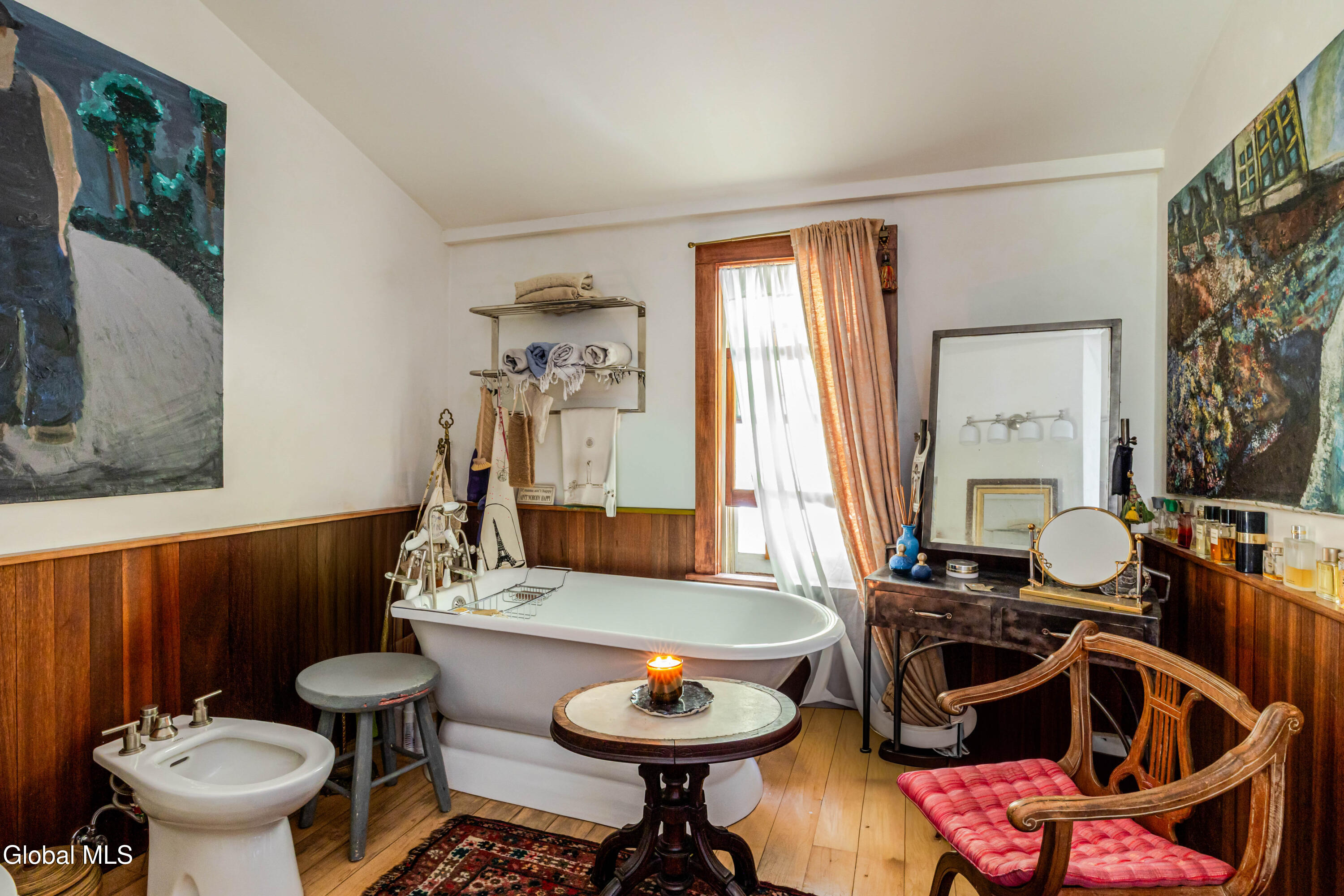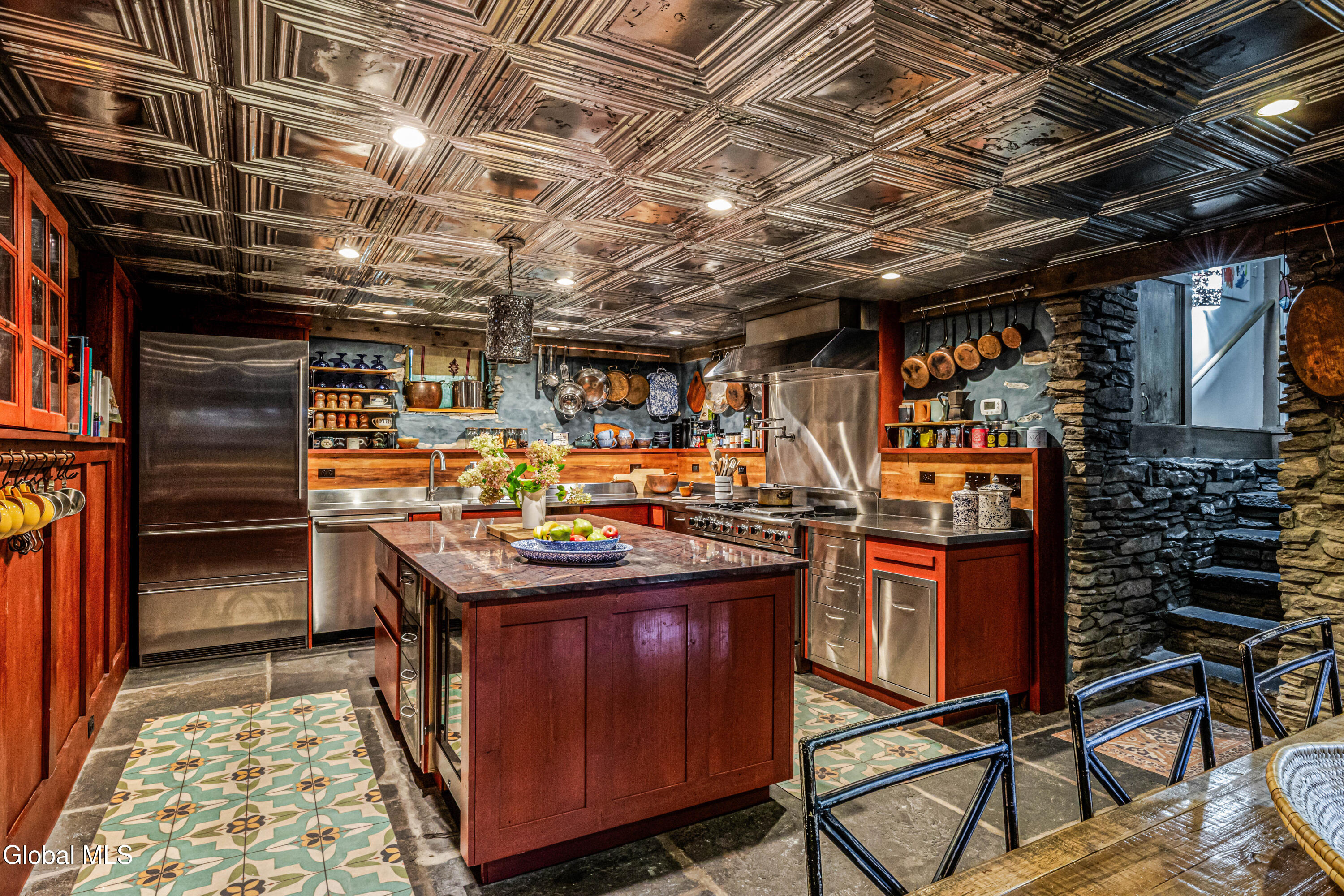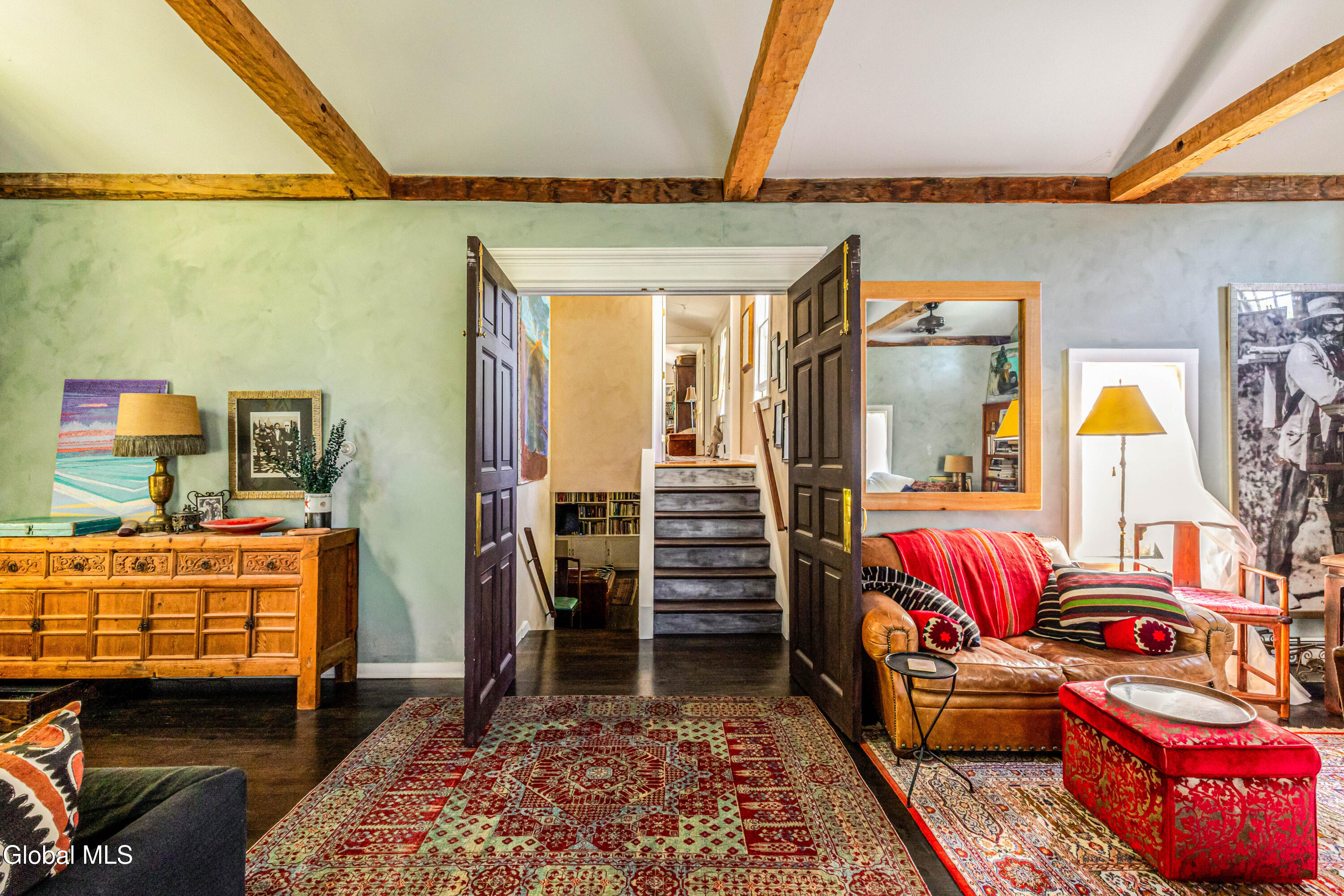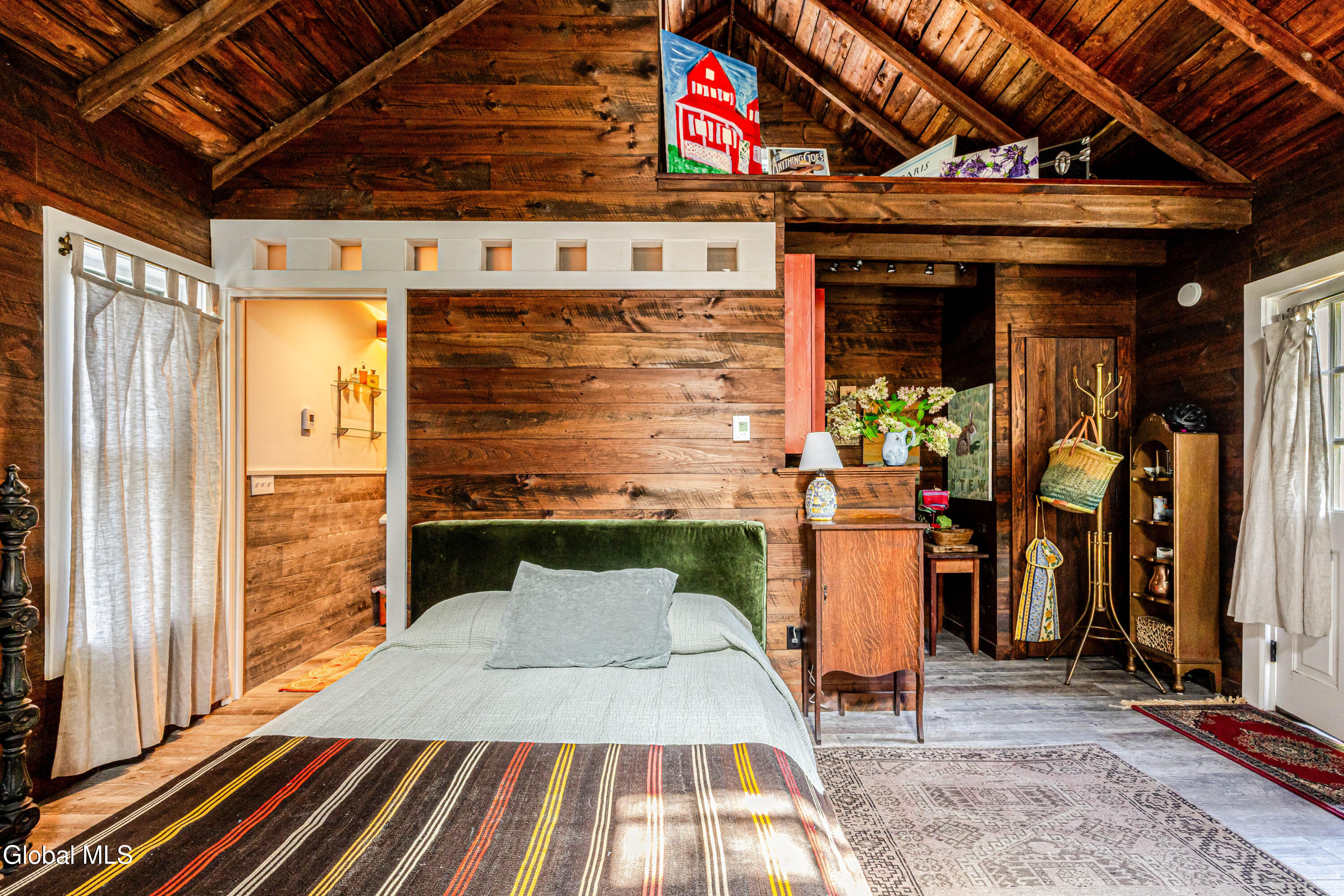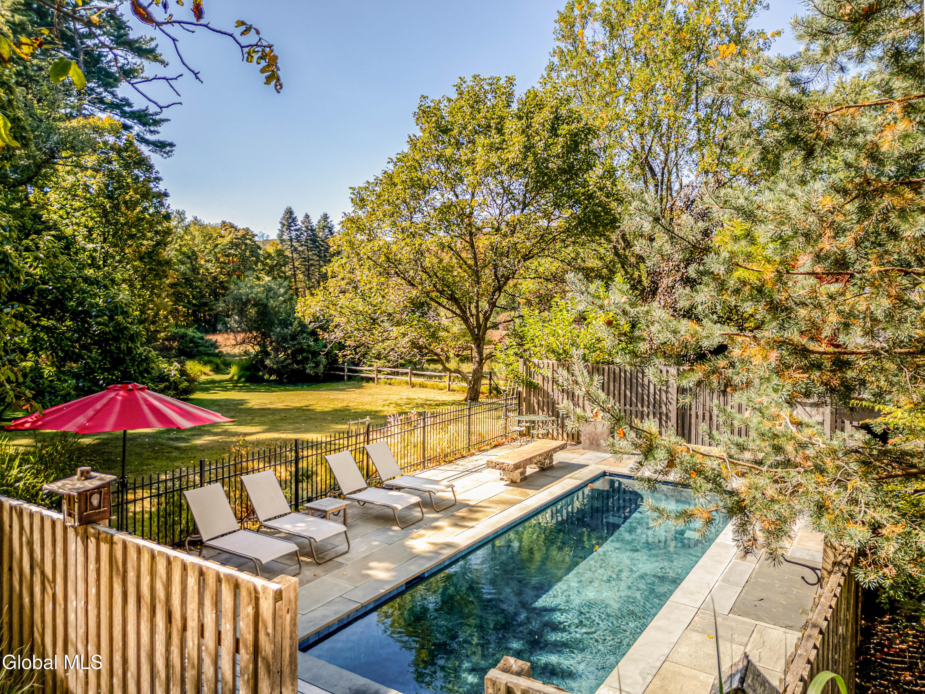 Welcome to Bearsville Record House, a landmark property with a legacy in American music. Built in 1873 and once home to Bearsville Records, this storied compound includes two dwellings; the main farmhouse and a guest cottage, plus a studio building waiting to be finished to your specs. A gunite saltwater pool, outdoor kitchen, and fenced-in plum orchard complete the grounds, all along 500 feet of private Sawkill creek frontage. The main house retains its 19th-century character with a vaulted living room with wood stove, library with cedar sauna, and a chef's kitchen with dramatic wood-burning hearth and radiant-heated bluestone floors. The guest cottage features a walk-in shower and kitchenette, and the studio adds creative flexibility. Steps from Cub Market and Bearsville Theater, and just two miles from Woodstock, this is a one-of-a-kind Catskills cultural retreat.