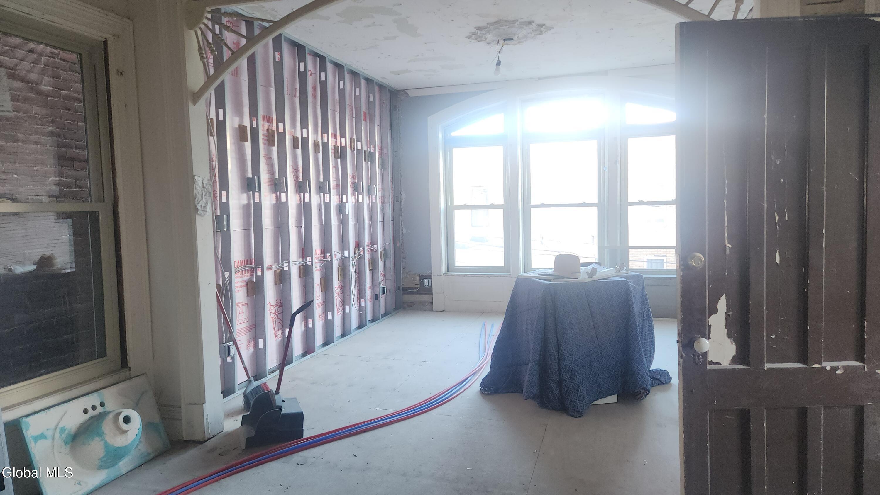 So much has been done but owner needs to go south to your benefit. Most of the heaviy lifting done. New Roof, Porches, Windows, Heating system, most of the electric and much more. Plumbing roughed in and each unit will have a 2nd full bath. Just finish and its ready to go.