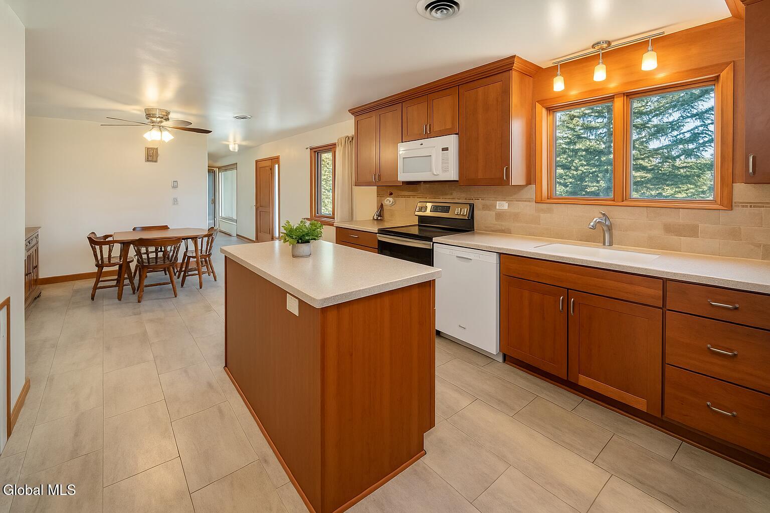*Best & Final offers due Mon 10/27 at 12noon* Set well back from the road and tucked behind a row of evergreens brought down from the Adirondacks, this cherished one-owner ranch in Selkirk invites you to slow down and savor life's simple pleasures. Step inside this 3 bed, 1 full bath home and feel the warmth of a home that has been lovingly cared for over the years. Mornings begin in the heart of the house—the beautifully updated kitchen—where sunlight glows on Corian counters and soft-close cabinets crowned with molding. The custom-tiled backsplash and handy island make it the perfect place to bake or prep meals. Gather with those dear to you in the dining area, adjacent to the ample kitchen. Relax on the sofa in the generous sized living room. The recently remodeled bath offers modern amenities with a custom tiled shower and comfort-height vanity. Each bedroom feels peaceful and private, especially the spacious primary bedroom. Open the window and savor the fresh air while you sip your coffee in the 3 season room (breezeway). Finish the full basement and double the size of your living space. Outside, there's room to garden and to host summer picnics. A massive 24'x24' garage with workshop is ready for tinkering or storing your tools. With a newer roof (2020) Central A/C (2021) and newer appliances this home offers the rare reassurance of knowing everything has been well cared for—ready to embrace its next loving owner.