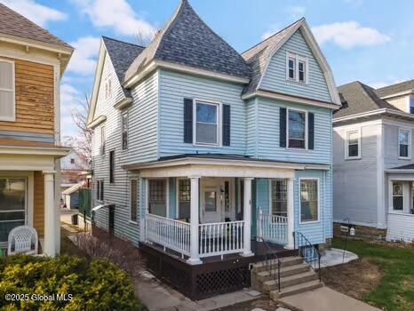 Charming Queen Anne Colonial on Upper Union Street! Located on a picturesque, tree-lined boulevard between Union & Grand, this 4-bedroom, 2-bath home blends timeless Victorian character with modern updates. Step inside to find beautifully refinished white pine floors, a bright and welcoming foyer, and a cozy living area filled with natural light from large windows. The updated kitchen features light oak flooring, while the newly renovated second-floor bath adds a touch of modern comfort. Upstairs, a spacious third-floor bonus room offers the perfect space for a home office, studio, or extra bedroom. The heated basement provides even more usable space for storage or recreation. Enjoy mornings on the covered front porch, take advantage of off-street parking via the rear alley, and appreciate the classic curb appeal of this move-in-ready gem. Move-in ready — schedule your private showing today!