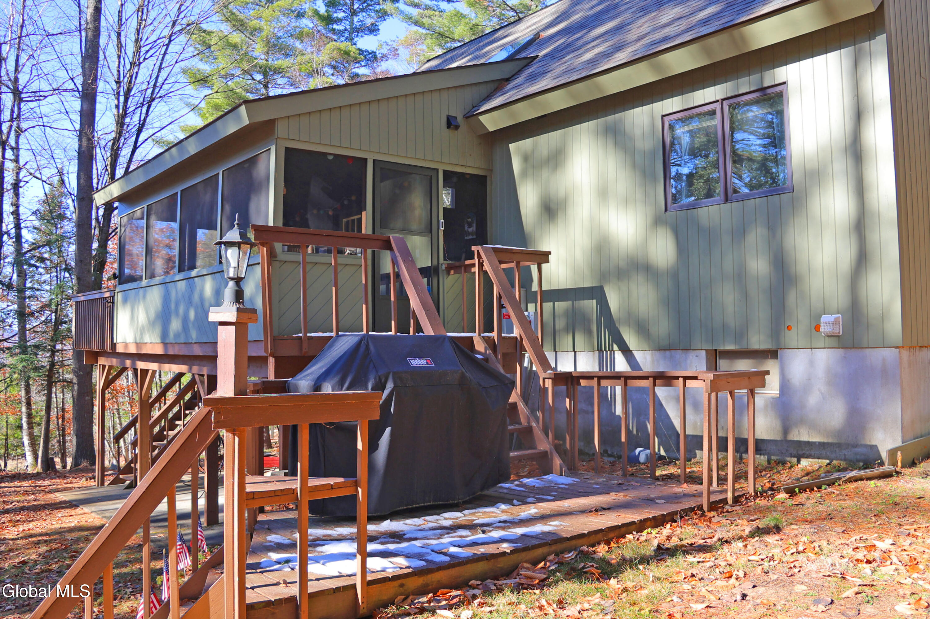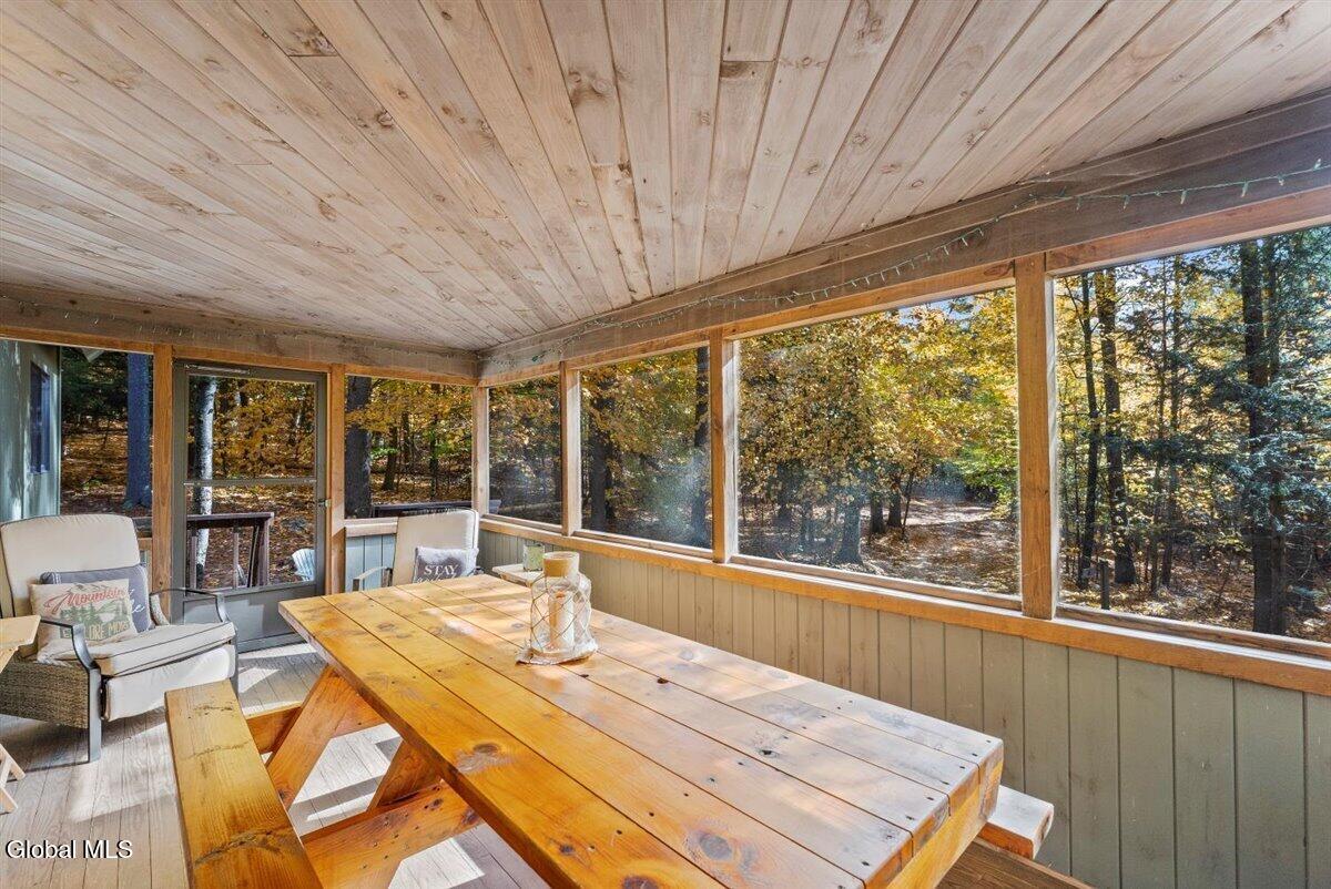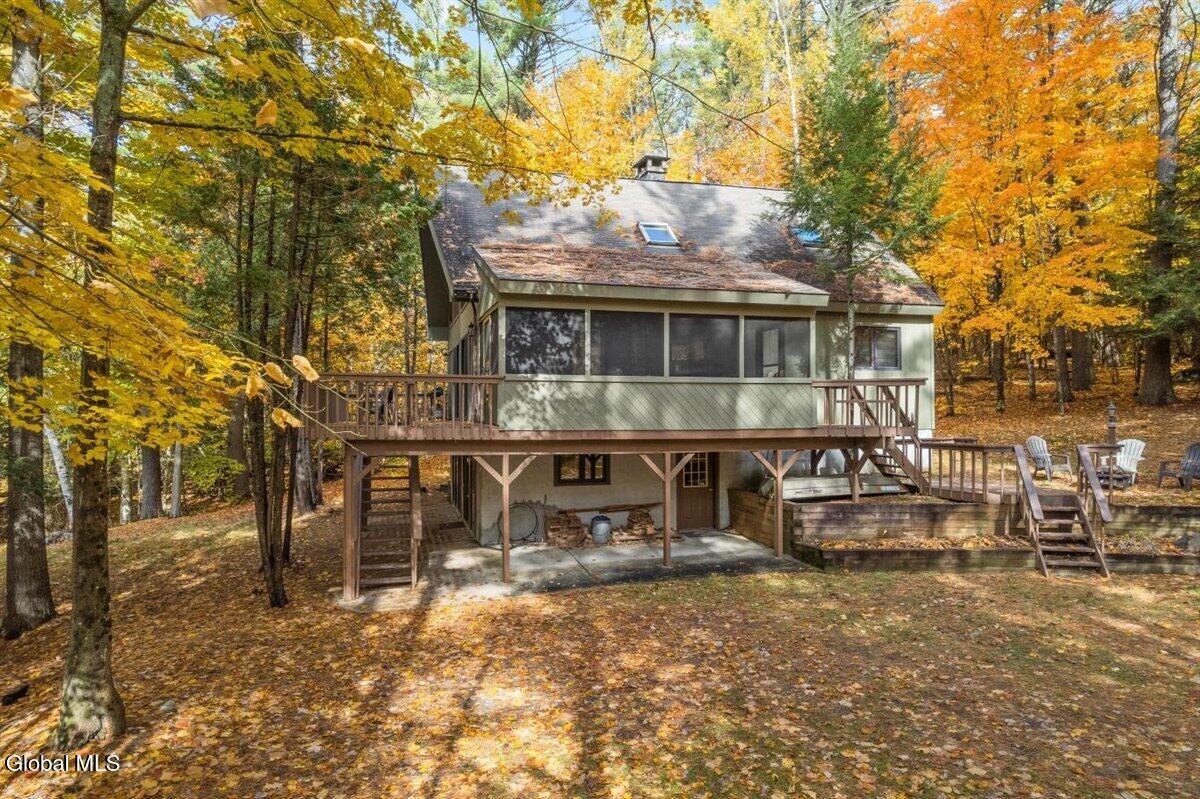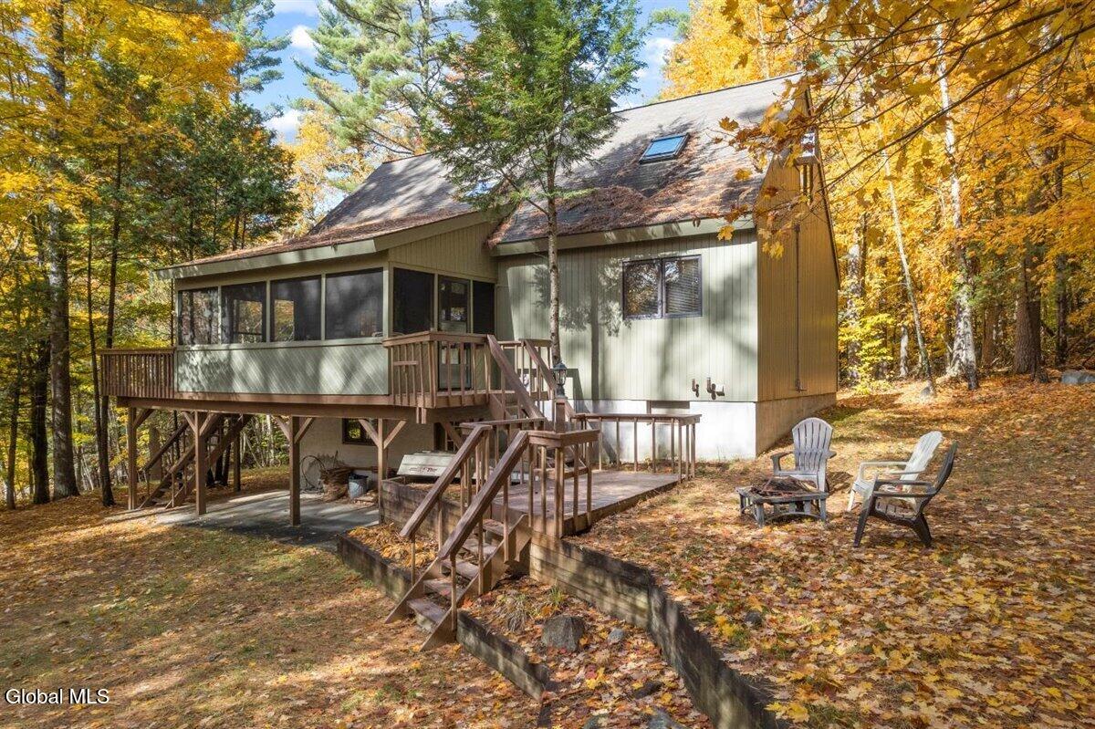 Escape to the Adirondacks with lake rights to 9-mile Schroon Lake on a natural, wooded 2-acre parcel tucked at the end of a quiet dead-end road. Total serenity with no neighbors in sight, yet you're only under 30 minutes to Gore Mountain for skiing and year-round recreation. This 3-bedroom, 2-bath Adirondack chalet offers the perfect four-season base camp, featuring a bright open floor plan, soaring chalet windows, and an expansive wrap-around deck overlooking the peaceful forest backdrop. Recent upgrades include a new roof, whole-new house generator, new LP furnace, updated flooring, and selective tree removal to open up the grounds. Enjoy the convenience and peace of mind of a home that has been thoughtfully improved and well-maintained. Best of all—enjoy deeded rights to the beautiful Blue Sky Beach & docking area. Whether you're seeking a weekend getaway, addition to your portfolio, or year-round retreat, this property delivers true Adirondack adventure in all four seasons.