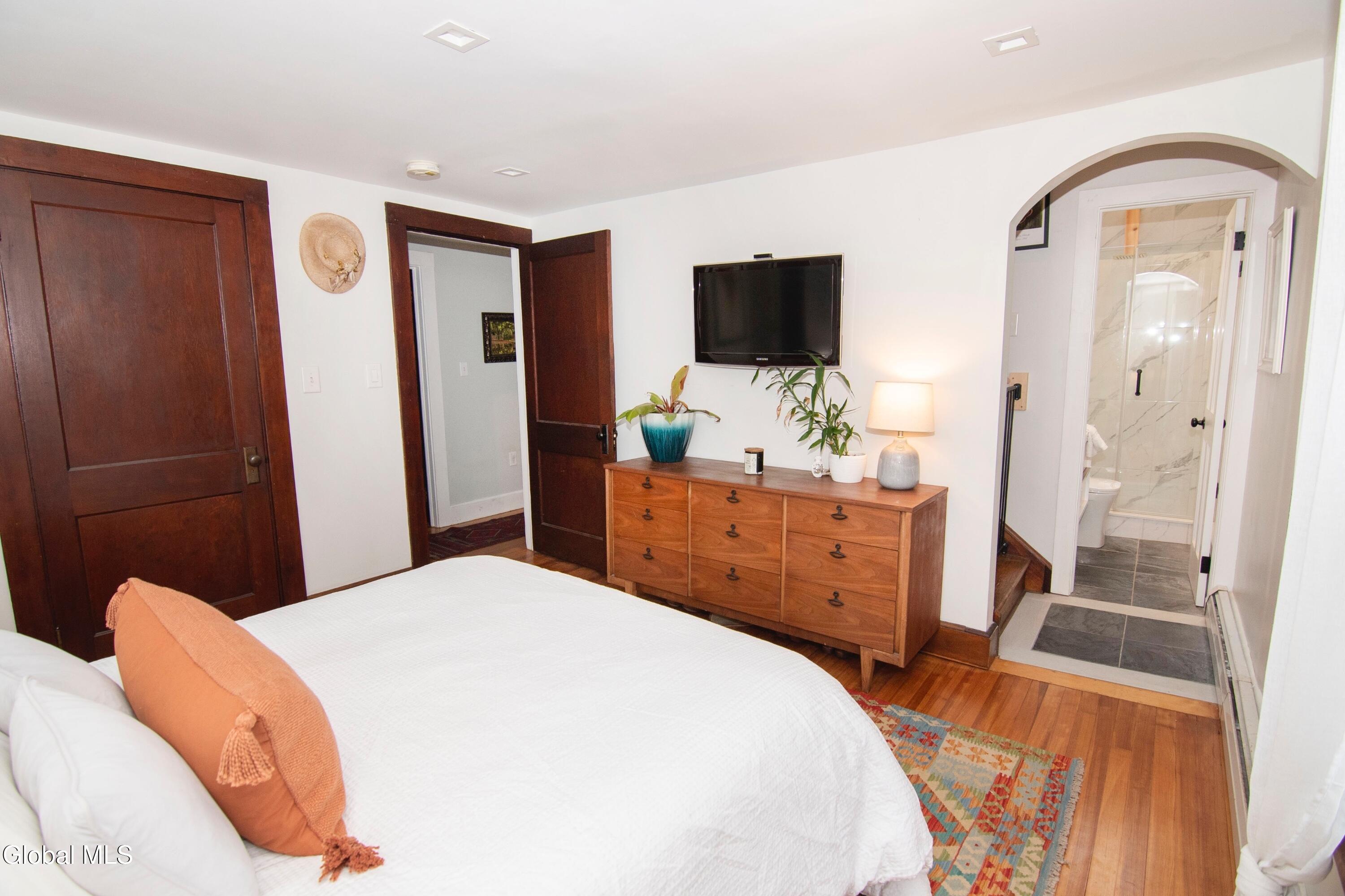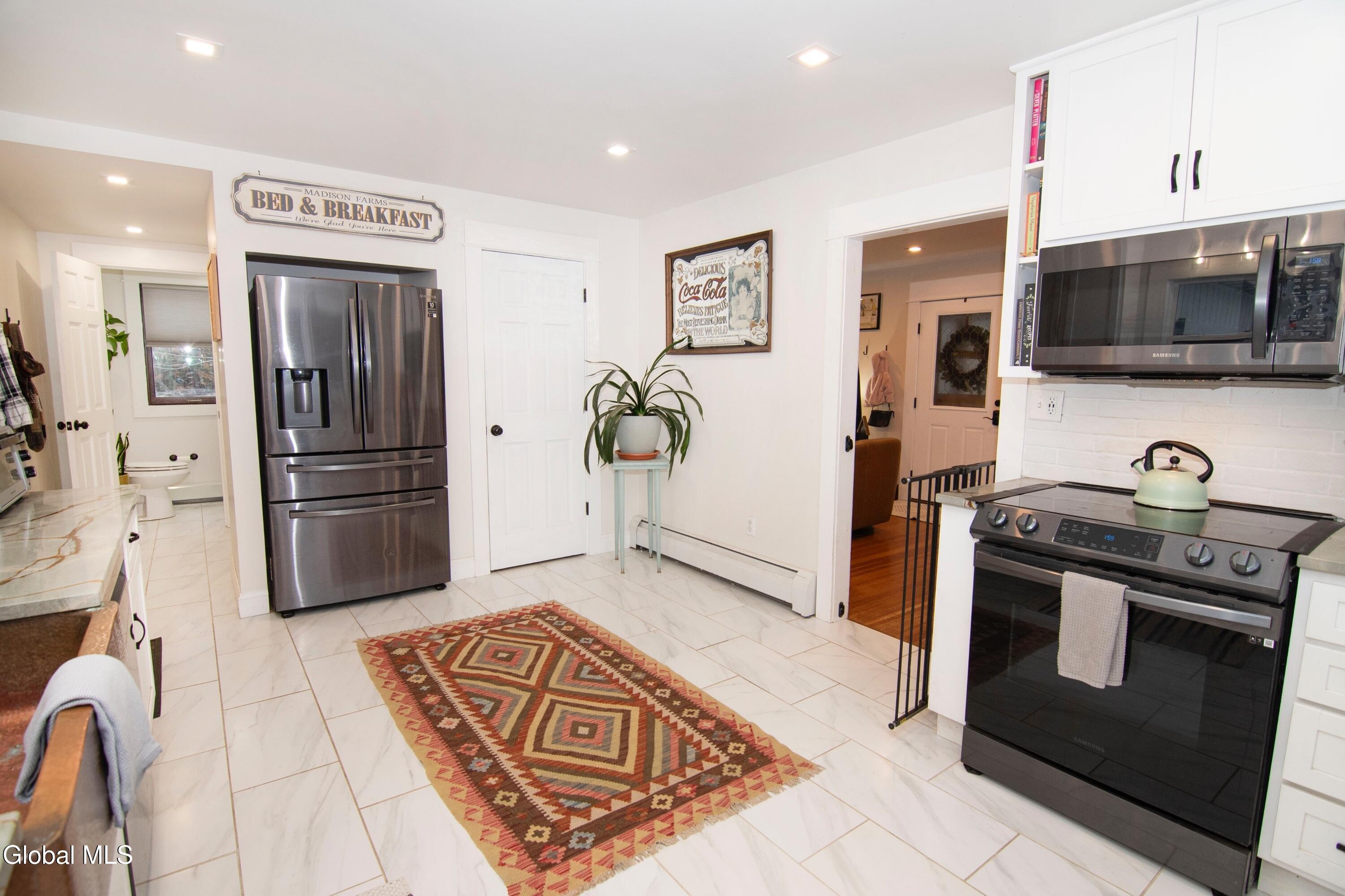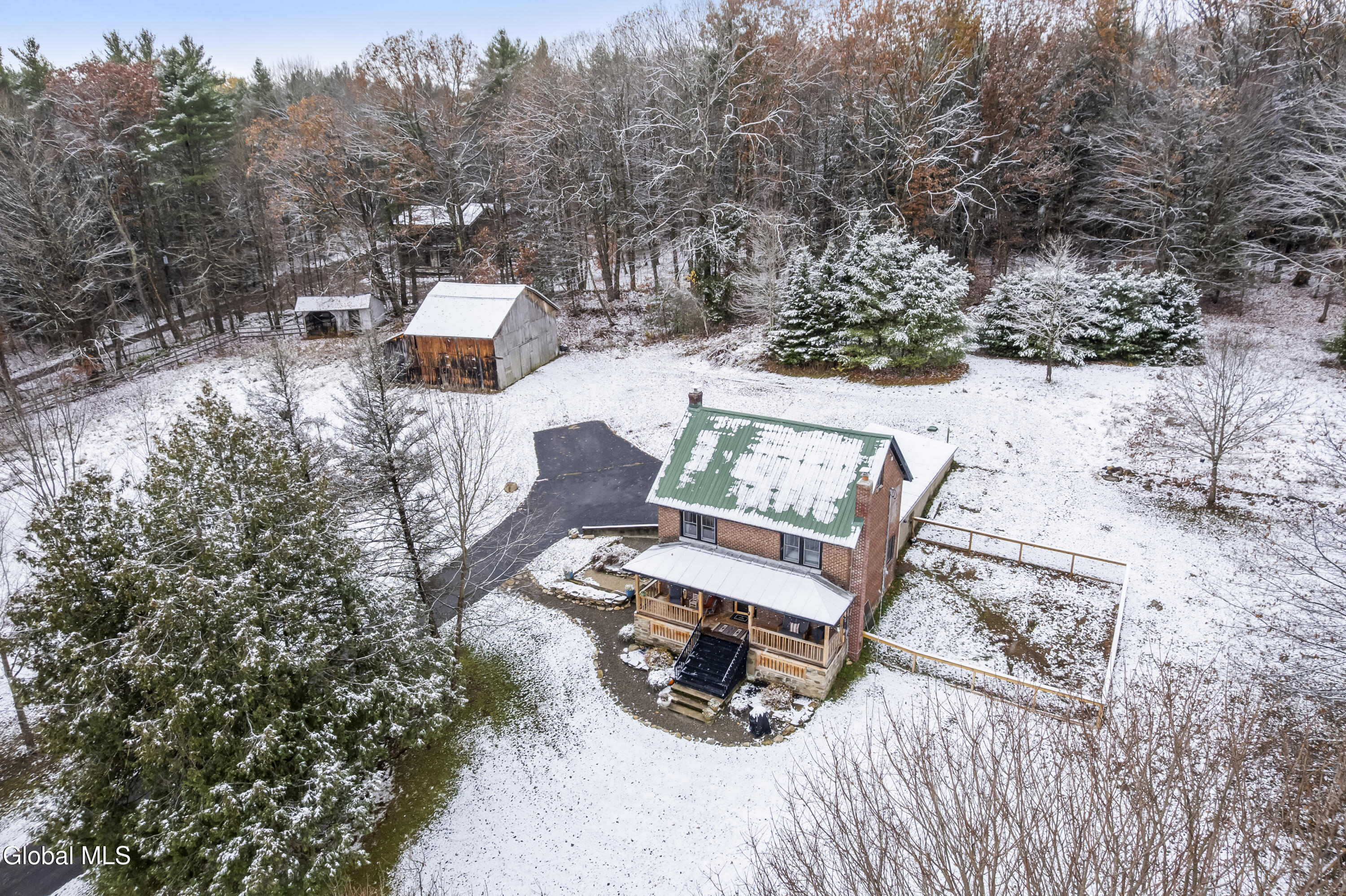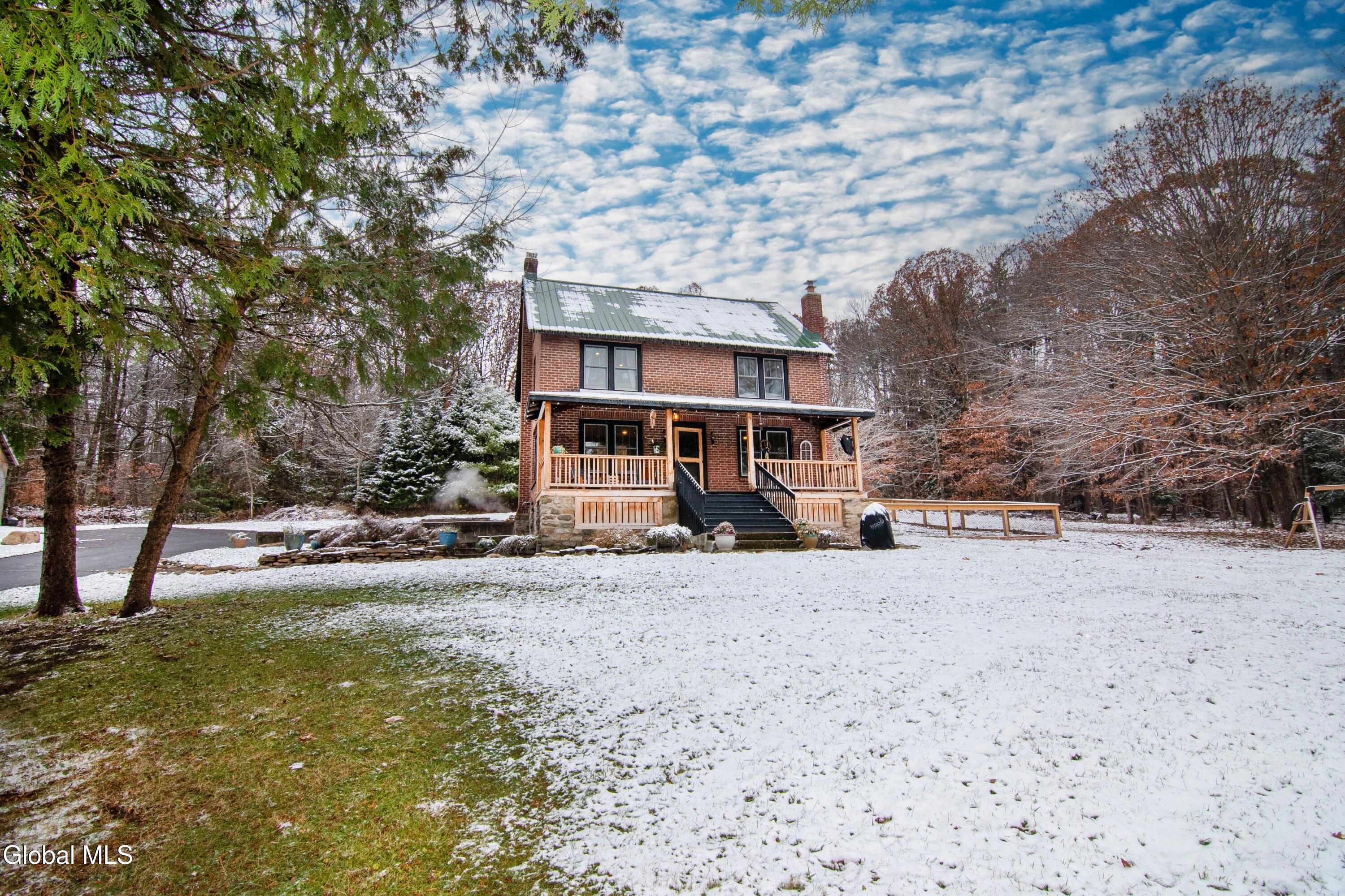 Stately Greenfield Home with Barn on 5 Quiet Acres Near Saratoga. This brick colonial with 6-stall barn sits privately on 5 wooded acres in Greenfield Center just six miles from downtown Saratoga Springs. Built in 1930, this period home offers three levels of living space, loads of character in its original woodwork and doors, modern mechanicals, updated kitchen and bathrooms including a primary suite, finished bonus room, an attached garage and walk-out basement. Whether you're looking to start a hobby farm or just enjoy peace and quiet, this just might be the place. Highlights include: granite countertops, copper sink, black stainless appliance suite, tiled showers, vaulted bathrooms w/ skylights, marble topped vanities, 1st floor laundry, renovated covered front porch, on-demand water heater, 200 amp electric panel, replacement Pella windows, metal roof, Saratoga Schools and more! Contingent on sellers securing home already under contract.