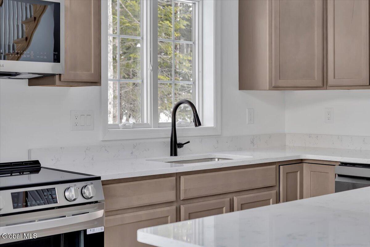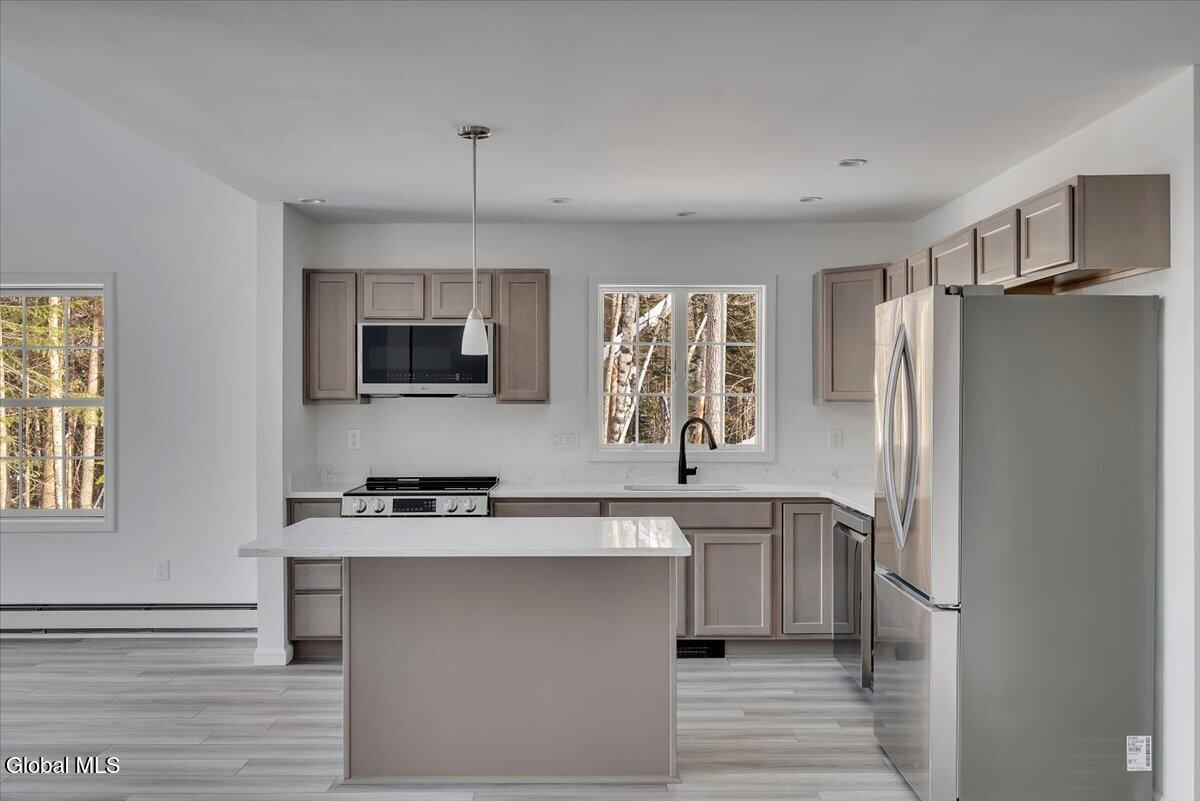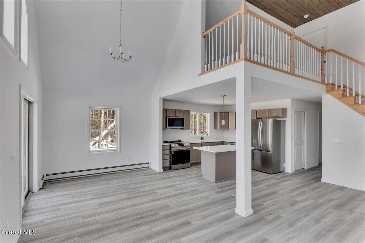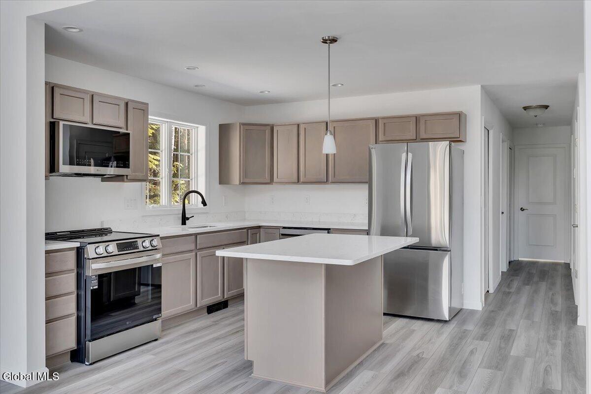 Just 1.5 miles from Gore Mountain—home to 108 trails and 14 lifts—this stunning chalet delivers the perfect blend of mountain adventure and refined comfort. The home offers 3 spacious bedrooms and 3 full baths, soaring vaulted ceilings, and an eat-in kitchen featuring quartz countertops, all-new appliances, and a dedicated dining area, all framed by beautiful views of Gore Mountain. A full walk-out basement w/1000 sq ft and 9-foot ceilings, radiant heated floors, and plumbing already in place for an additional full bath adds incredible potential. Set on 1.2 private acres in a secluded neighborhood, residents enjoy exclusive access to a clubhouse, tennis courts, pickleball court, and an in-ground pool—plus 640± acres of HOA land to explore. And don't miss the gorgeous mountain-view pond, perfect for kayaking, paddleboarding, or canoeing—your own Adirondack lifestyle, right outside the door. We offer several thoughtfully designed floor plans to suit a variety of lifestyles, with 22 lots currently available—giving you the opportunity to choose the perfect homesite and create a mountain retreat that truly fits your vision
