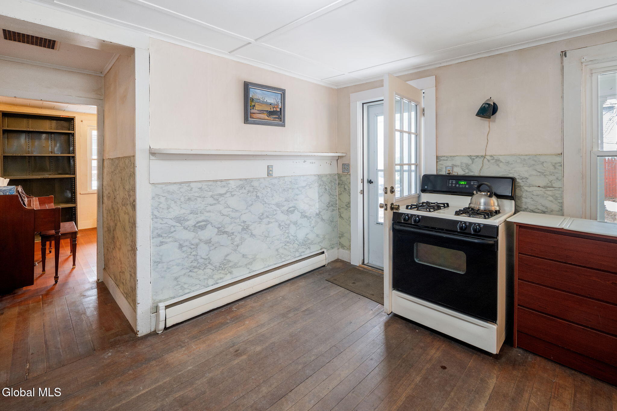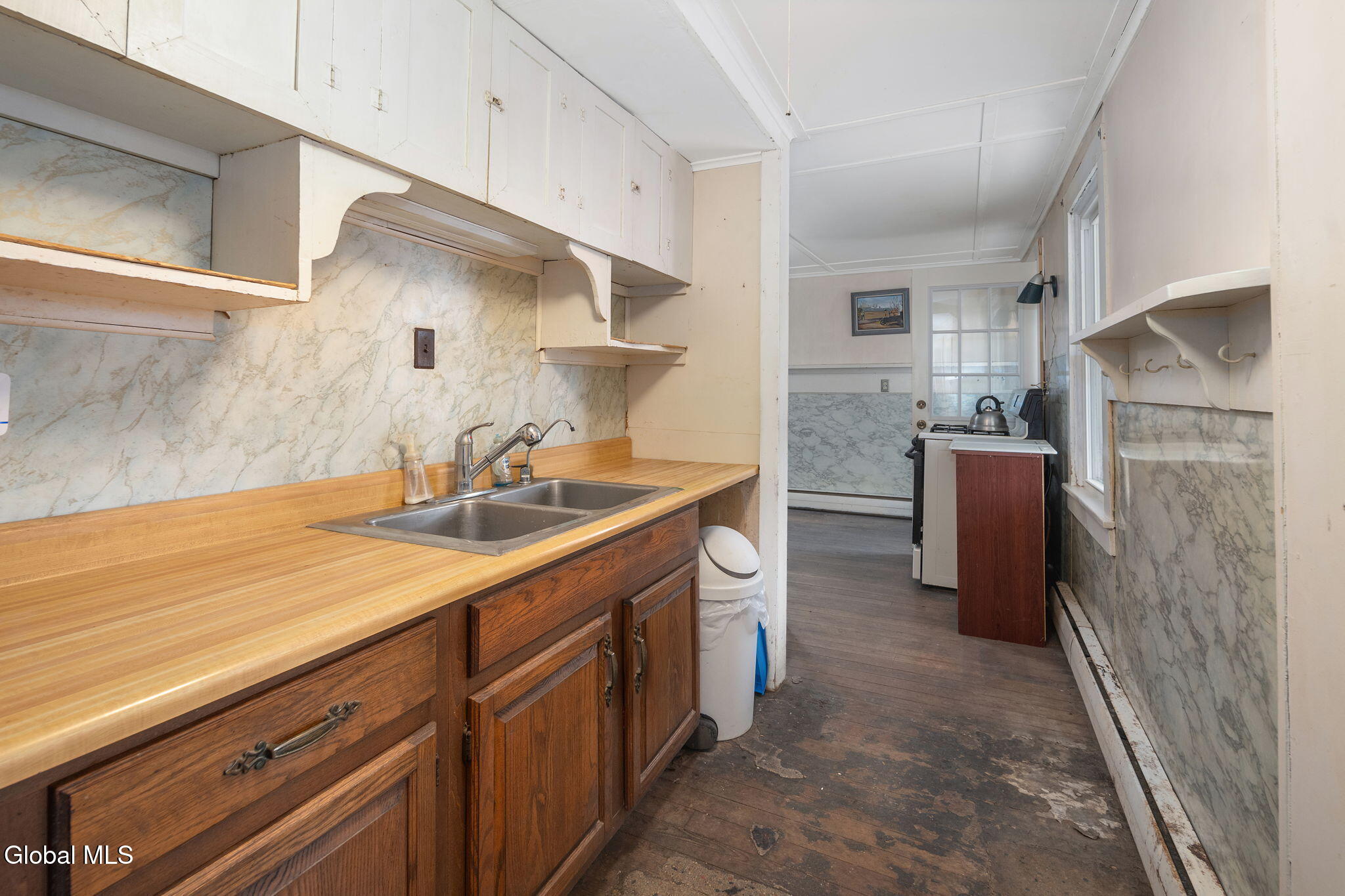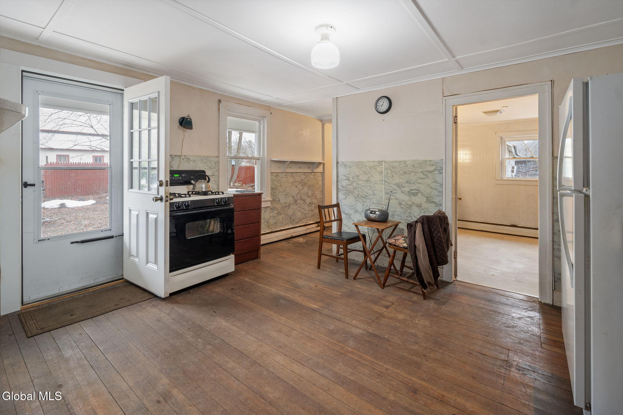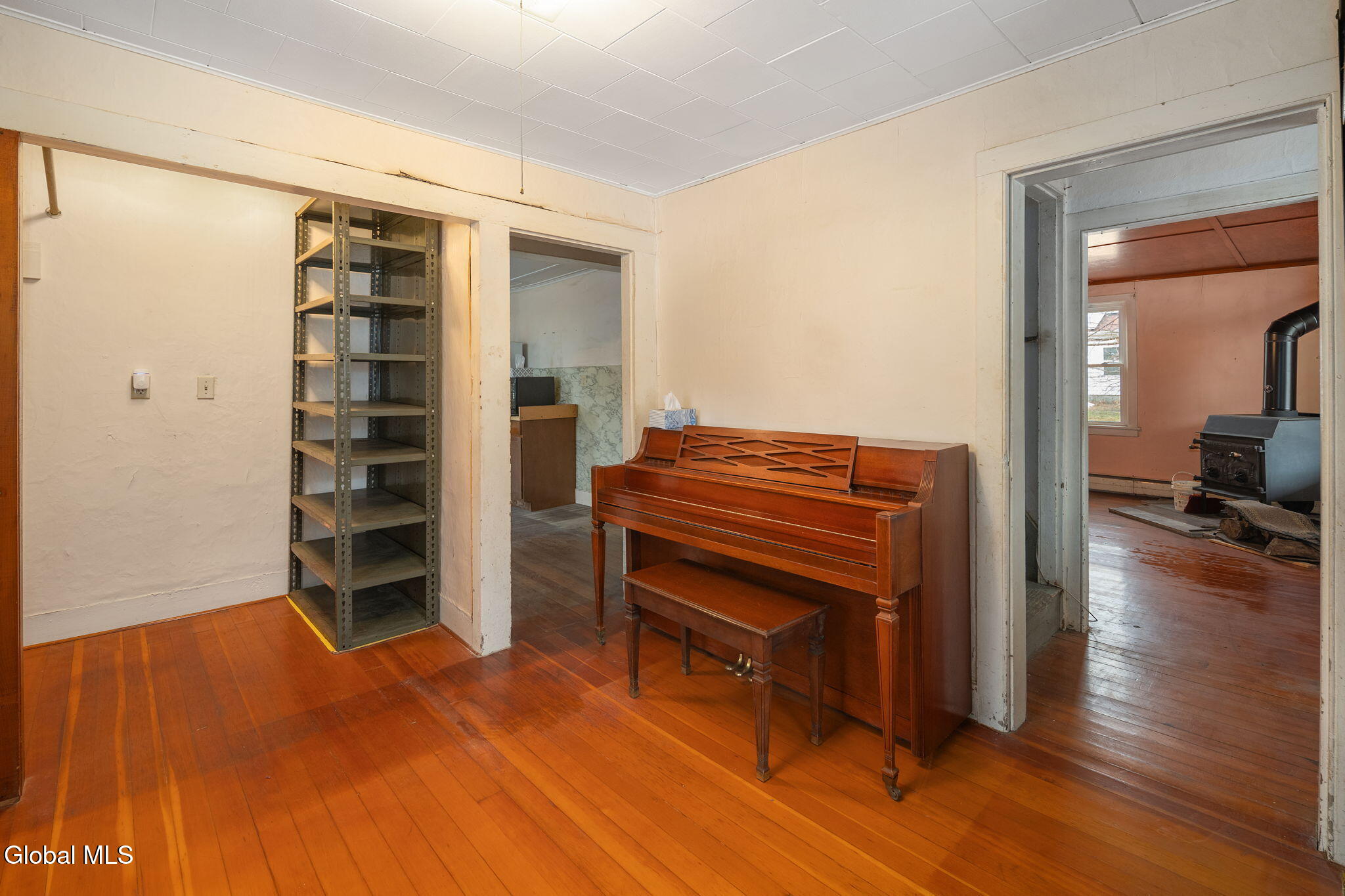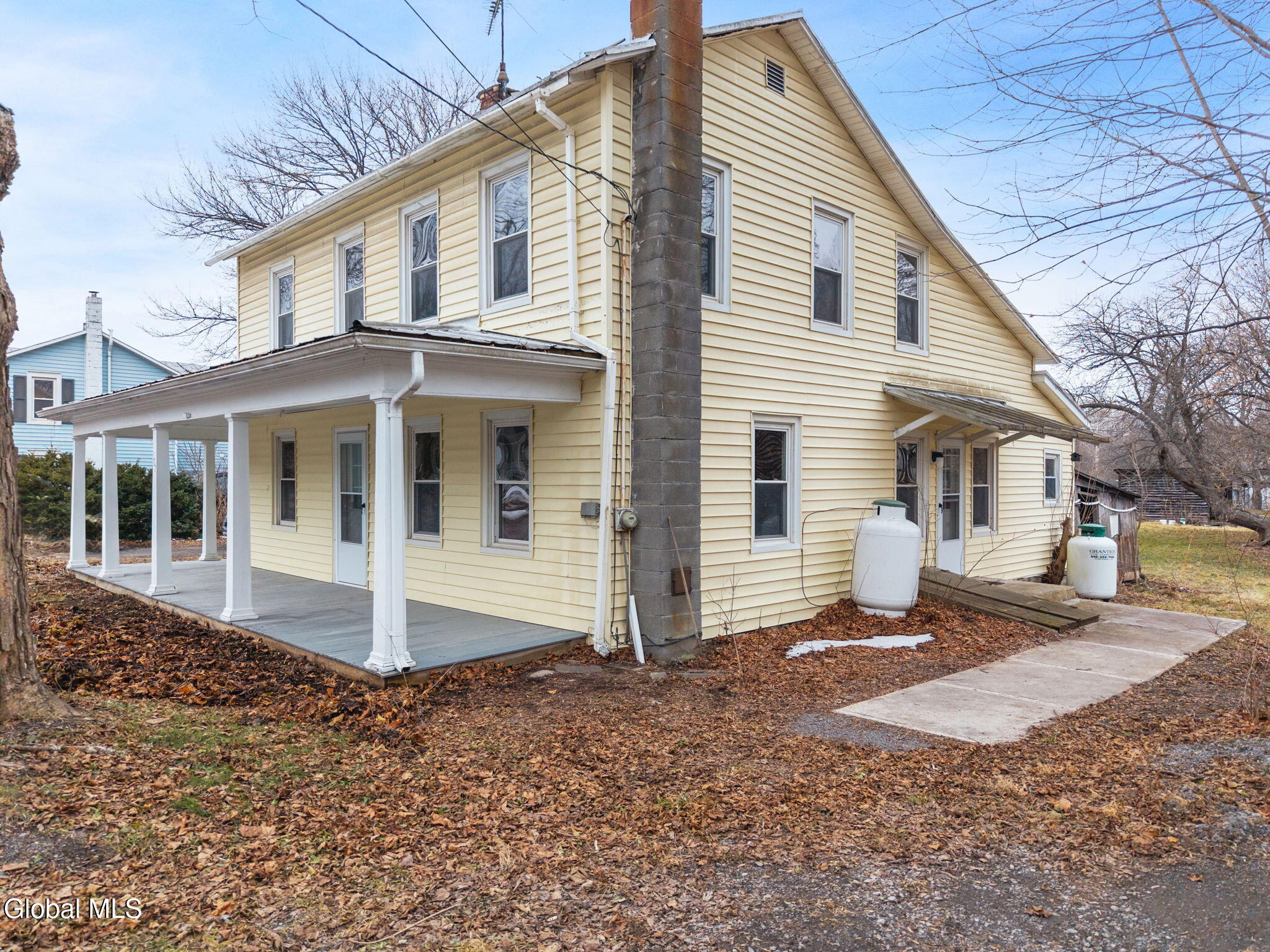 Farmhouse Colonial with Wraparound Porch, Barn & dual road frontage located in quaint area of Gallupville. This charming 2,000 sq ft farmhouse colonial offers space, flexibility, and opportunity on a large, level lot with road frontage on both Factory Street and School Street, located in Schoharie School District. It has welcoming wraparound porch, and is ideal for buyers looking to restore and customize a classic home with multiple use possibilities. The home offers 5 bedrooms and 3 full bathrooms. A standout feature is the first floor primary bedroom with en-suite bath, complete with a kitchenette, separate entrance, and its own driveway, making it ideal for multi generational living, a home office, guest suite, or potential studio setup. Buyers must perform their own due diligence regarding two-family or accessory apartment use, including any required variances. The first floor includes two full bathrooms, a galley kitchen with pantry and eating area, dining room, utility room, and flexible living spaces. The living room features a wood stove and propane heater, providing supplemental heat and charm. Upstairs offers 4 bedrooms and a full bath, metal roof, 4 heating zones, Oil furnace with newer oil tank, Water heater 3 years old, two driveways, barn, wood shed, storage room, and additional outbuildings (in need of repair). Home requires some painting and updates, and the barn and outbuildings will need work, presenting a strong opportunity to build big equity to this versatile property. Sold as-is. Ideal for investors, renovators, or buyers seeking space, character, and flexible use potential. Just 45 minute commute to Capital District.