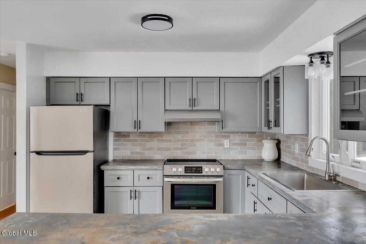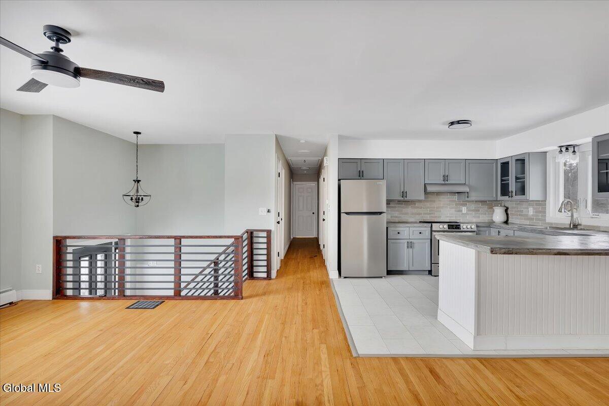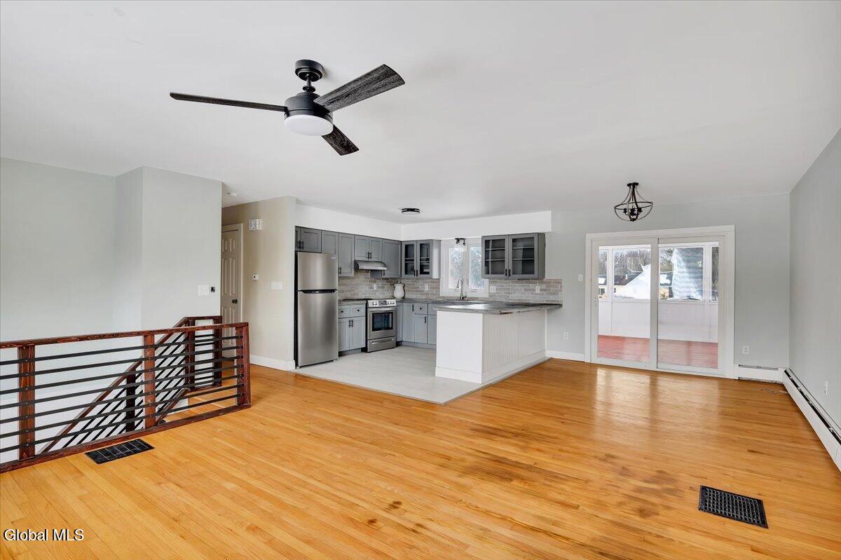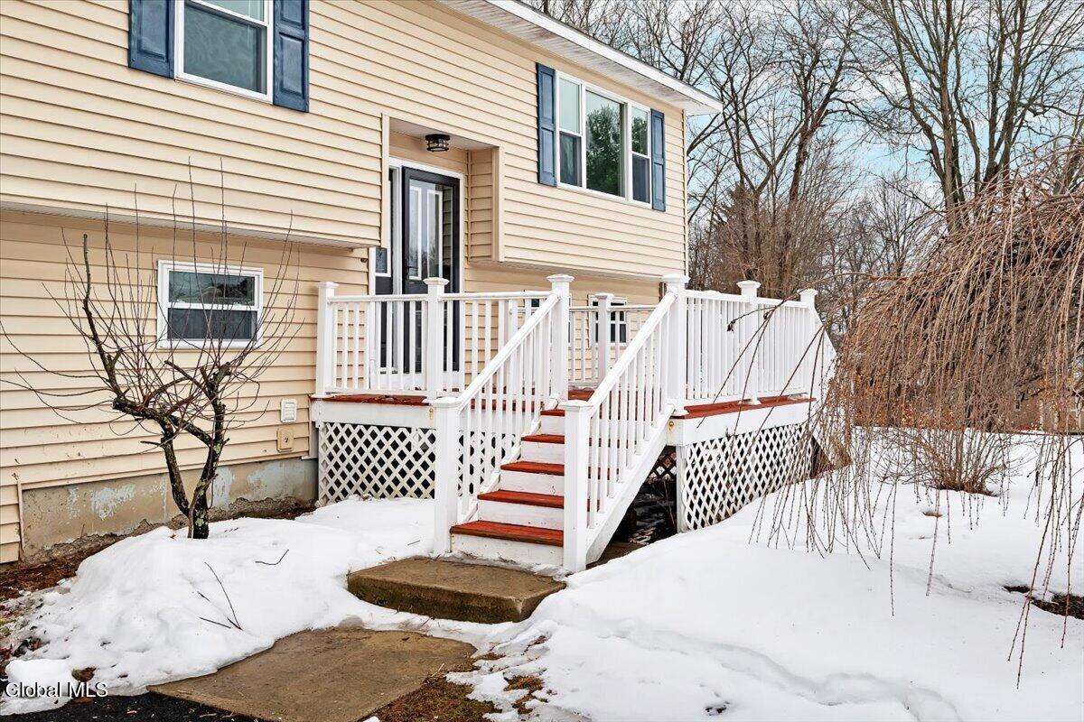 Fully remodeled 4BR/2BA raised ranch set on a private 1-acre lot just 20 minutes from Hudson and Albany. Bright open layout connects the living and dining areas to a beautifully updated kitchen with custom concrete countertops, soft-close cabinetry, stainless steel appliances, and generous storage--ideal for everyday living and entertaining. Four bedrooms and two renovated bathrooms offer comfortable space. New laminate and refinished hardwood flooring throughout. Enjoy a three-season sunroom and spacious sundeck overlooking the yard. The lower level provides flexible space for a guest suite, home office, gym, or family room. Two-car garage and energy-efficient propane heating system installed in 2022.
