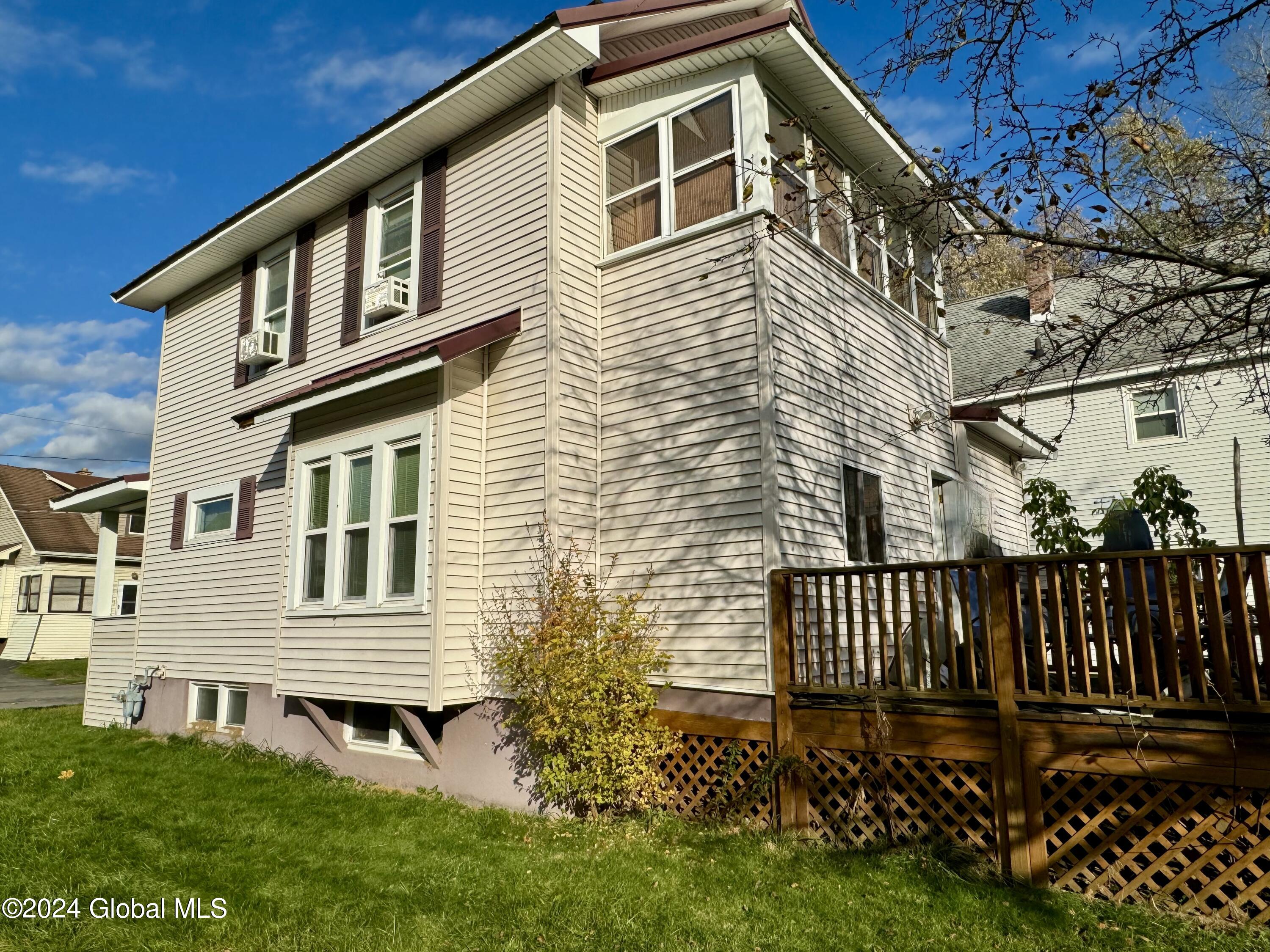 Well maintained 3-bedroom, 1.5-bath home offering comfort, character, and thoughtful updates throughout. The first floor features an oversized living room perfect for relaxing or entertaining, a formal dining room with charming built-ins, and an updated kitchen complete with cherry cabinetry and abundant counter space. Freshly sanded and stained hardwood floors add warmth and style, and a convenient half bath is located just off the kitchen. Upstairs you'll find three generously sized bedrooms, including one with an enclosed porch--ideal for a home office or cozy retreat. A full bath and built-in linen storage complete the second level. Additional highlights include bright replacement windows, hardwood flooring throughout, and the home is in very good condition. Outside, enjoy low-maintenance vinyl siding with shutters, a paved driveway, and a detached two-car garage. Relax on the full-size front porch or host summer gatherings on the spacious rear deck with just the right amount of yard space for outdoor enjoyment. A wonderful place to call home--move right in and enjoy!