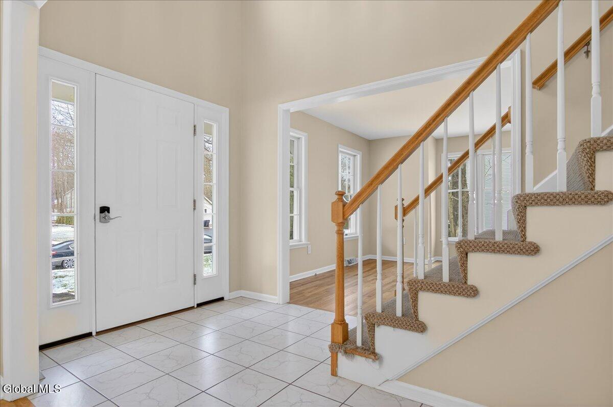 Welcome to 11 Patroon Way in Halfmoon, a well-maintained home offering comfort, efficiency, and outstanding potential. Major updates provide peace of mind, including a brand-new roof (July 2025) with transferable warranty, a tankless water heater, and updated heating and central air with dual zones for the first and second floors. The inviting family room features a cozy gas fireplace, while refinished hardwood floors add warmth and character throughout. The kitchen features a walk-in pantry and recently replaced refrigerator and dishwasher, offering a solid starting point for future cosmetic updates. The primary suite is a true retreat with vaulted ceilings, double closets, and a spacious ensuite bath with a whirlpool tub. Additional highlights include a Ring doorbell, Culligan water softener system, wiring for a security system, and a backyard shed for extra storage. While the kitchen and baths are ready for cosmetic updates, the home's strong structure and thoughtful upgrades provide an excellent foundation to bring your vision to life in a desirable Halfmoon neighborhood.
