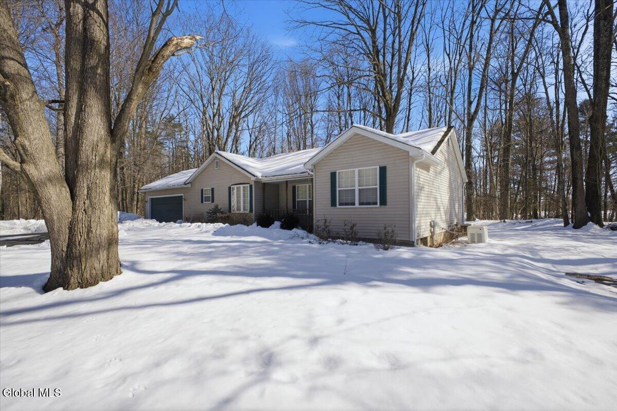 Welcome to this well maintained 3-bedroom, 2-bath Ranch, built in 1992 and nicely positioned in a peaceful development setting nestled between Glens Falls, Schuylerville, and Saratoga Springs/Wilton Mall. Set on .7 acres, the property offers the best of both worlds: a private, country feel with forever-wild land as your backyard backdrop, while still enjoying the warmth and charm of a neighborhood setting ideal for evening ventures and friendly connections. Inside, the open-concept living space creates an easy, comfortable flow for everyday living and entertaining. The spacious primary suite includes its own private bath, and the partially finished basement complete with a cozy propane gas stove provides valuable additional living space perfect for a family room, office, or recreation area. Located within the Schuylerville School District, this home blends convenience, privacy, and community in one inviting package. Also included in in the purchase is a whole house generator just in case the power goes out!!