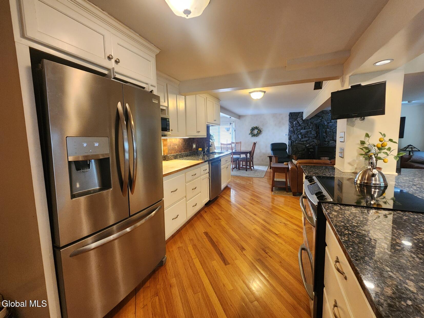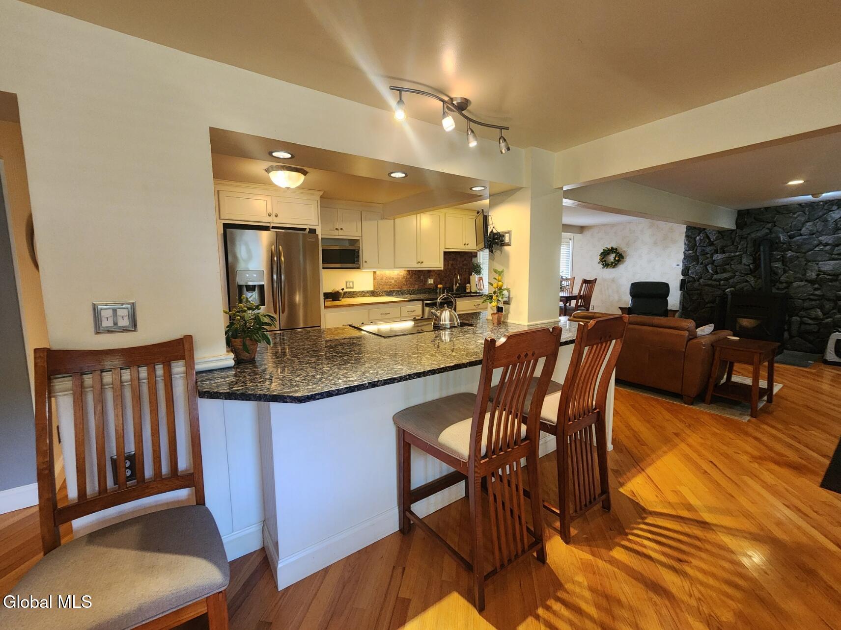 5 bedroom 4 full bath Colonial, completely remodeled with 2 car garage attached. Corner property, frontage on Madison Terrace and Jefferson Ave. This home features an open floor plan, two pellet stoves. Stone fireplace, huge gourmet kitchen. Stainless steel appliances, granite counter tops, granite Island with seating, lots of cabinet space. Dining room walks out to a private deck, great for entertaining. Hardwood floors and ceramic tile floors. Master Bedroom Suite and Master bath. Zoned heating. Private rear deck. Finished basement with second kitchen, indoor grille, wood stove, fireplace. Private entry and patio, a perfect ''man cave'' or in-law suite. Lovely perennial garden, magnificent shade trees. Washer/Dryer. Public water/sewer. CRSD. Easy commute to Capital area.