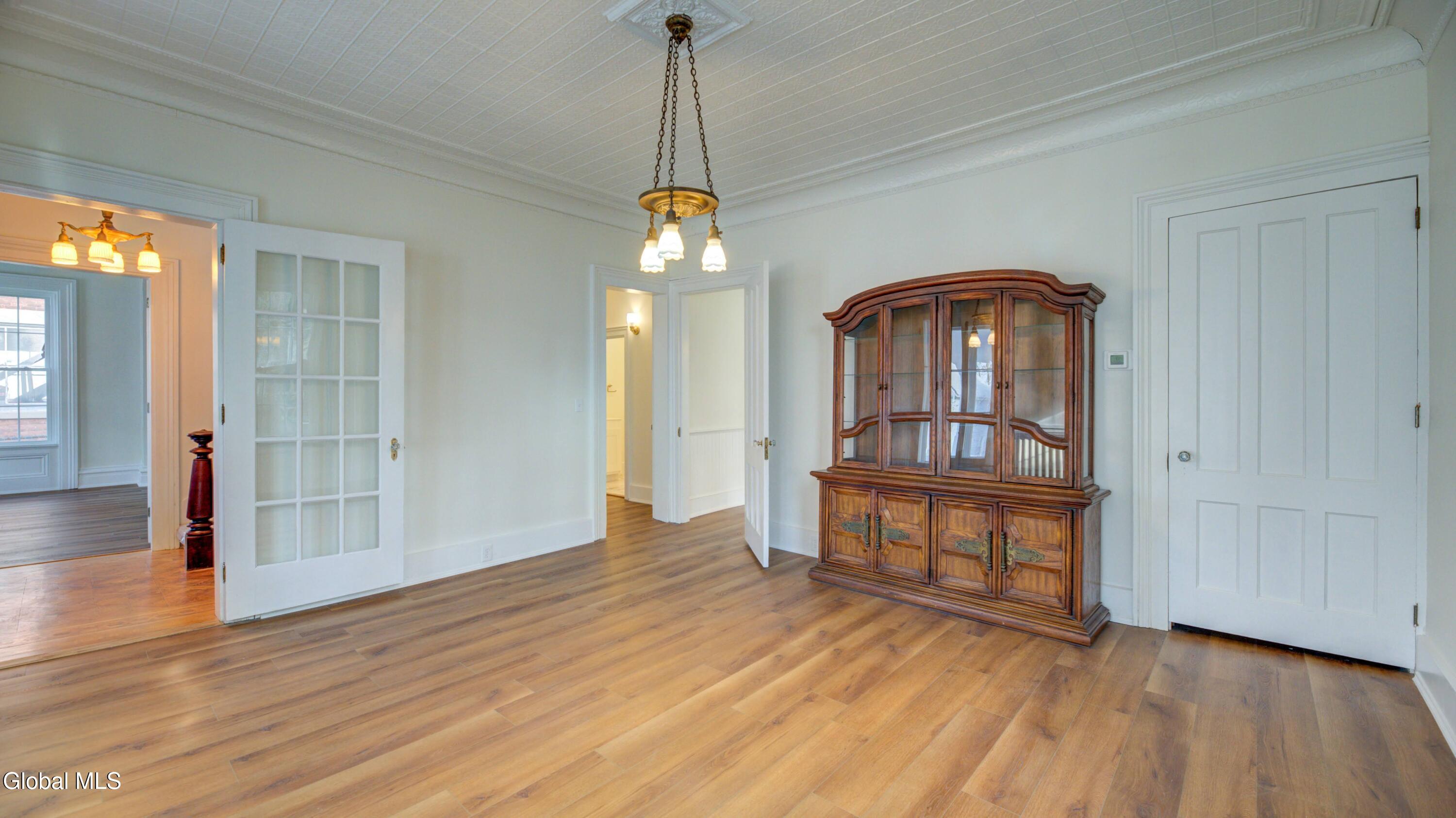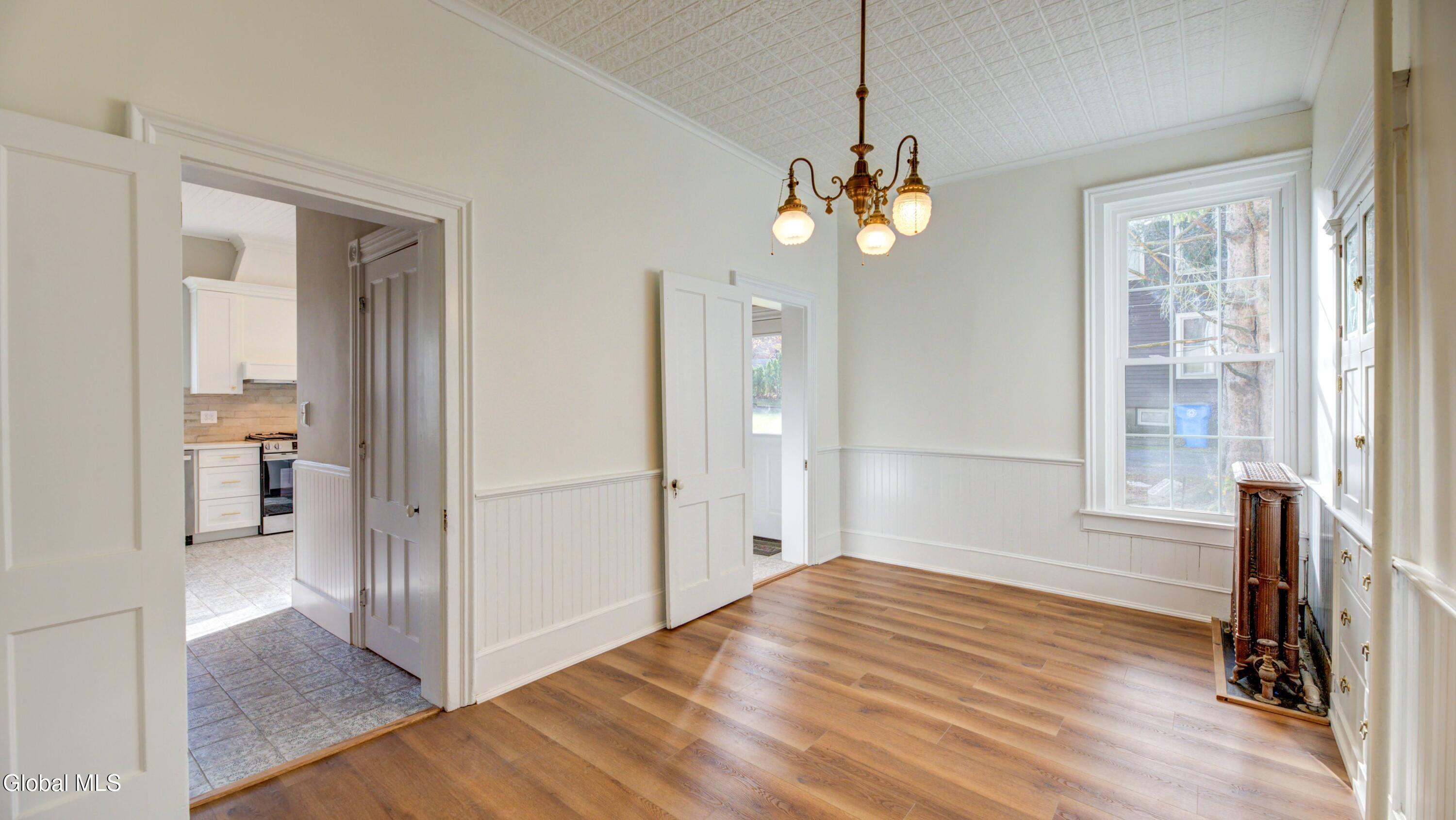 Step into timeless elegance with this beautifully renovated 4-bedroom, 2.5-bath home just one block from downtown Johnstown. With nearly 2,900 square feet of living space, this home perfectly blends historic character and modern comfort-every detail thoughtfully updated while preserving its old-world charm. Inside, the living room features a decorative tin ceiling creating a warm and welcoming space for family and guests. The formal dining room is ideal for gatherings, while the eat-in kitchen shines with new appliances, abundant cabinetry, and natural light. The main floor also includes a family room and half bath with laundry area for everyday convenience. Upstairs, you'll find four spacious bedrooms, including a stunning primary suite with a double-sink vanity and a luxurious ensuite bath. Thoughtful details like rich woodwork and built-in cabinetry highlight this home's enduring craftsmanship, while updates bring it fully into today's lifestyle. Outside, the charm continues with a large covered front porch showcasing intricate old world trim and columns, perfect for relaxing or people-watching. The fenced-in backyard offers plenty of room for play, gardening, or entertaining, and off-street parking adds convenience for daily living. Enjoy the best of both worlds-classic style and modern comfort-just steps from shops, dining, and the heart of historic Johnstown. Fall in love with this timeless treasure-schedule your private tour of 112 S Market Street today!