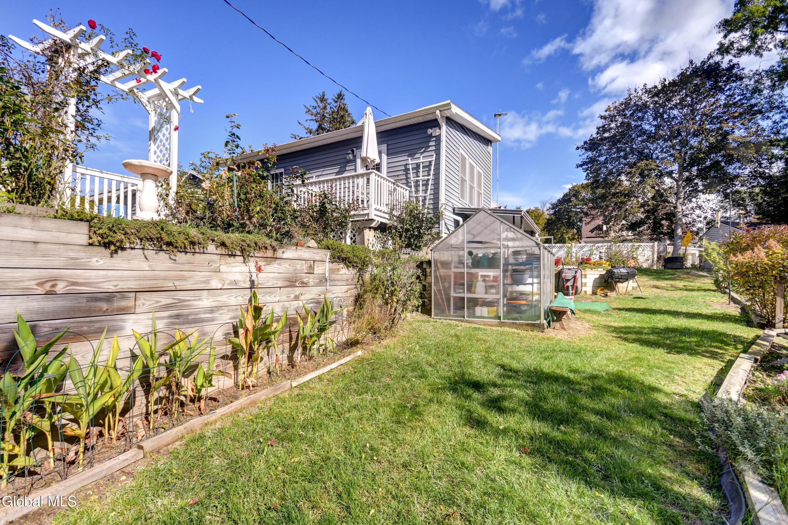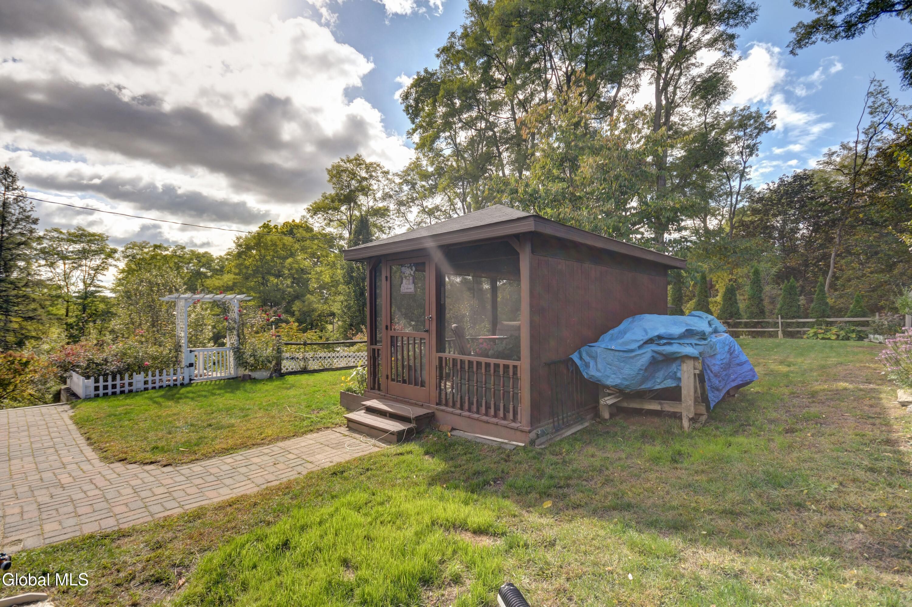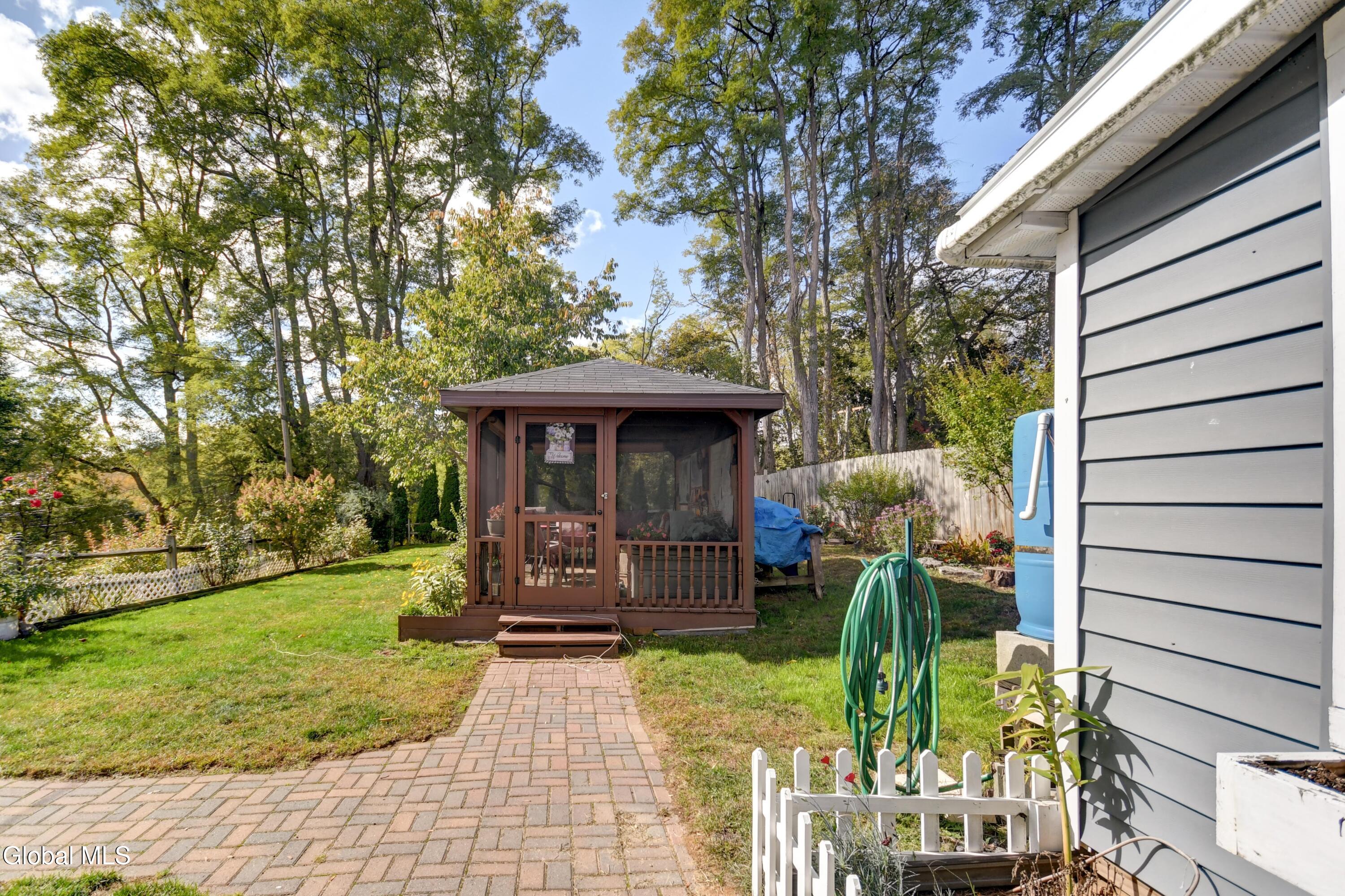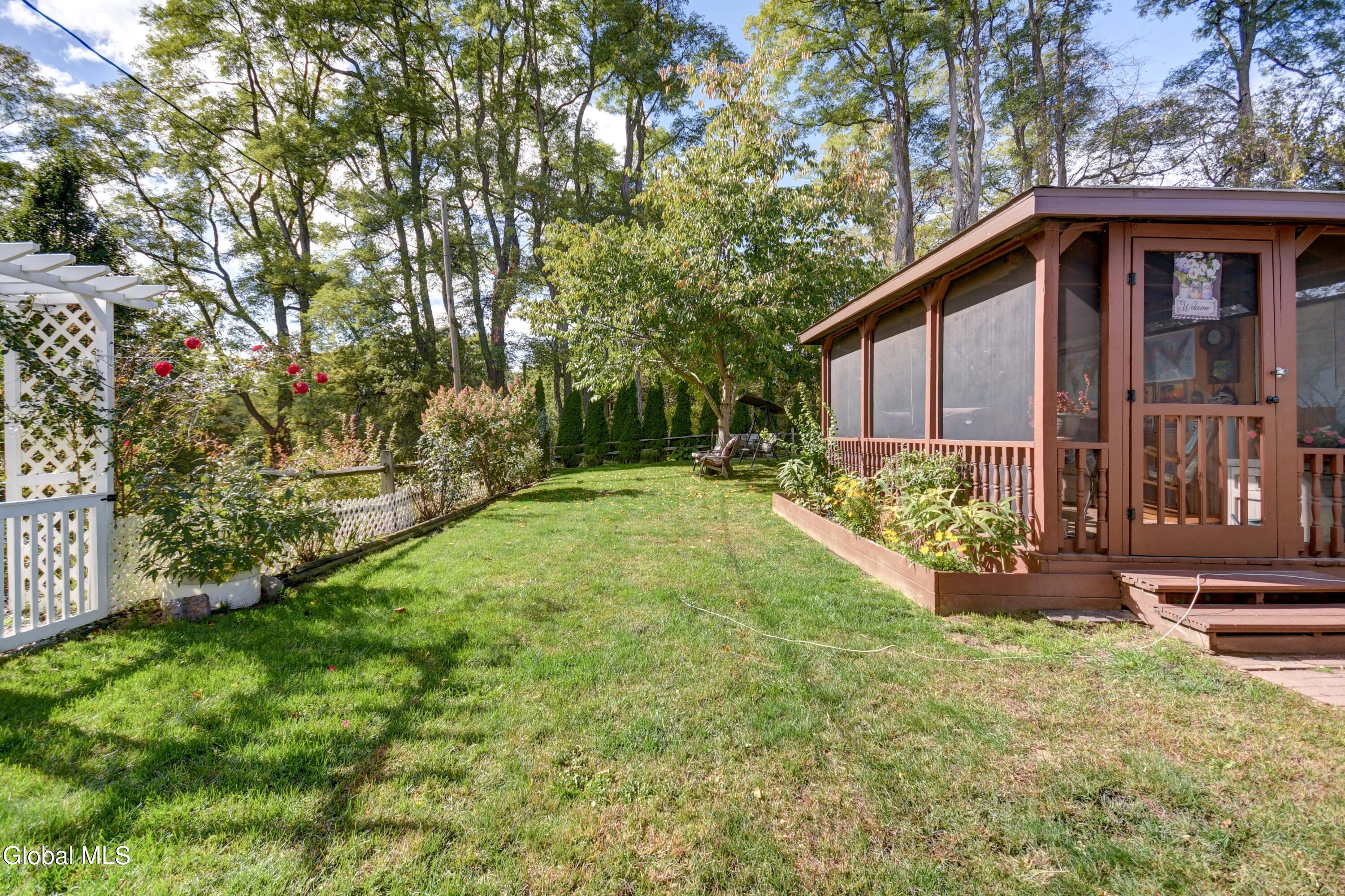 This is an adorable home situated as the last home on a dead end street in the Hamlet of Tribes Hill. Home offers a large living room, galley style kitchen with an open dining area off it, that has a cathedral ceiling and windows allowing a bountiful amount of natural sunlight to shine through. Laundry room closet is off the kitchen (front load washer & dryer are 5 to 6 years old). 1st floor Primary Bedroom Suite and the 2nd bathroom in the home is also on the first floor, at the bottom of the stairs, that lead up to a office, and the 2nd bedroom. There is plenty of closet space in this home and there is a large, dry basement that has both an interior entry and an exterior walkout. Roof is only 2 years old, NEW drilled well and well pressure tank placed by Hawk Well Drillers in August 2025 that produces 6 to 7 gallons per minute (NO sulphur water), septic tank & leach field are only about 12 years old, and owner's just had the septic tank pumped in September 2025 by Green Pines Septic. The Electrical Panel was just updated in August 2025 to a 100 amp breaker panel, and there is a switch & plug now for a Portable Generator. Annual taxes are only $1,939 with NO exemptions. The 0.56+/- of an acre has so many stunning perennials, raspberry bushes, a small greenhouse, a gorgeous and relaxing screened in Gazebo, fire pit and more. There is a storage shed off the back of the garage. Paved Driveway. Side deck to overlook the side & back yard. This is a beautiful home, in an excellent location and in wonderful condition ~ and looks are deceiving because this home does offer over 1600 sq. ft. of living space and a much bigger yard that anyone could expect by just looking from the outside. Do not miss out on seeing this quickly ~ it surely will not last long! Pre-approved buyers to view only.