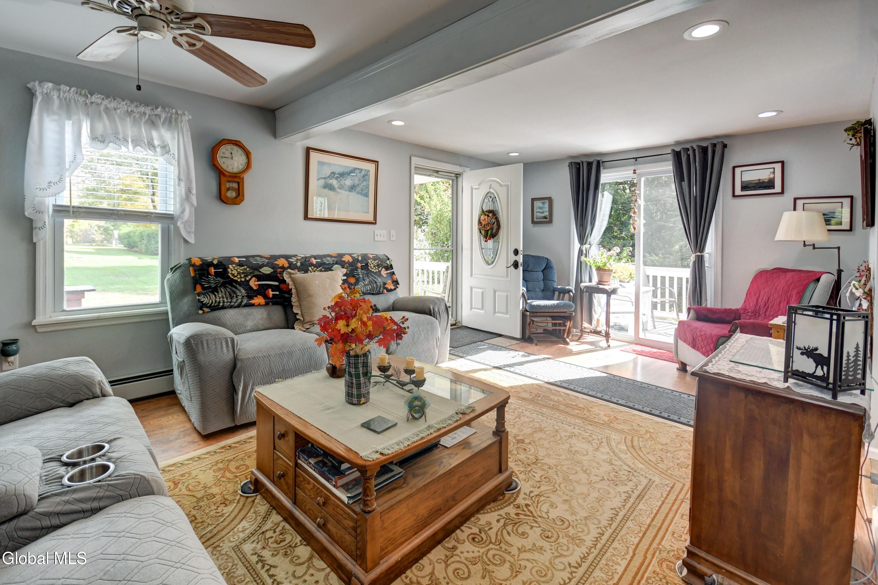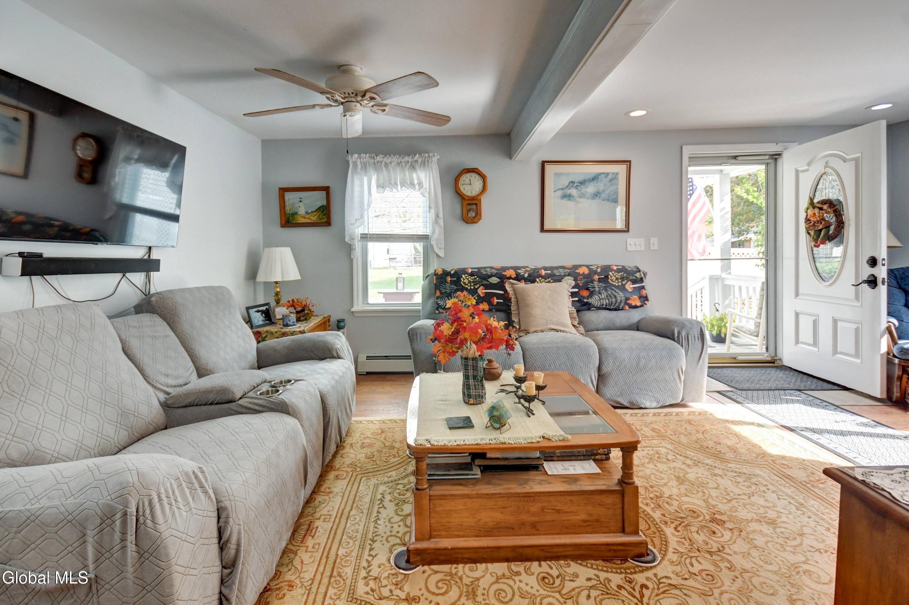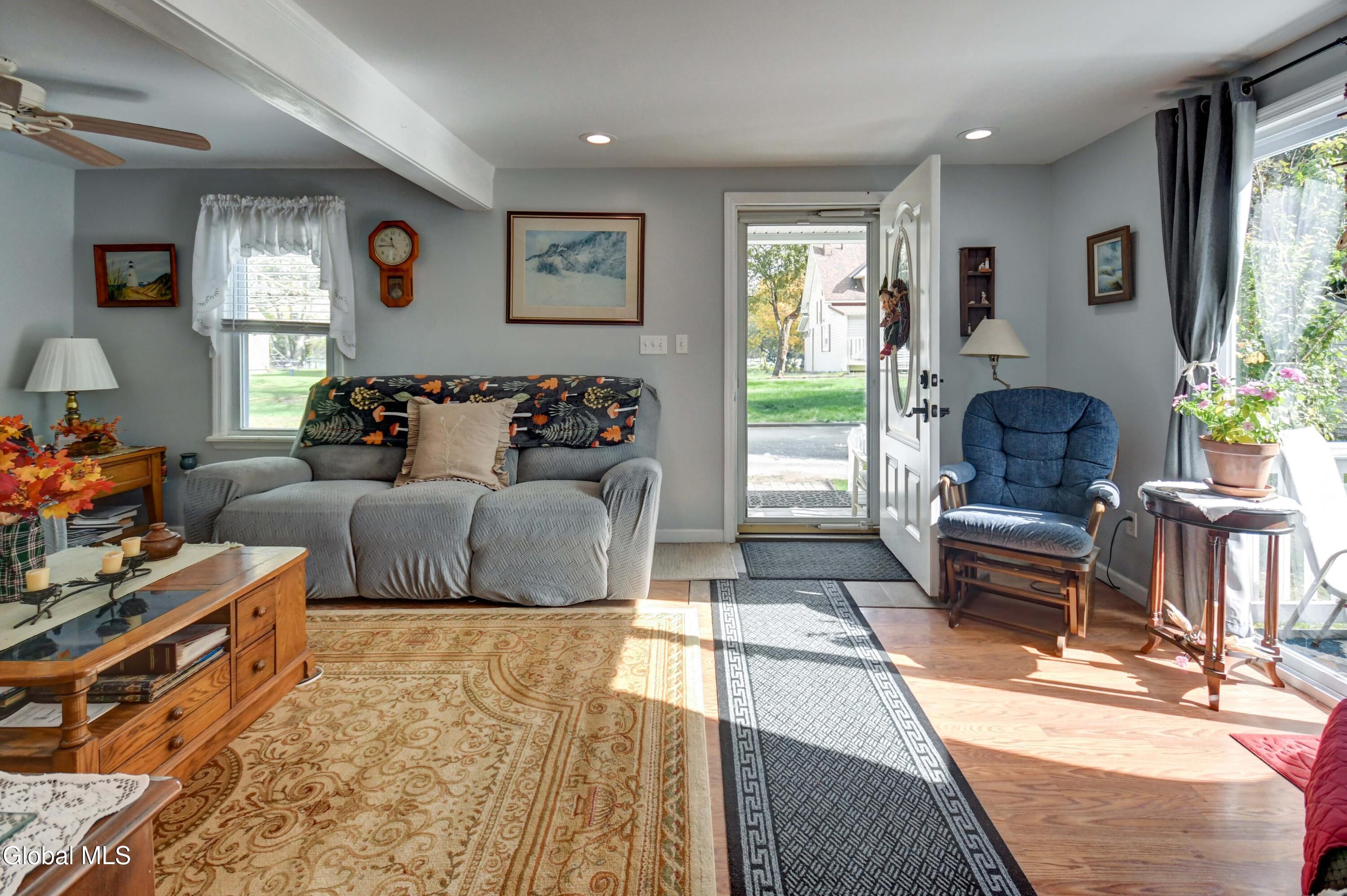 This is an adorable home situated as the last home on a dead end street in the Hamlet of Tribes Hill. Home offers a large living room, galley style kitchen with an open dining area off it, that has a cathedral ceiling and windows allowing a bountiful amount of natural sunlight to shine through. Laundry room closet is off the kitchen (front load washer & dryer are 5 to 6 years old). 1st floor Primary Bedroom Suite and the 2nd bathroom in the home is also on the first floor, at the bottom of the stairs, that lead up to a office, and the 2nd bedroom. There is plenty of closet space in this home and there is a large, dry basement that has both an interior entry and an exterior walkout. Roof is only 2 years old, NEW drilled well and well pressure tank placed by Hawk Well Drillers in August 2025 that produces 6 to 7 gallons per minute (NO sulphur water), septic tank & leach field are only about 12 years old, and owner's just had the septic tank pumped in September 2025 by Green Pines Septic. The Electrical Panel was just updated in August 2025 to a 100 amp breaker panel, and there is a switch & plug now for a Portable Generator. Annual taxes are only $1,939 with NO exemptions. The 0.56+/- of an acre has so many stunning perennials, raspberry bushes, a small greenhouse, a gorgeous and relaxing screened in Gazebo, fire pit and more. There is a storage shed off the back of the garage. Paved Driveway. Side deck to overlook the side & back yard. This is a beautiful home, in an excellent location and in wonderful condition ~ and looks are deceiving because this home does offer over 1600 sq. ft. of living space and a much bigger yard that anyone could expect by just looking from the outside. Do not miss out on seeing this quickly ~ it surely will not last long! Pre-approved buyers to view only.