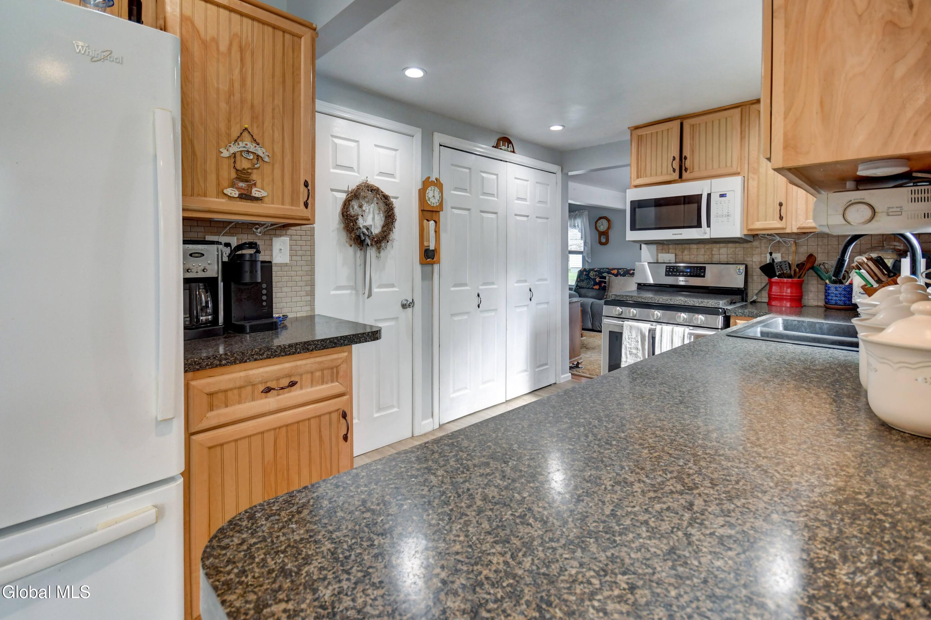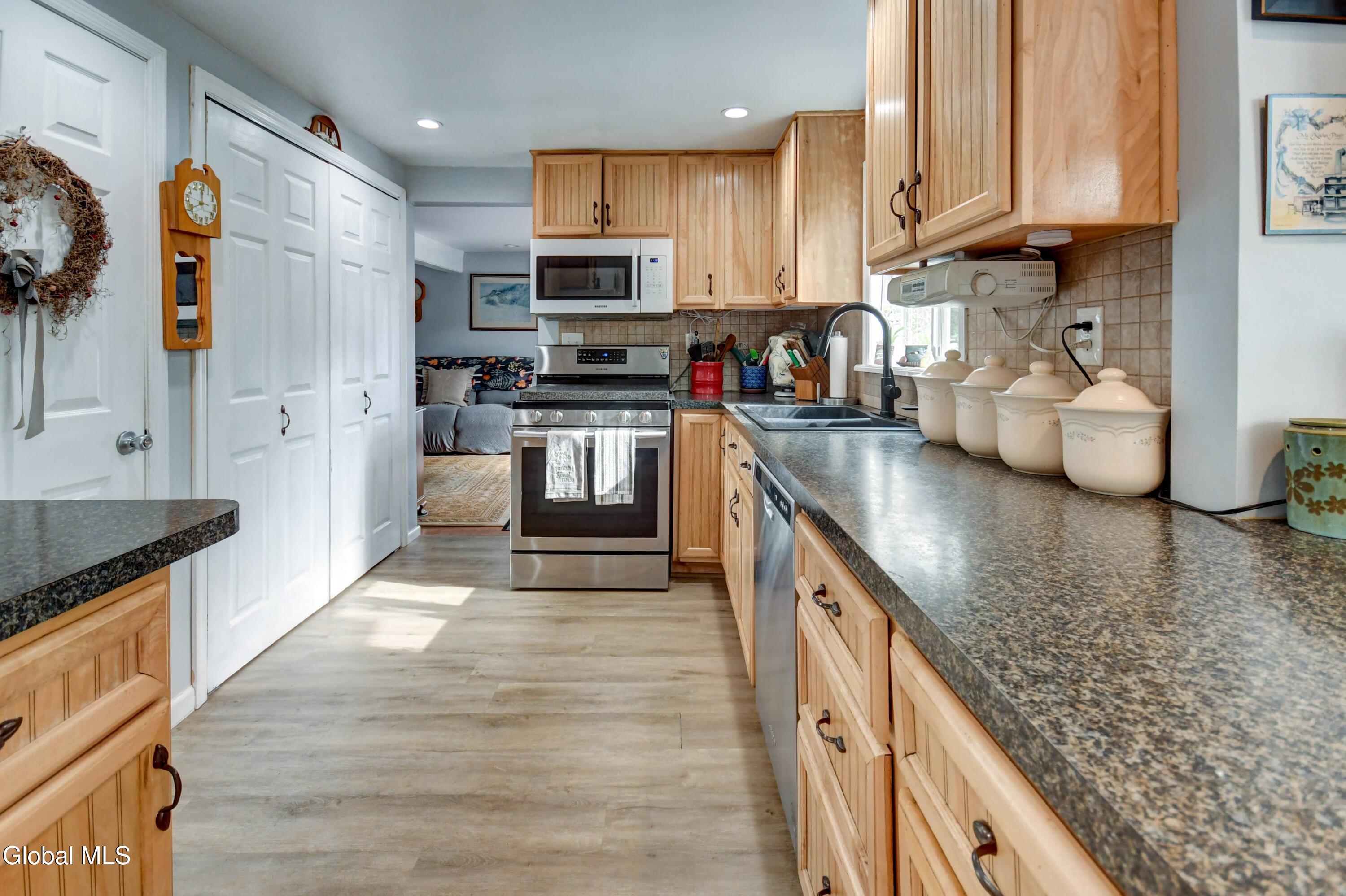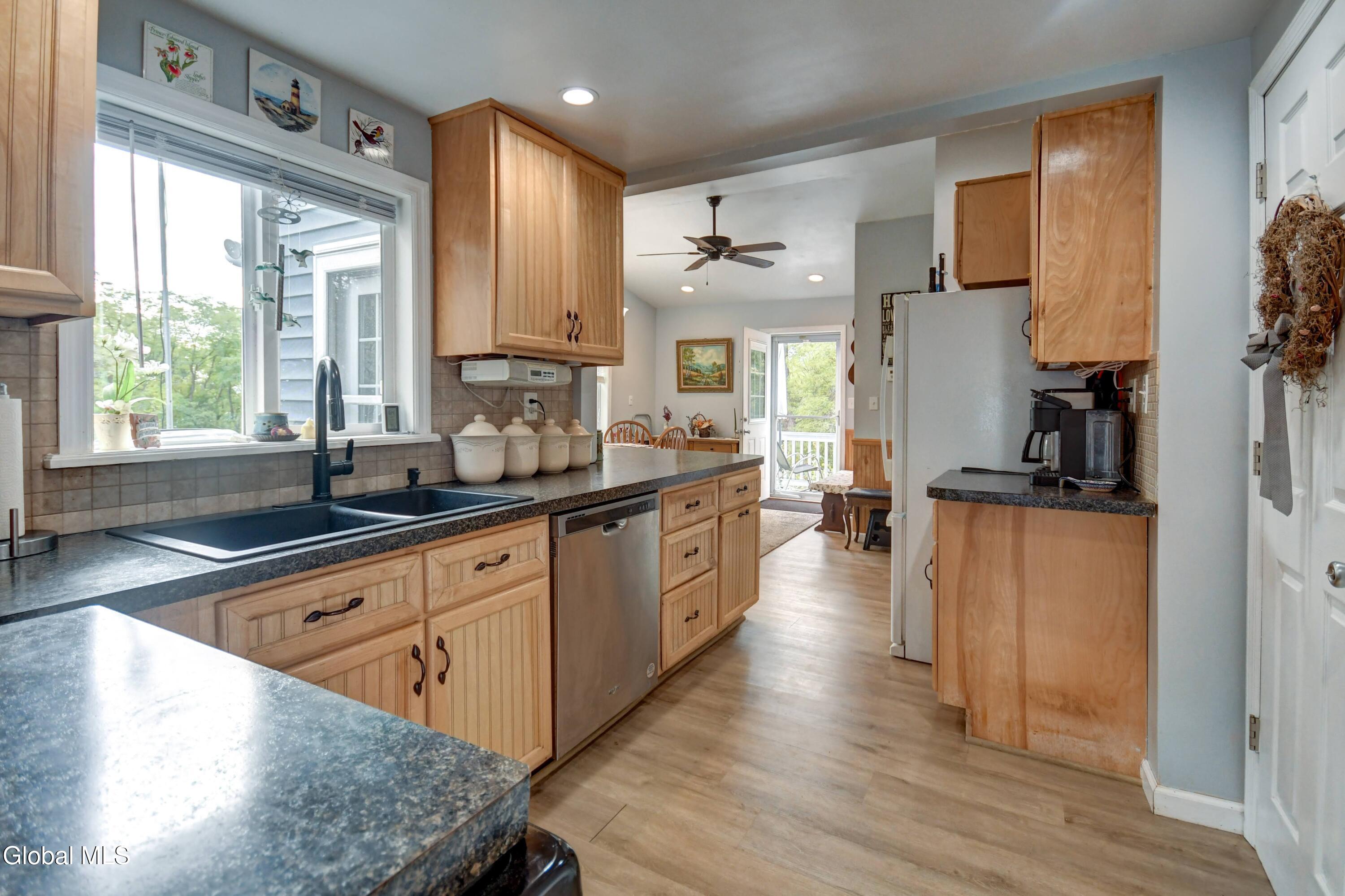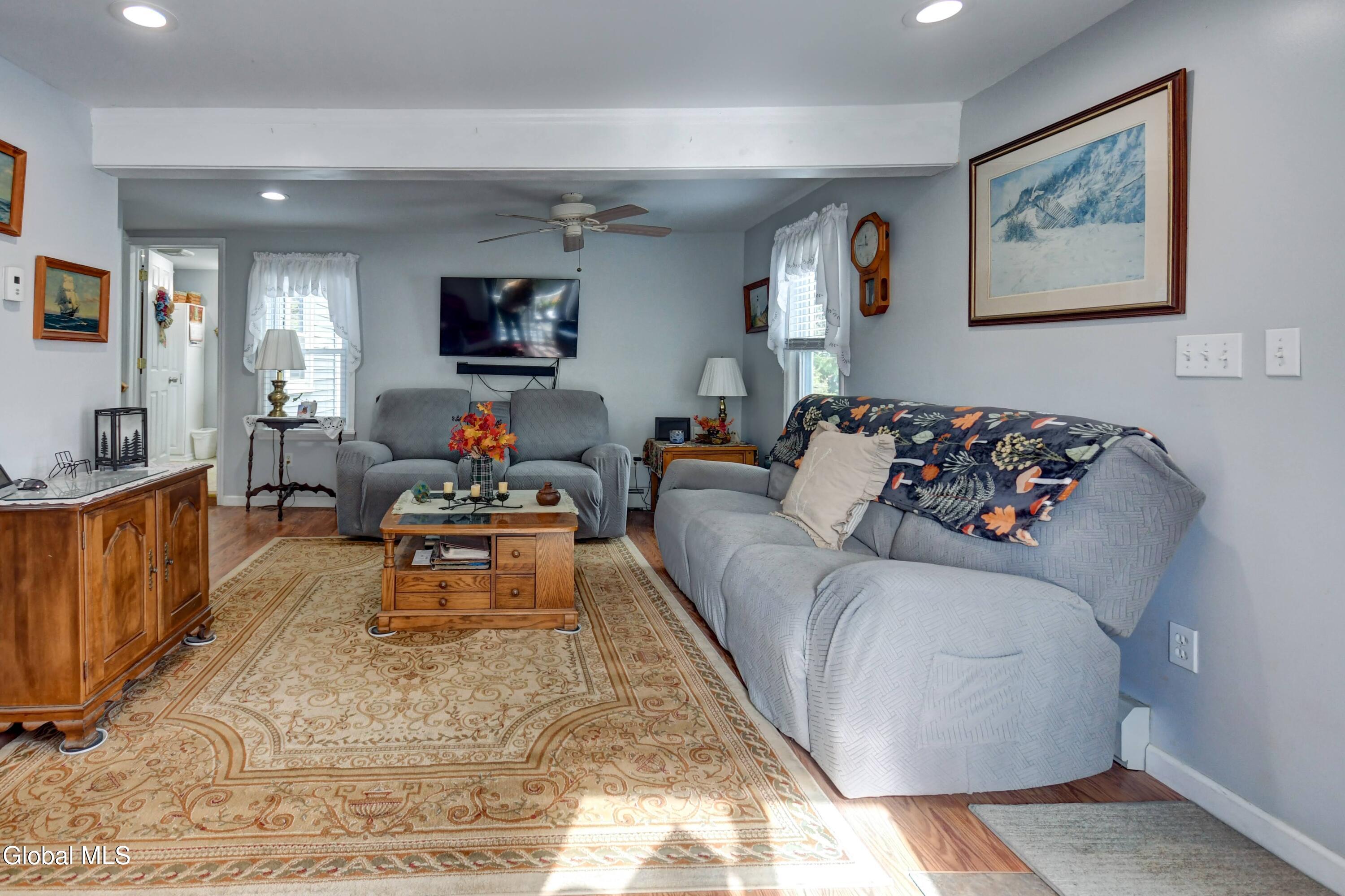 This is an adorable home situated as the last home on a dead end street in the Hamlet of Tribes Hill. Home offers a large living room, galley style kitchen with an open dining area off it, that has a cathedral ceiling and windows allowing a bountiful amount of natural sunlight to shine through. Laundry room closet is off the kitchen (front load washer & dryer are 5 to 6 years old). 1st floor Primary Bedroom Suite and the 2nd bathroom in the home is also on the first floor, at the bottom of the stairs, that lead up to a office, and the 2nd bedroom. There is plenty of closet space in this home and there is a large, dry basement that has both an interior entry and an exterior walkout. Roof is only 2 years old, NEW drilled well and well pressure tank placed by Hawk Well Drillers in August 2025 that produces 6 to 7 gallons per minute (NO sulphur water), septic tank & leach field are only about 12 years old, and owner's just had the septic tank pumped in September 2025 by Green Pines Septic. The Electrical Panel was just updated in August 2025 to a 100 amp breaker panel, and there is a switch & plug now for a Portable Generator. Annual taxes are only $1,939 with NO exemptions. The 0.56+/- of an acre has so many stunning perennials, raspberry bushes, a small greenhouse, a gorgeous and relaxing screened in Gazebo, fire pit and more. There is a storage shed off the back of the garage. Paved Driveway. Side deck to overlook the side & back yard. This is a beautiful home, in an excellent location and in wonderful condition ~ and looks are deceiving because this home does offer over 1600 sq. ft. of living space and a much bigger yard that anyone could expect by just looking from the outside. Do not miss out on seeing this quickly ~ it surely will not last long! Pre-approved buyers to view only.