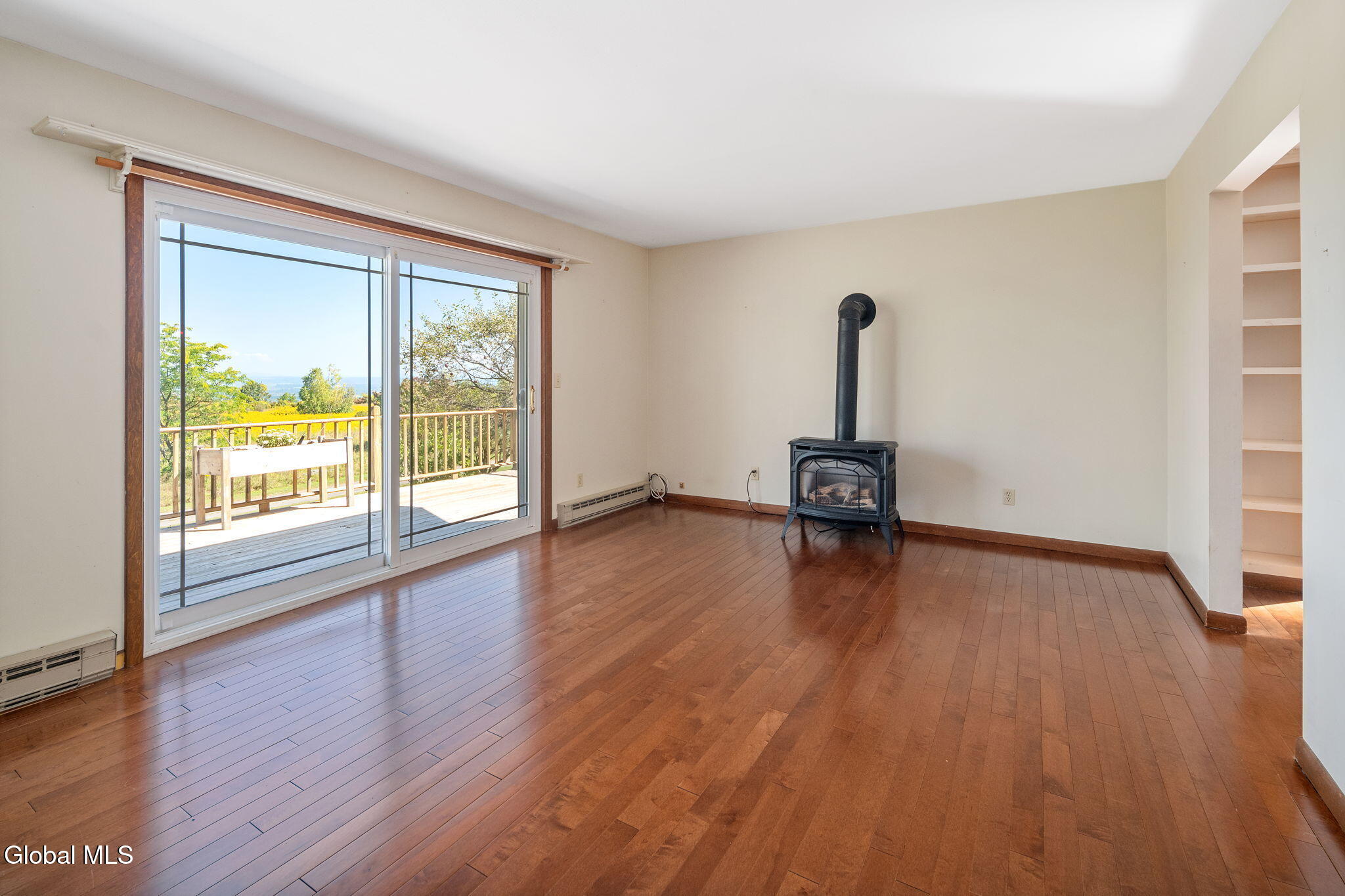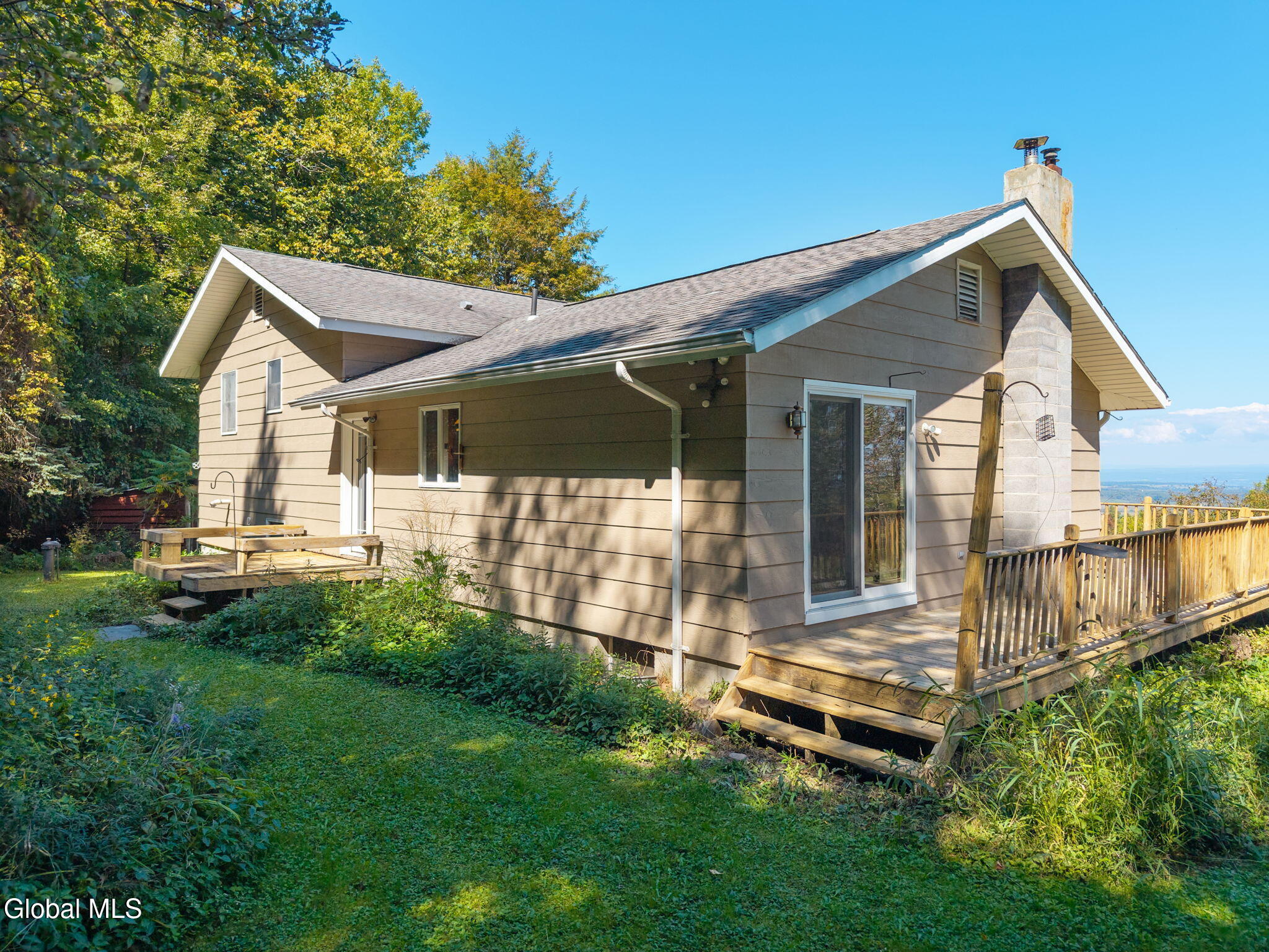 Discover peace and privacy in this charming split ranch set on 26 scenic acres, offering an open floor plan and breathtaking views stretching over 60 miles of meadows, mature woodlands, and the Adirondacks. The living area is bright and spacious with large windows and a cozy pellet stove opens seamlessly to the country kitchen, featuring solid wood cabinets and ample space for family meals. The basement is perfect for hobbies, entertaining, or relaxing with family, complete with a wood stove for added warmth. Multiple decks create the perfect setting for both entertaining and quiet retreat- a main deck overlooking the yard for gatherings and a private deck off the bedrooms for peaceful morning coffee or starlit evenings. Wander or ride along trails through hardwood forests and open meadows, right on your property. A pole barn provides abundant space for tools, equipment, and outdoor gear. This property offers the perfect blend of tranquil country living and outdoor adventure-whether you're a nature lover, hobbyist, or simply seeking a private retreat with room to roam. Don't miss this rare opportunity to own a slice of the Adirondacks foothills-schedule your showing today!