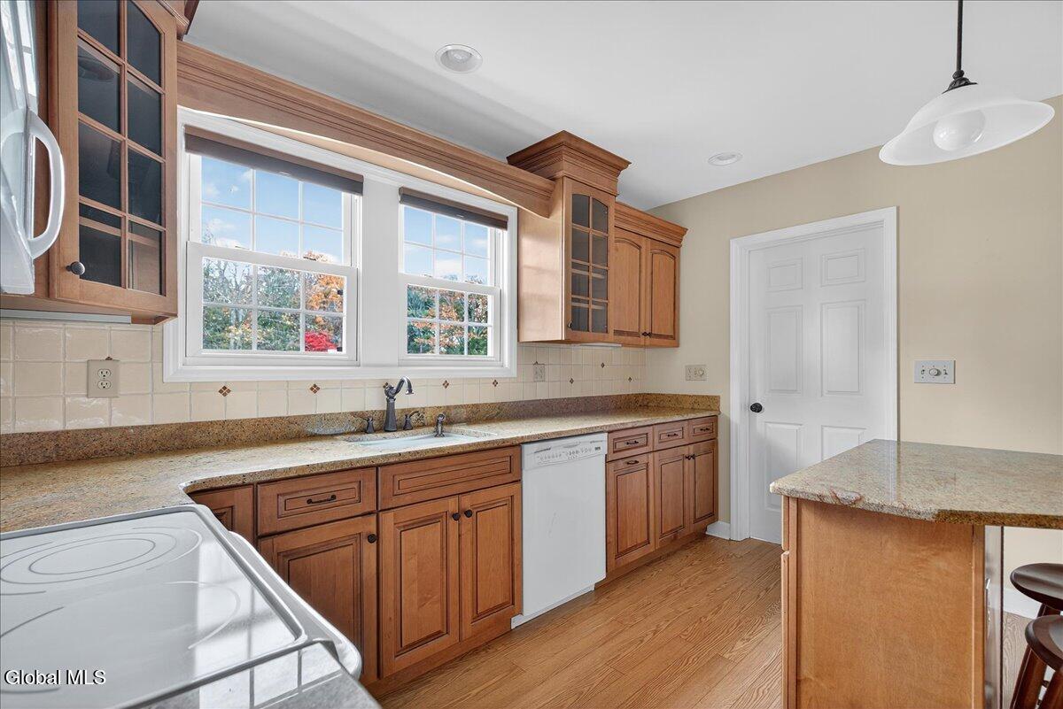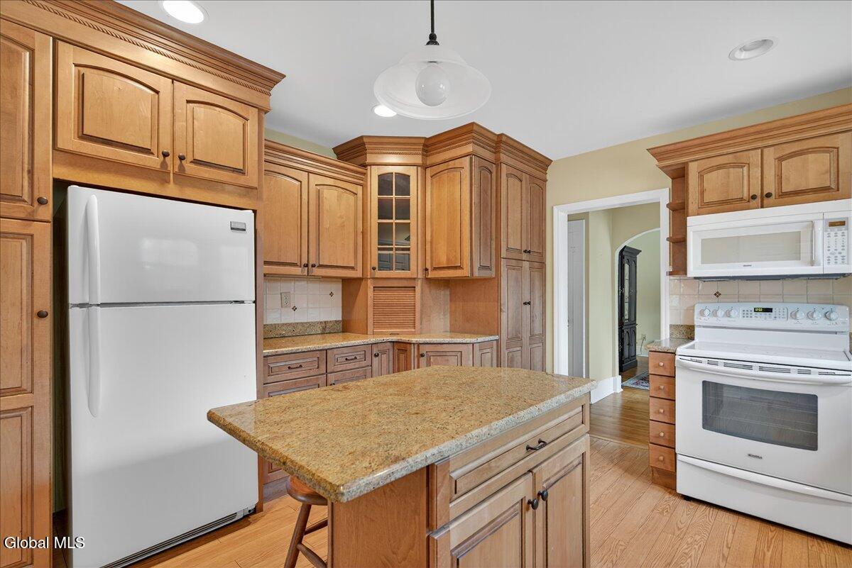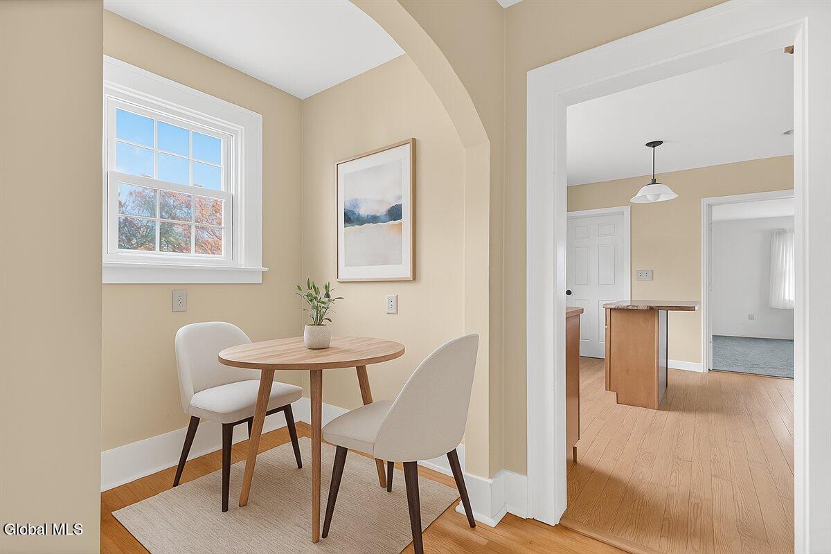 Open House Sunday, November 23rd from 12-2. Welcome to this quaint and inviting 3-bedroom, 1-bath, 1,560 sq. ft comfortable. cottage-style ranch home nestled in a sought-after neighborhood of Niskayuna. A spacious, welcoming screened porch greets guests and sets the tone for this charming residence. Step inside to a large, light-filled living room featuring classic built-ins that frame a handsome wood-burning fireplace. An arched opening leads to the formal dining room with a large picture window—perfect for gatherings and holiday meals. The thoughtfully designed kitchen offers warm-toned wood cabinetry, granite countertops, and a convenient island that will delight any home chef. A cozy nook nearby makes an ideal workstation or reading spot. Two bedrooms feature hardwood floors beneath carpeting. The full bath showcases large ceramic tile. The generous primary bedroom offers ample space to add an ensuite bath, creating your own private retreat. Enjoy easy one-level living in this lovingly maintained home. The current owners have cared for and periodically updated this rare gem for over 50 years. Professionally designed landscaping by Faddegon's enhances the beauty of the corner lot. Located within the award-winning Niskayuna School District, this charming home combines comfort, character, and convenience—an exceptional opportunity in a highly desirable neighborhood. Garage sold ''as is''.
