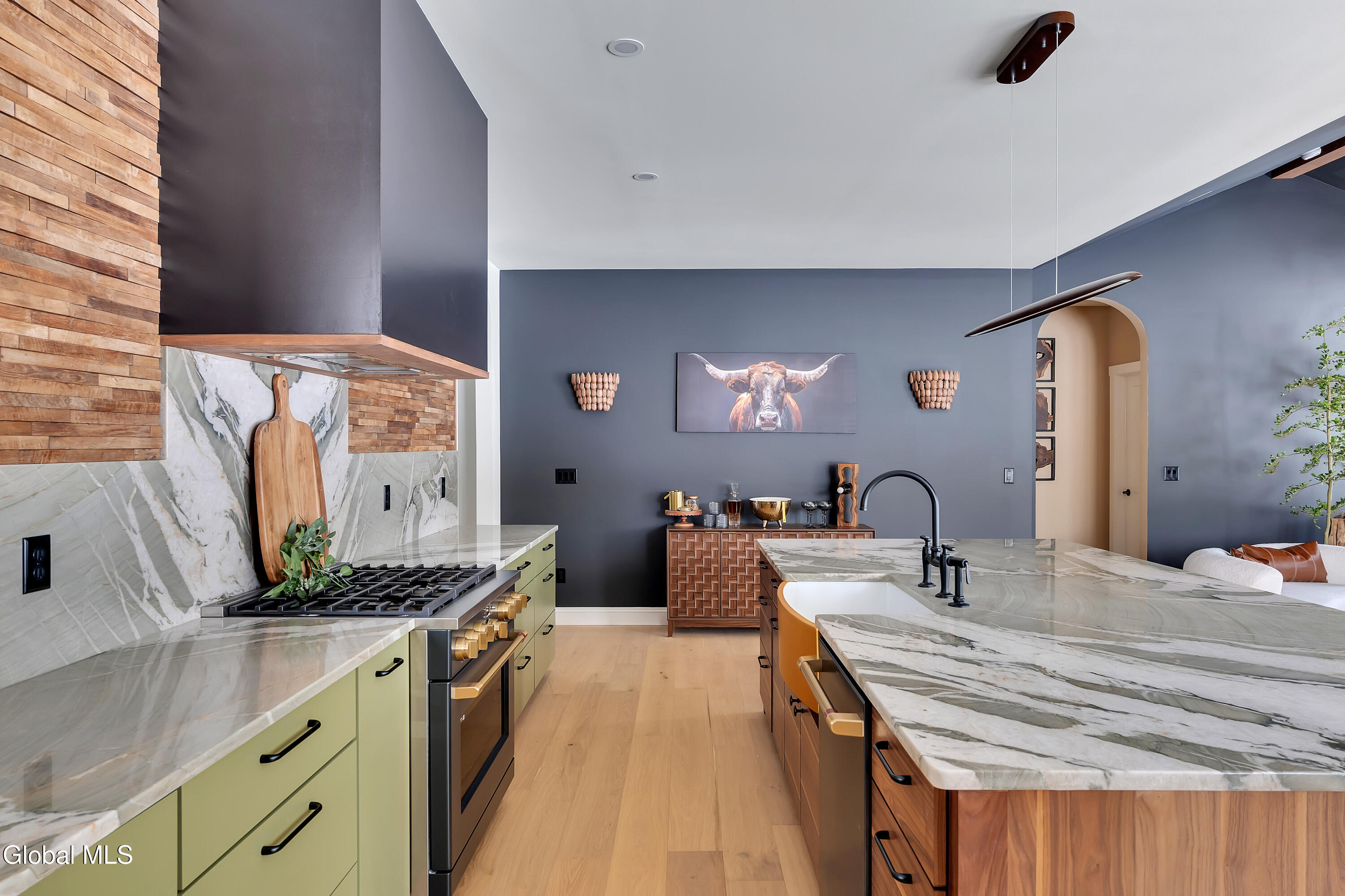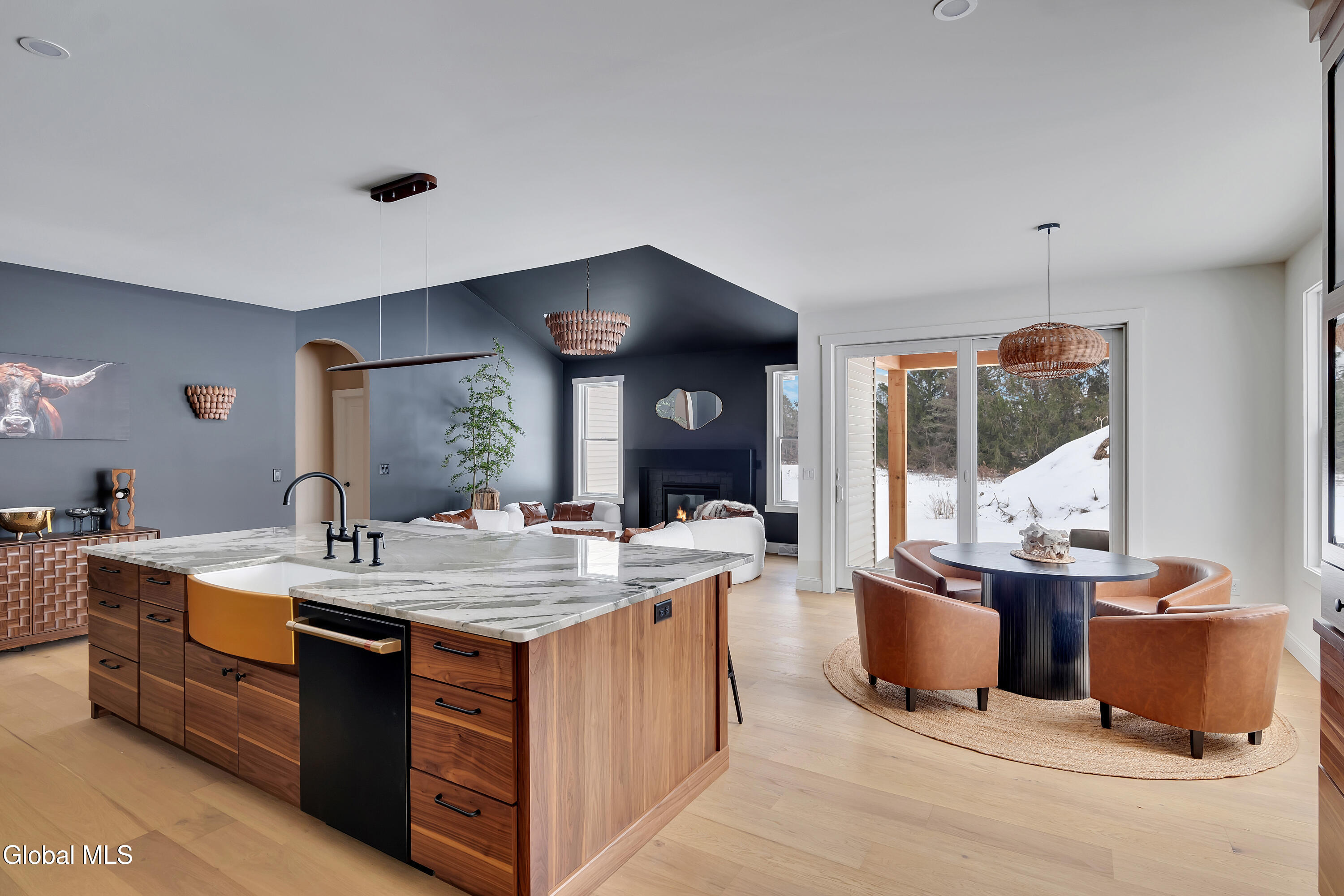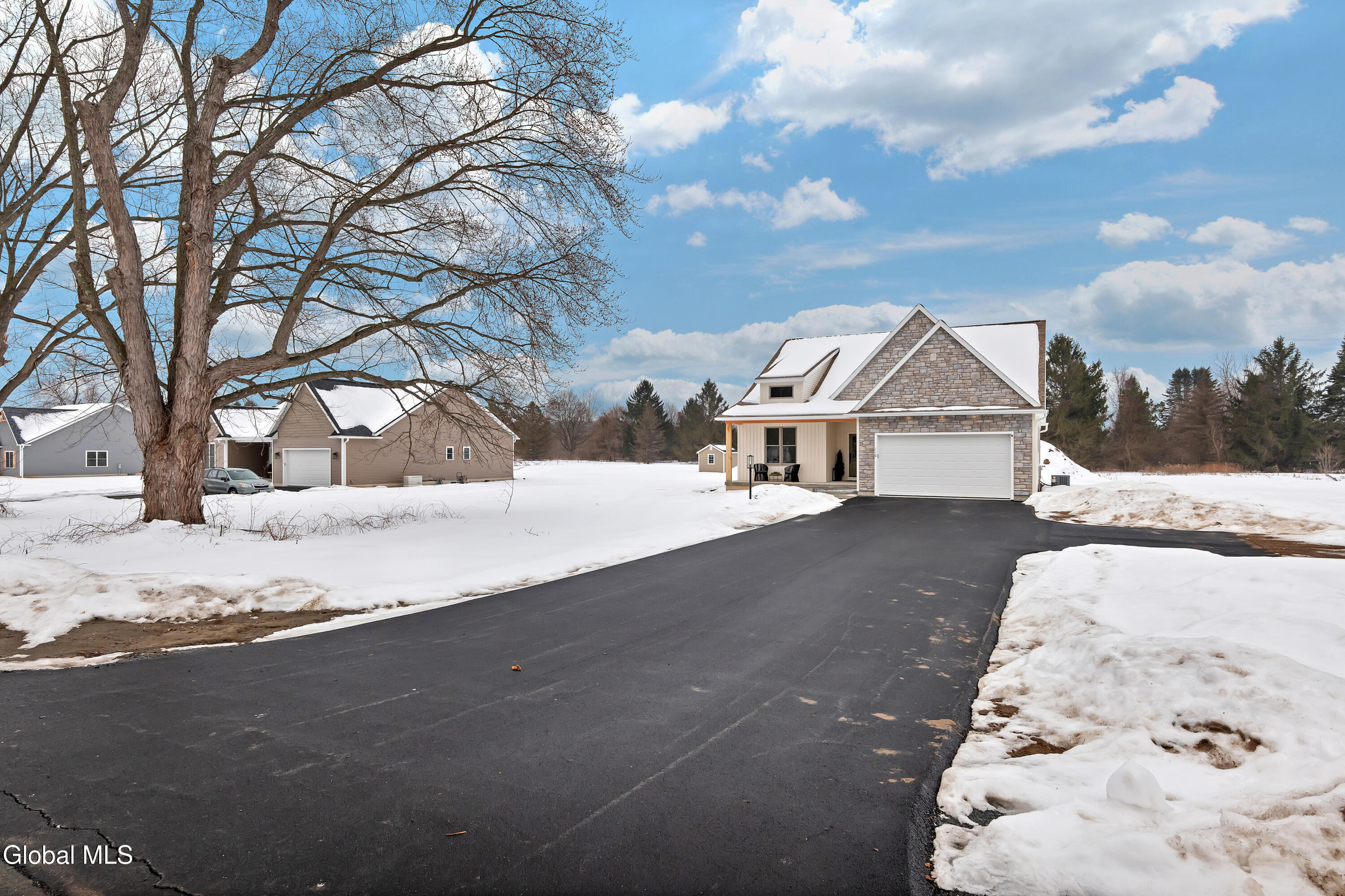 Welcome to your new home, a thoughtfully designed residence that seamlessly balances your everyday needs with your aesthetic desires. Experience the harmonious blend of modern luxury and rustic charm in a curated kitchen, ideal for both entertaining and intimate gatherings. The primary suite offers a spa-like retreat, featuring a bathroom that marries sleek minimalism with organic warmth. This inviting sanctuary includes a custom walnut-finished vanity paired with artisanal lighting. Architectural highlights abound, particularly the statement island, which serves as the focal point of the kitchen. Its dramatic marble countertops, adorned with complementary veining, transition effortlessly into a full-height matching backsplash. This kitchen and living space are meticulously designed for high-end social entertaining while also accommodating cozy everyday gatherings. A sophisticated color palette flows throughout this three-bedroom, two-bath home, creating a calming atmosphere enriched with rustic farmhouse elements. The kitchen is equipped with matte black Café series appliances, custom walnut cabinets, and a full butler's pantry. Artisanal accents, such as a linear wood pendant over the island and handcrafted mango wood sconces, enhance the home's aesthetic. This beautifully crafted and functionally designed residence is perfect for those seeking to maximize space without compromising on luxury. Situated on 1.5 acres, this home is within walking distance of Olde Post Golf Course and conveniently located minutes from major thoroughfares leading to downstate, Albany, MA, and VT. It is also close to the train station, Albany Airport, and Regeneron. Schodack is an up-and-coming area that offers a central location for all your needs. Come and experience for yourself the thoughtful layout and design that this home has to offer.