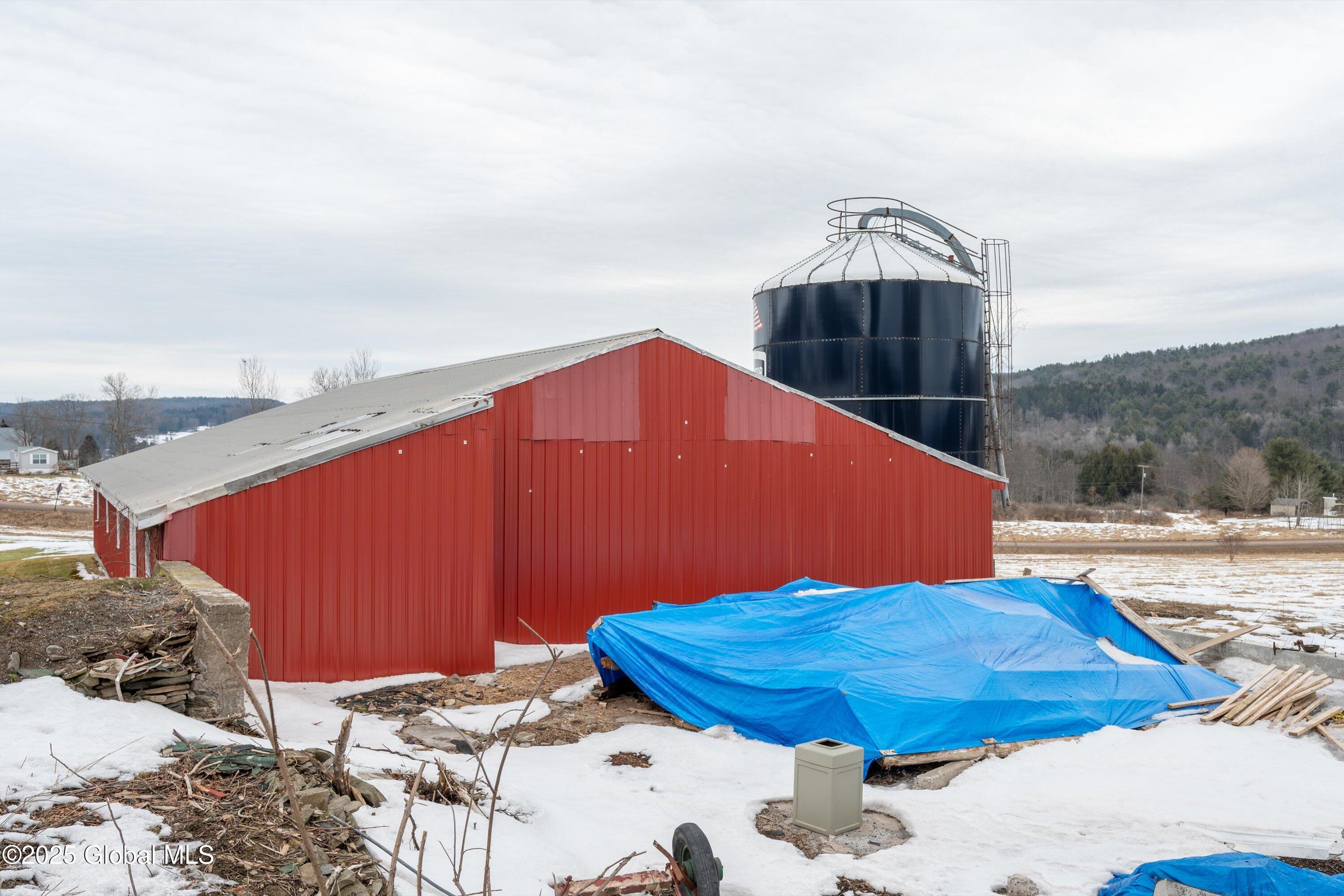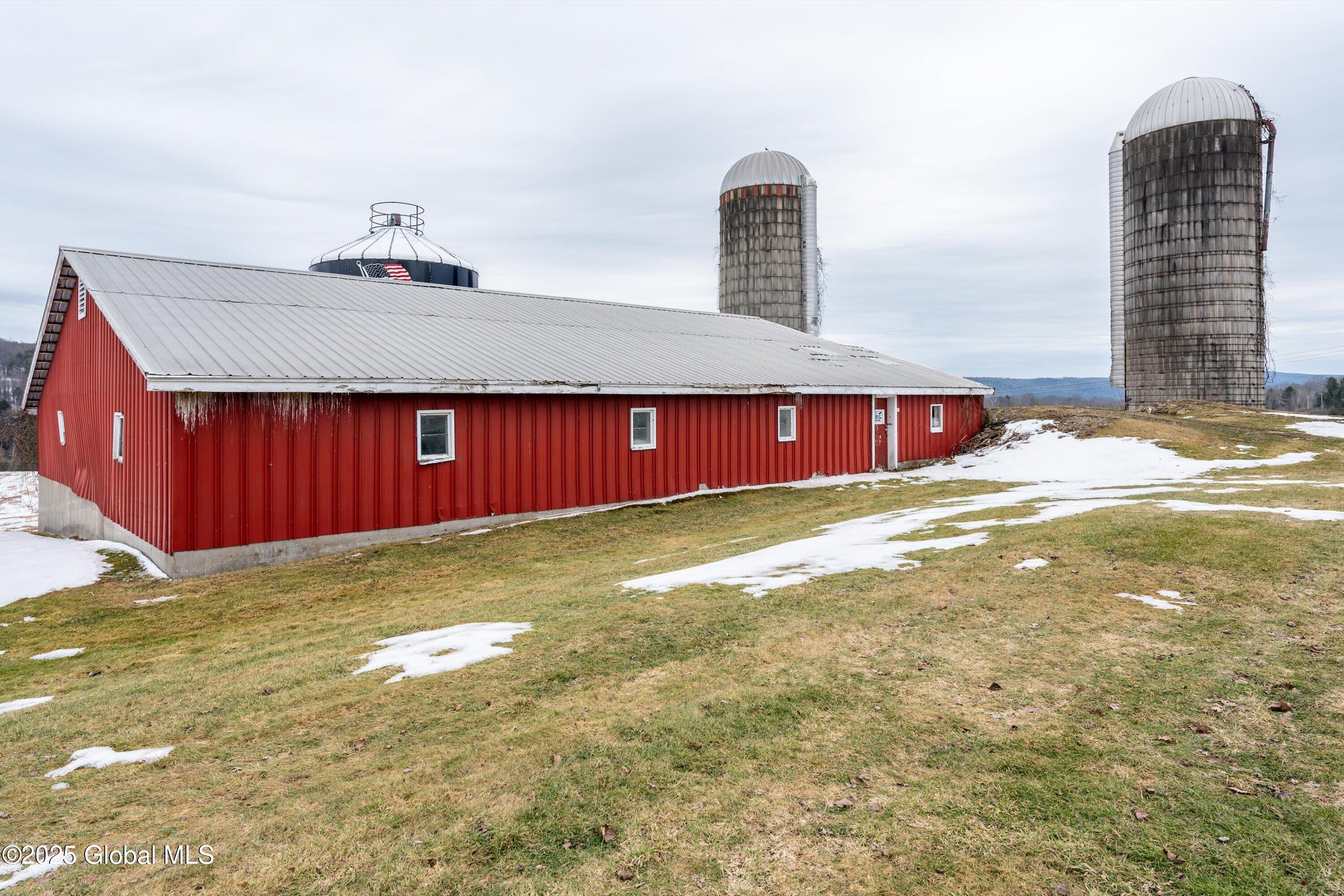Livestock Dairy/Horse Farm with Stunning Scenic Rolling Hill Views. The barn sits on 5.15 acres and has 3-grain silos, and 12 stalls, offering a clean 4000 sq ft building that can be used as a garage, shop, barn, or storage. There are two - 5 acre buildable lots behind the barn for $35,000 each. The house is also for sale parcel#284.-2-9 $199,000, The house is a federal-style historical house that used to be the mayor's house originally constructed in the 1800s and renovated in the 2010s and 2024 sits on 4.07 acres. Can all be sold together for $299,000