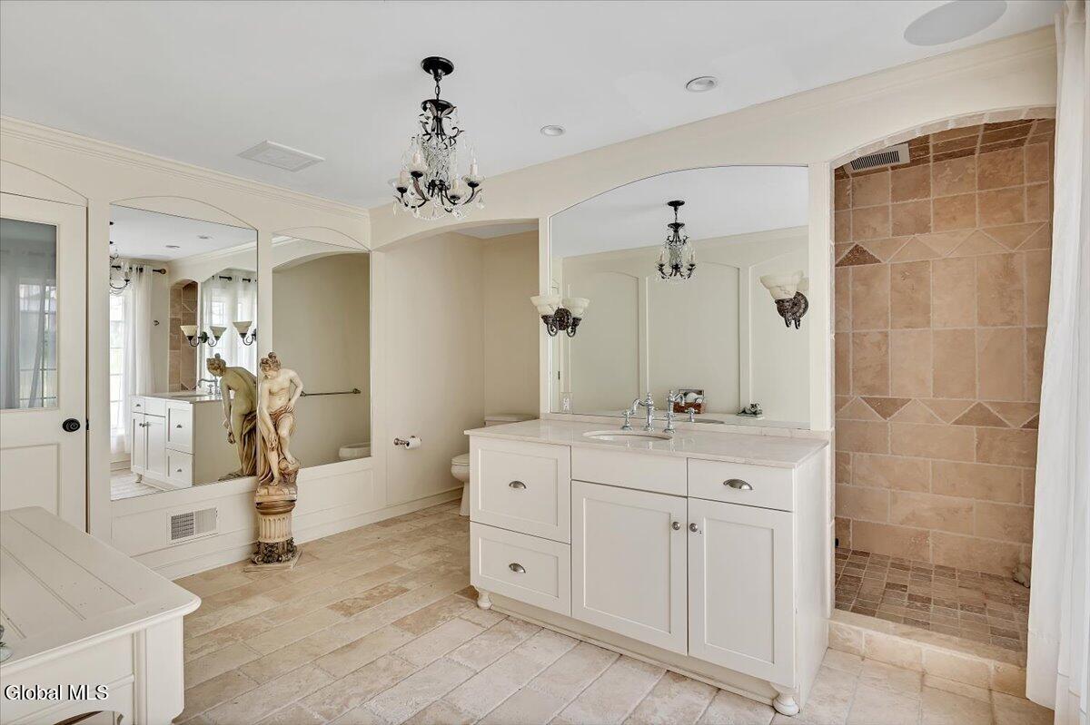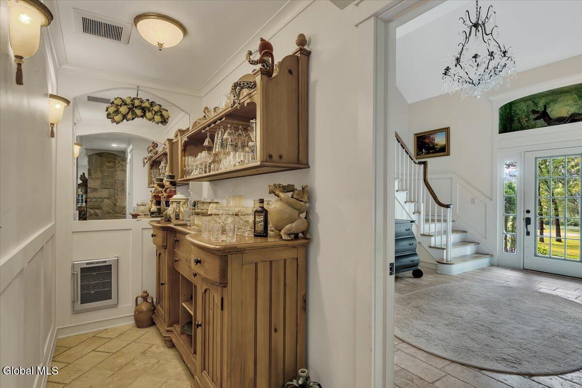 This dream home offers refined design & quality craftsmanship w over 4500 sq ft of living space. Many renovations done in 2007 including windows, roof, and a custom chef's kitchen which includes Thermador, Wolf & Miele appliances, 3 prep areas w sinks & plenty of storage. A must see! The main level offers an open concept layout w 3 fireplaces, 2 dining rooms, one which overlooks the manicured backyard, and one overlooking the beautiful front yard. A great room & main level primary w a sitting room, gas fireplace, walk-in closet, patio & an en-suite w Travertine flooring. Upstairs retreat to 3 additional spacious bedrooms w en-suites, one with a walk-in closet, 2 sitting rooms, a flex space & generous laundry room. A private elevator ensures effortless access to every level. Every detail has been thoughtfully crafted. House equipped with a Generac generator, an automatic air filtration system, water softener, sound system & a security system. All the extras have been done! This house is the perfect blend of sophistication & comfort and is an entertainer's dream. Some furnishings negotiable. Seller is motivated and can close quickly. Additional parcel included in sale to total 2.23 acres