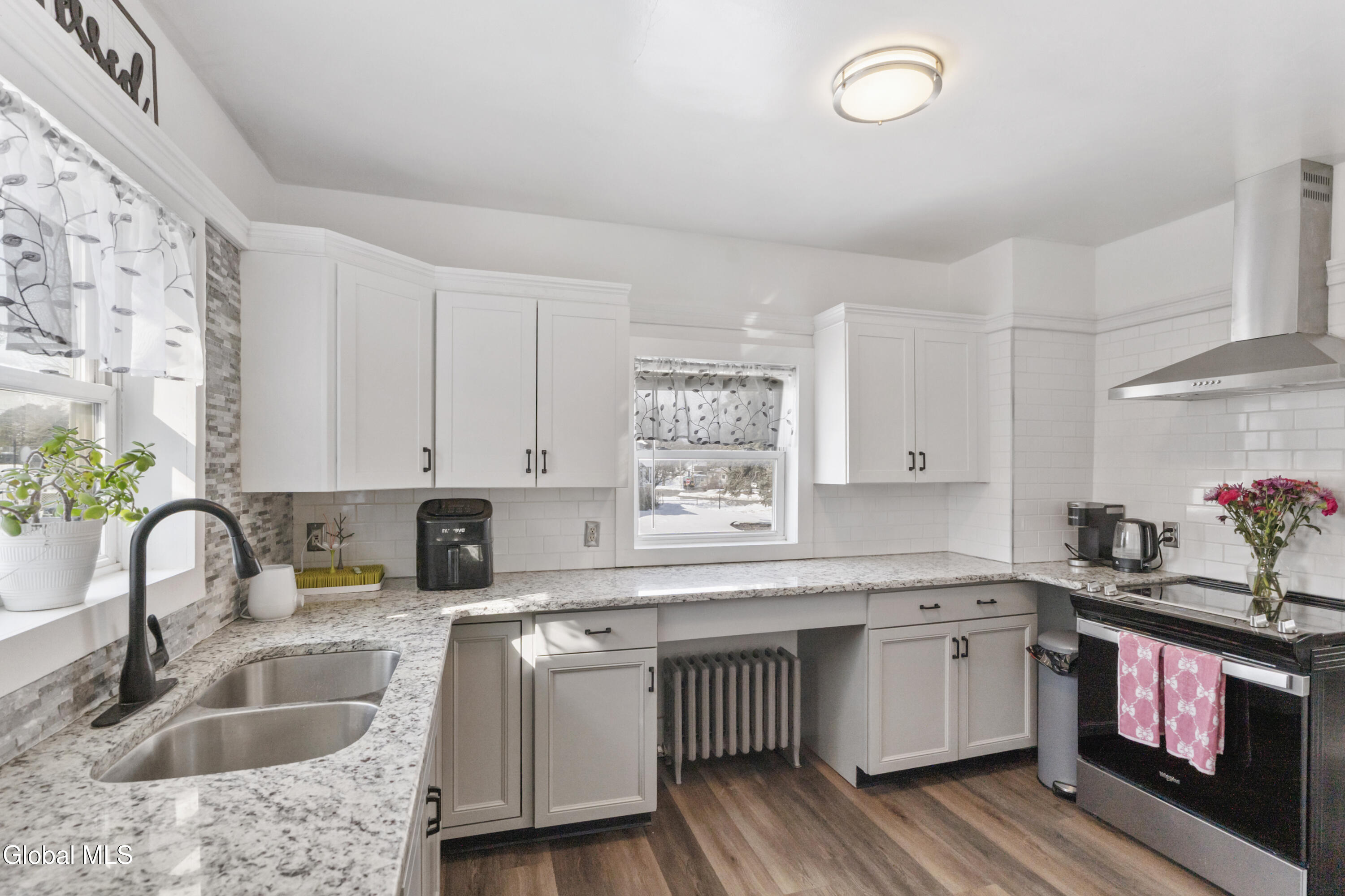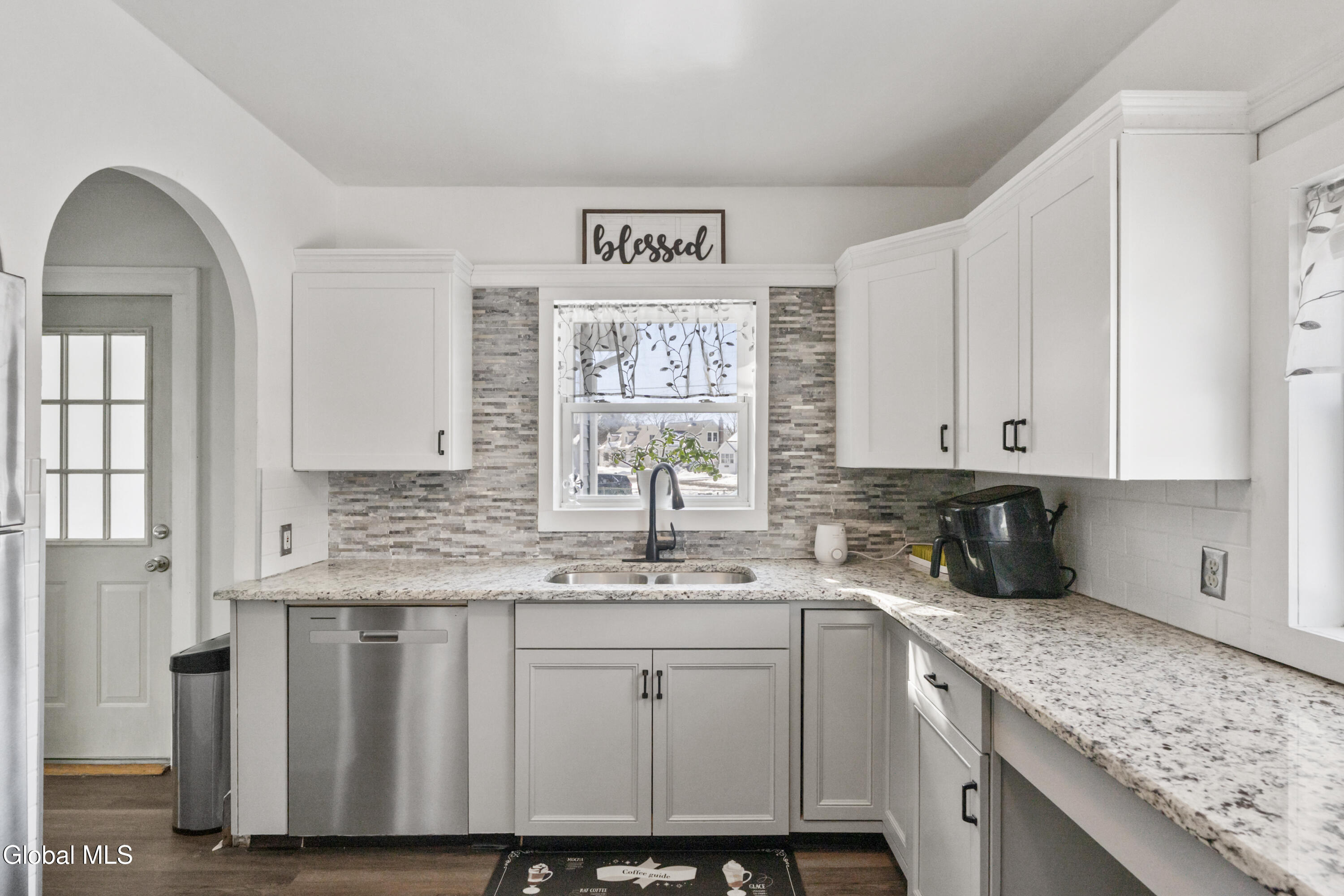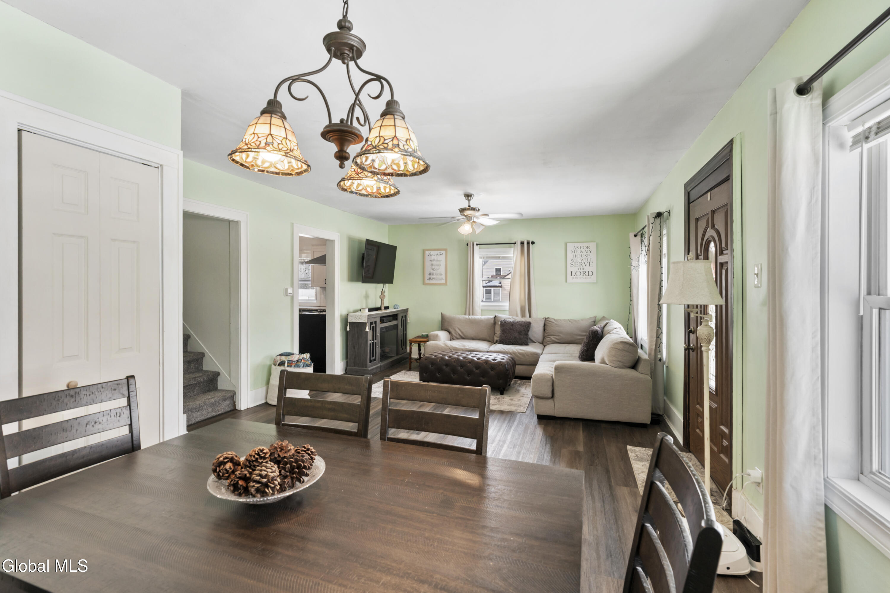 Have you been searching for a home that has been beautifully updated AND has charm and character? This home has it all! The kitchen has been completed renovated with new cabinets, granite counters, & stainless appliances. Beautiful, durable new vinyl plank floors throughout the first floor. Open living room/dining room is perfect for entertaining. TWO nicely updated full baths, one of each level. First floor bedroom (currently being used for an office). In addition to the 2 bedrooms upstairs is a charming loft area. This home has been meticulously maintained with improvements such as; new boiler ('23), HW tank ('24), gutters ('24) new concrete steps & landscaping ('24) and new rear stairs. Lots of storage space in the full basement. This is a warm & inviting place that you will want to call ''home''!