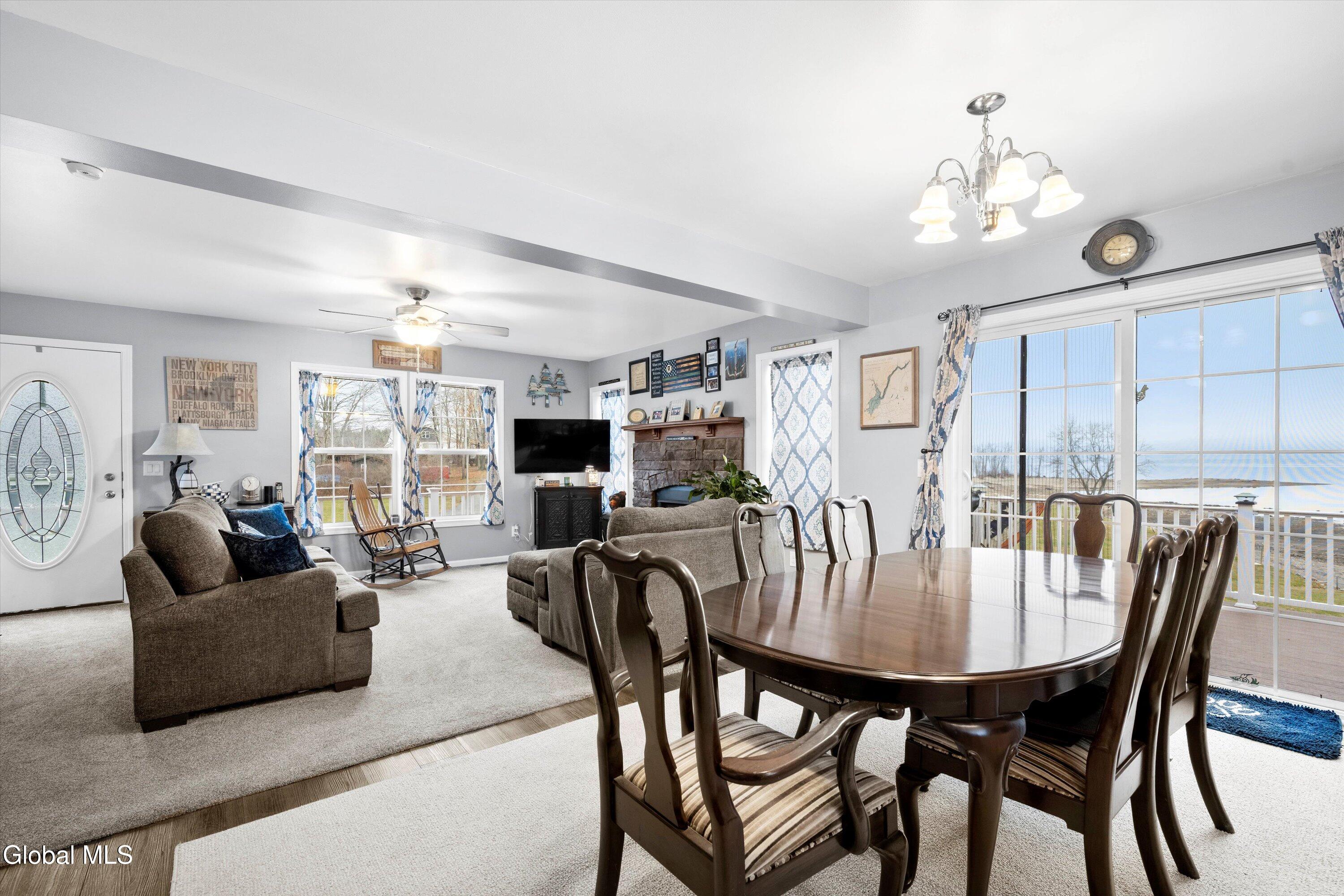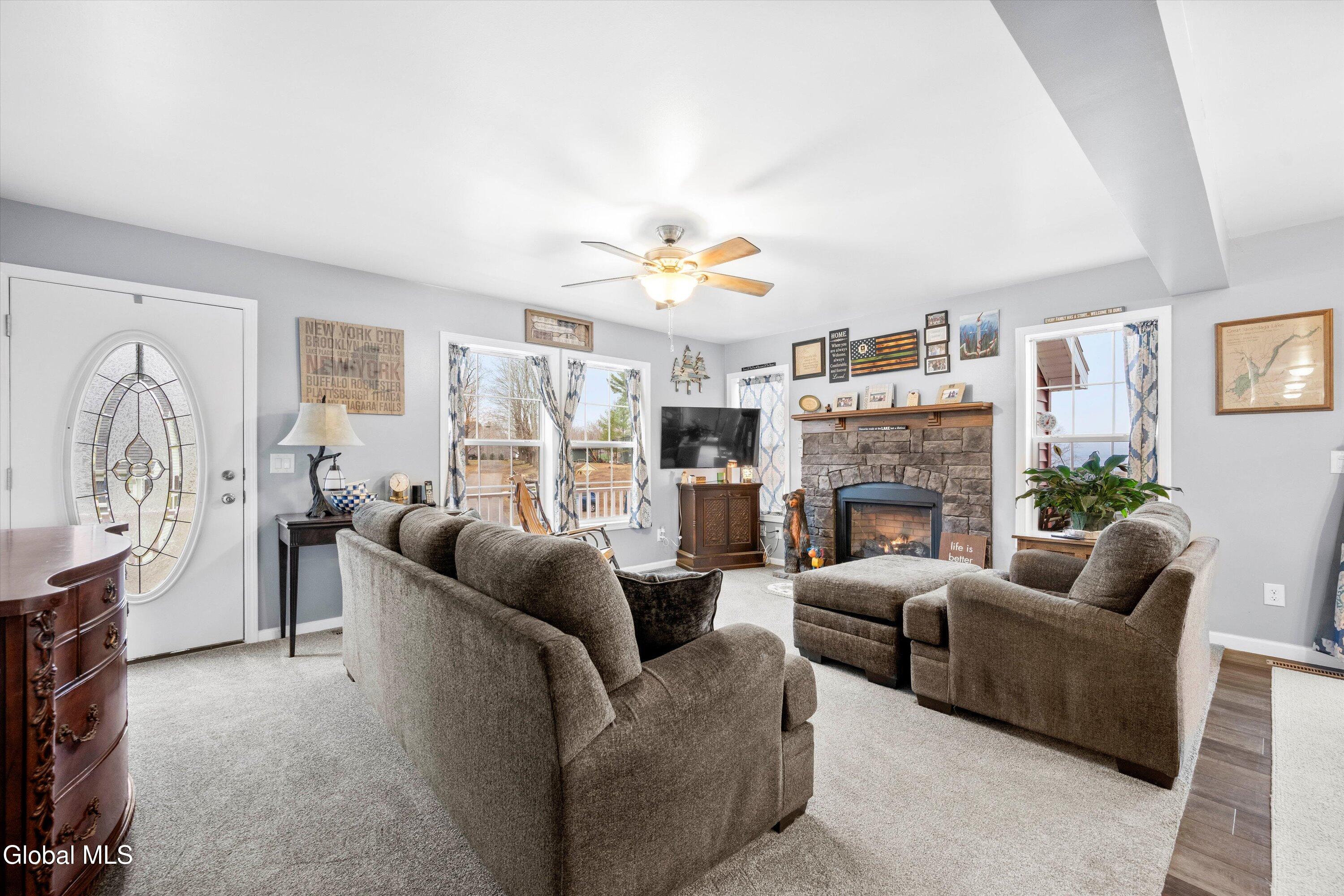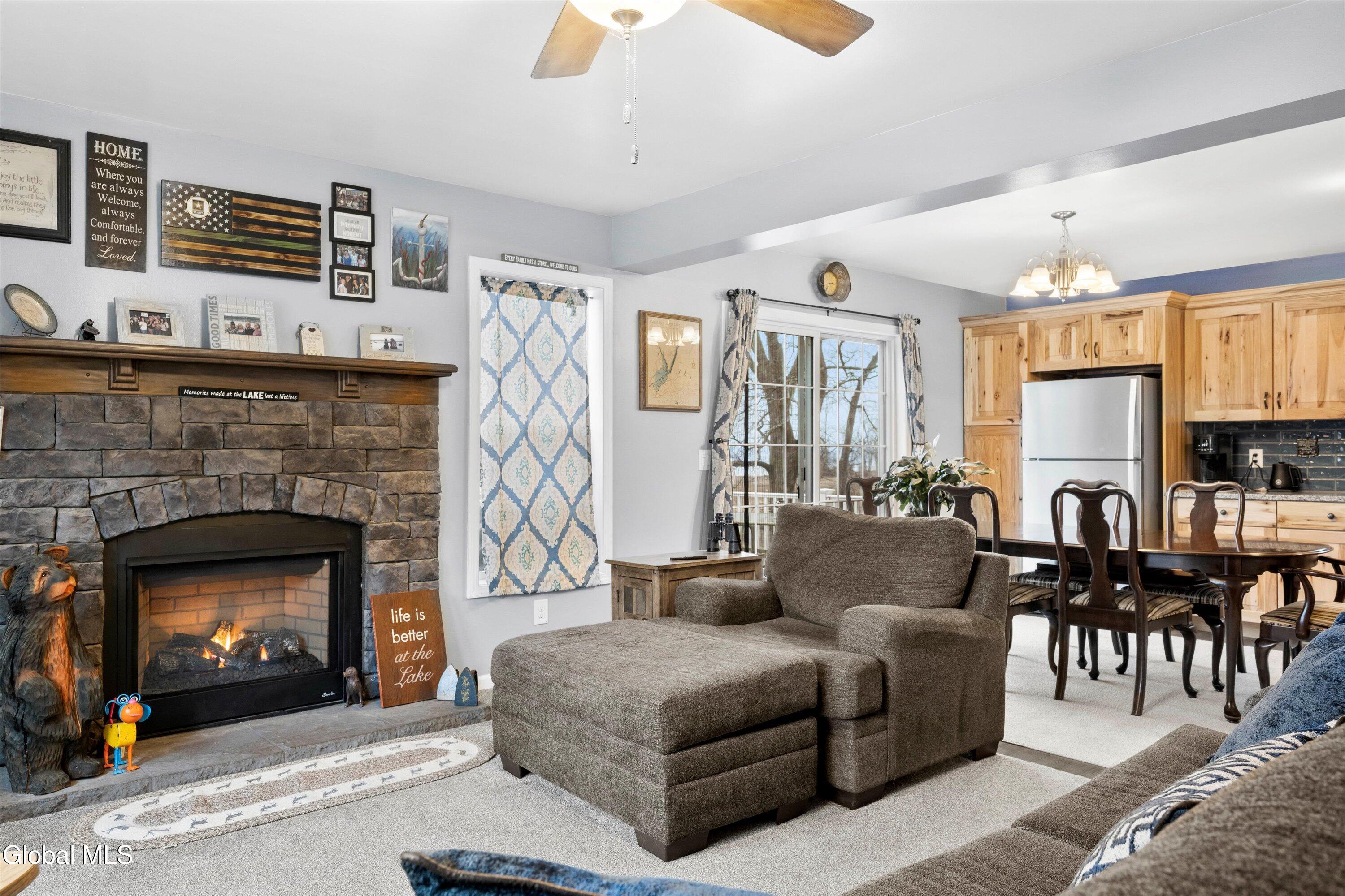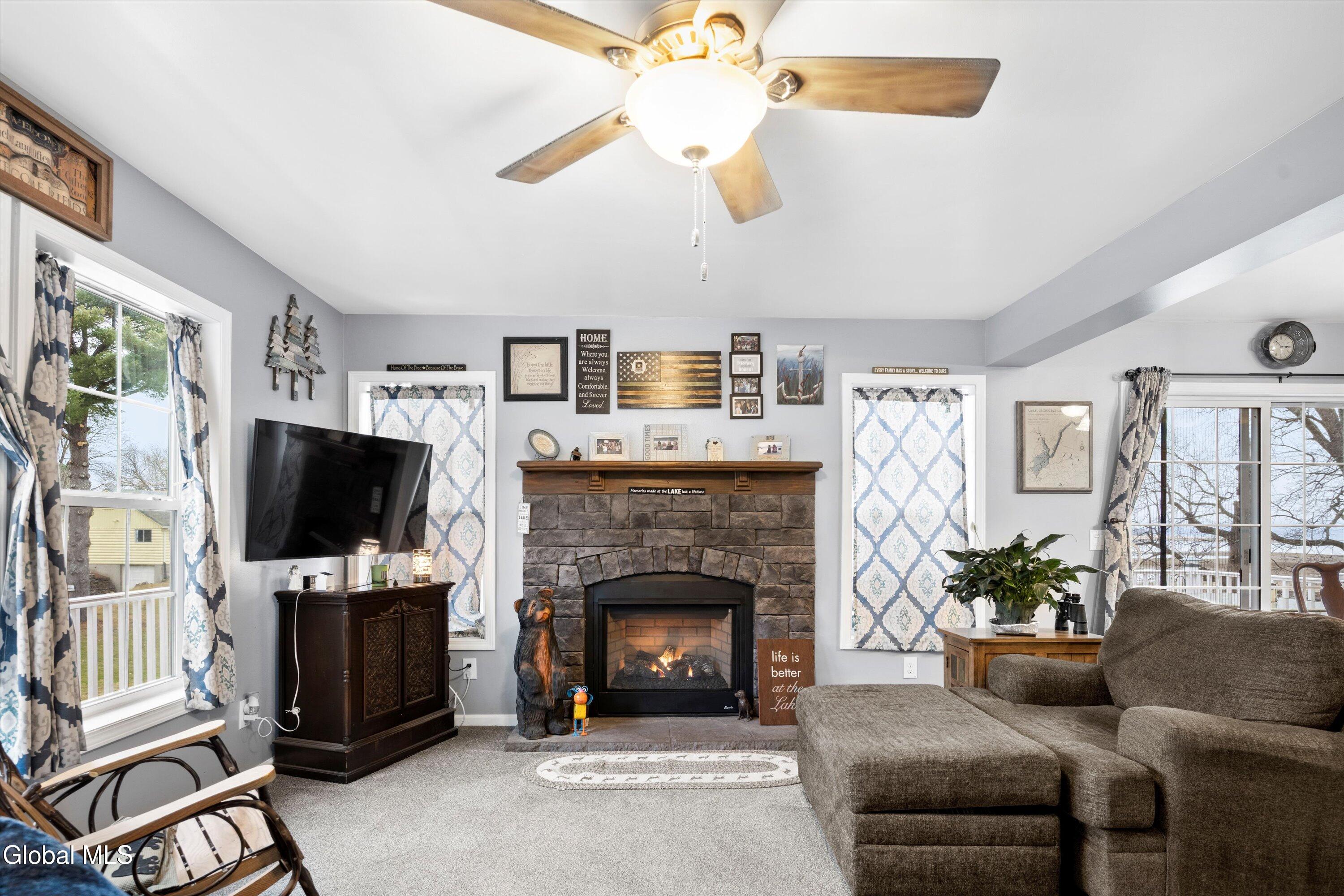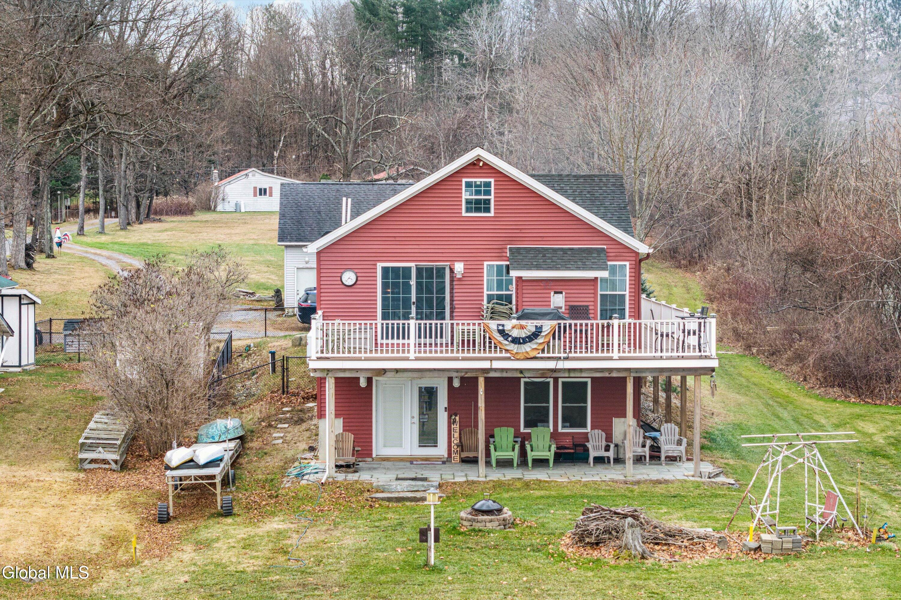 Experience lakeside living on this beautiful 1.2-acre property featuring 40 feet of permitted lake frontage on the Great Sacandaga Lake. This inviting home welcomes you with an open floor plan and lake views from both the kitchen and main living area. The spacious primary bedroom includes a private ensuite with a tile shower, while an additional office provides an ideal space for working from home or can be easily used as a bonus room to suit your needs. Step out onto the expansive deck overlooking the water, perfect for enjoying morning coffee, unforgettable sunsets, or entertaining friends by the lake. The property also includes a double story two-car garage, providing ample storage space for your boat, vehicles, lake gear, or a workshop. The unfinished basement offers walkout access and abundant storage, making it an excellent spot for outdoor equipment, kayaks, and seasonal gear. Bonus opportunity also awaits in the walkup attic which is ready to be finished and a whole home generator adds additional peace of mind. This is lakeside living at its finest: peaceful, private, and ready for your next adventure.