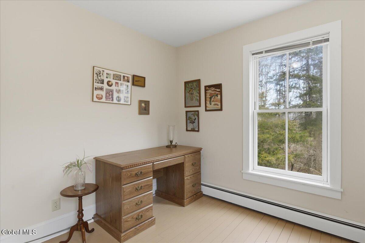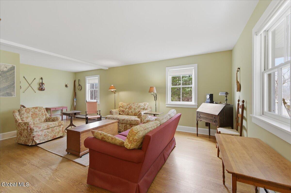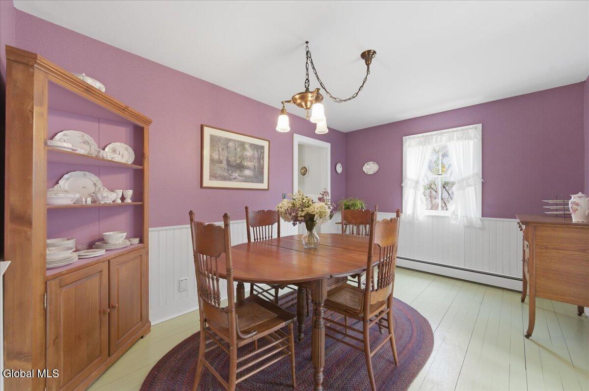 Live in a vintage styled home created by people who wanted it to look correct. Hardwood floors throughout, standing metal roof and low, low maintenance cement board siding. House and lot are being sold with 3 other adjoining lots for 90+/_ acres of unspoiled land. Dry basement with an updated top of the line heating system that is zoned. Propane at the property for the stove. This couldn't be built for what it contains today for this price. Pole Barn for parking the car out of the weather, the outdoor space here has a fenced garden, raised bed garden and plenty of room for any kind of gardening. Close and convenient to the village of Middleburgh and the heart of Schoharie county. Surrounded by similar land, private and farmable if so desired. Dining room has a screened in porch for open air dining. There is a sunroom/porch next to the screened one. Front porch runs the entire front of the home. Decking on front porch appears to be mahogany. Basement is set up as a work area, attic is an old style walk up fully floored for extra bonus space, windows at each end. Colors are what would be present in a vintage home. First floor half bath with the main bath upstairs. Laundry in the basement. Wide stairs going up and down. Loads of bright light, airy and easy to live in floor plan. There may be some furnishings offered. Taxes include all four properties listed along with the house property. Tax docs listed in the docs here and available at the house. Come and look at an old house built in 1999 and step back into a loved and well cared for home.