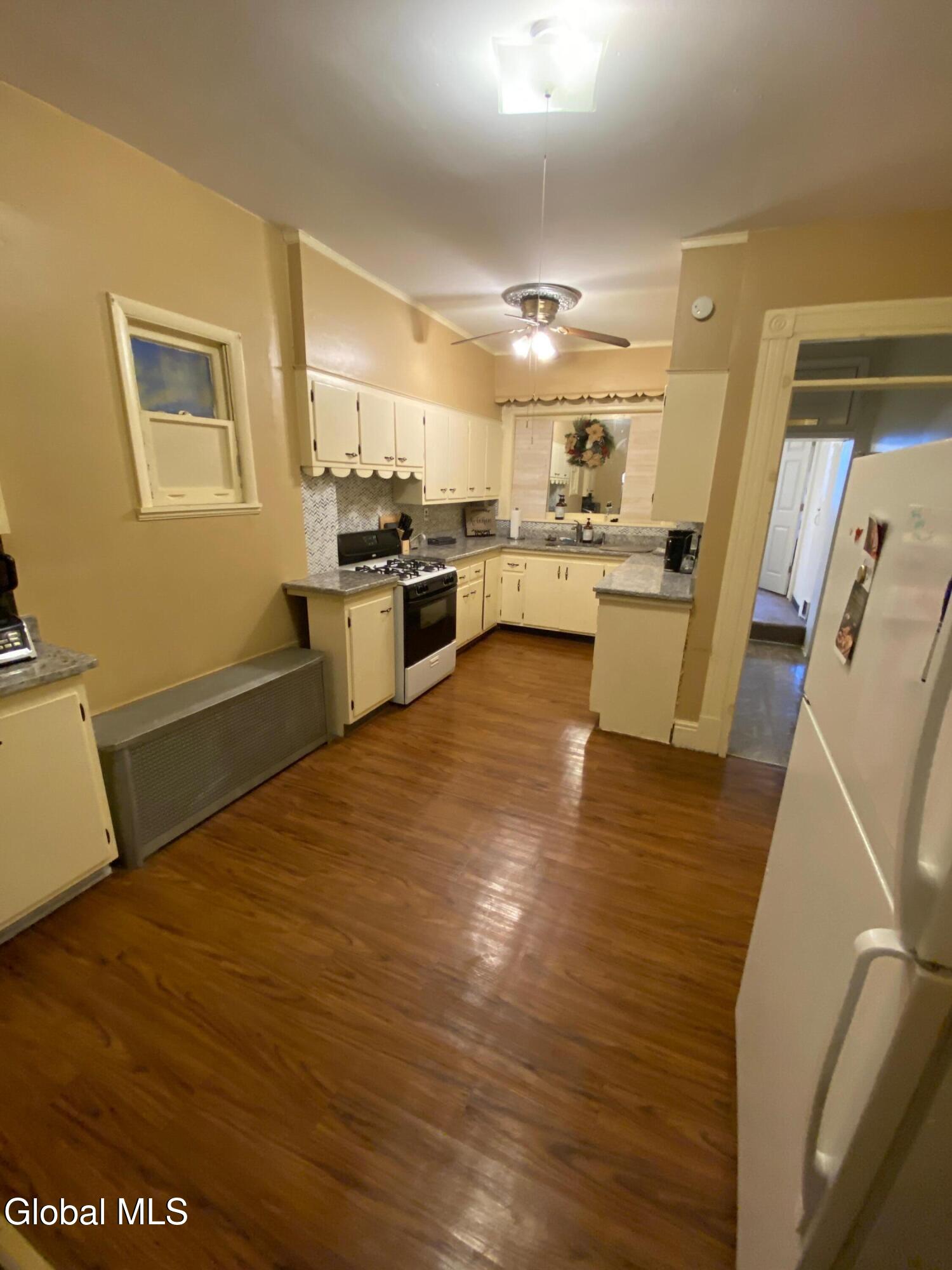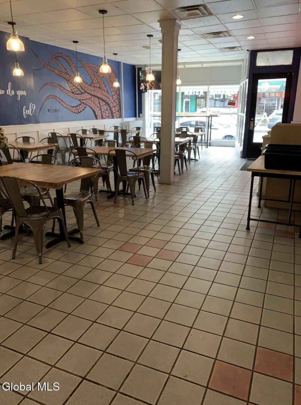 This big brick 8,118 sq/ft mixed use commercial building features 7 sources of income grossing $110,400 per year. The 1st floor restaurant space is leased by a well established restaurateur. It has separate utilities and is equipped with central air and a new boiler in 2014. There are 4 additional units above the restaurant grossing a total of $5,000 per month. The former owners unit on the 3F features hardwoods. The studio apartment is located over the highly sought after garage with very high ceiling. The studio above the garage rents for $950 month and the garage provides an additional income of $900. Sprinkler system. Gross rents $9,200 per month. Separate electric. Owner pays heat & hot water for the apartments. One year old roof. Excellent Condition.