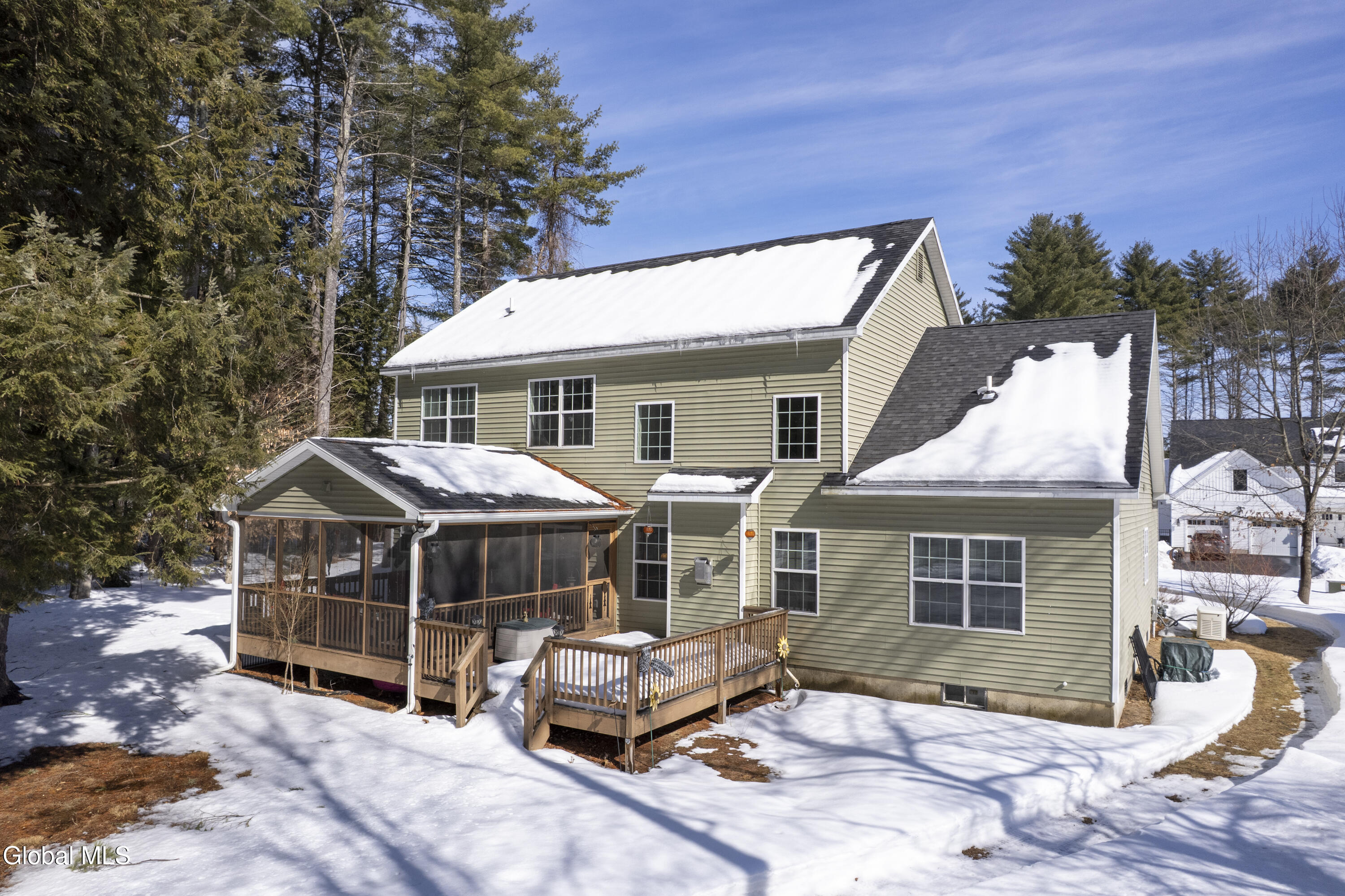 Open house Sunday 3/8/26, noon to 3pm. No showings until open. Meticulously maintained Colonial with a 1st floor primary suite, a dedicated office, soaring grate room ceilings and peaceful wooded views in a neighborhood, offering comfort, privacy and convenient one-level living. The dedicated office space is perfect for remote work, study or a quiet retreat. One of the homes most beloved spaces is the bright, private, 3 season room. So comfortable and inviting that its enjoyed all 4 seasons of the year. Whether sipping morning coffee, reading a book, or taking in the tranquil wooded views, it's a space you will never want to leave. There is also a large outside deck space. From the moment you step inside, you will appreciate the care and pride of ownership throughout. The 2nd floor offers 3 bedrooms, a full bath and a large unfinished bonus room. Additional features include a convenient attached 2 car garage with storage, a full basement, generator,1st floor laundry room, a pantry, and a shed out in the yard for more storage. Utilities are underground. This is a home that has been truly loved, upgraded and is ready for it's next chapter.