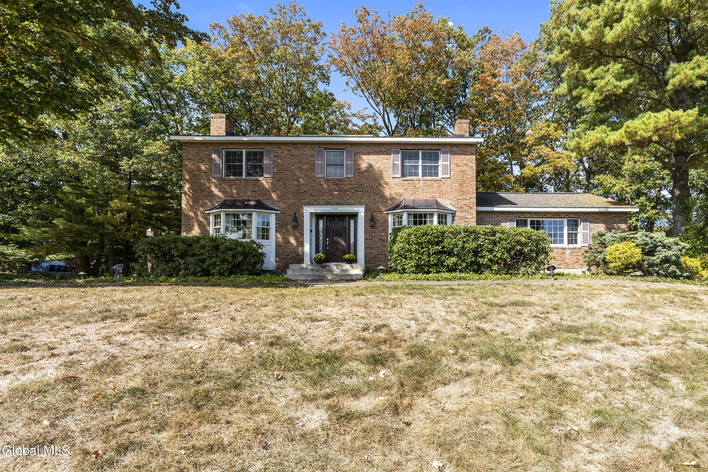 Discover timeless charm and modern convenience in this stately 3,579 SF brick Colonial which includes an adjacent parcel for a total of .90 acres. Perfectly situated near schools, shopping, parks, and the bike path, this home blends classic design with everyday comfort. Inside, the inviting floor plan features formal living and dining rooms—ideal for gatherings and special occasions. The spacious eat-in kitchen with a breakfast nook opens to a large family room accented by wood plank floors and a sliding glass door to the private backyard. A first-floor bedroom, also suited as a home office, offers flexible living options. Upstairs, four generously sized bedrooms include a comfortable primary suite, while 2.5 baths provide plenty of space for family and guests. Hardwood floors extend through the bedrooms, dining room, and living room, adding warmth and character throughout.