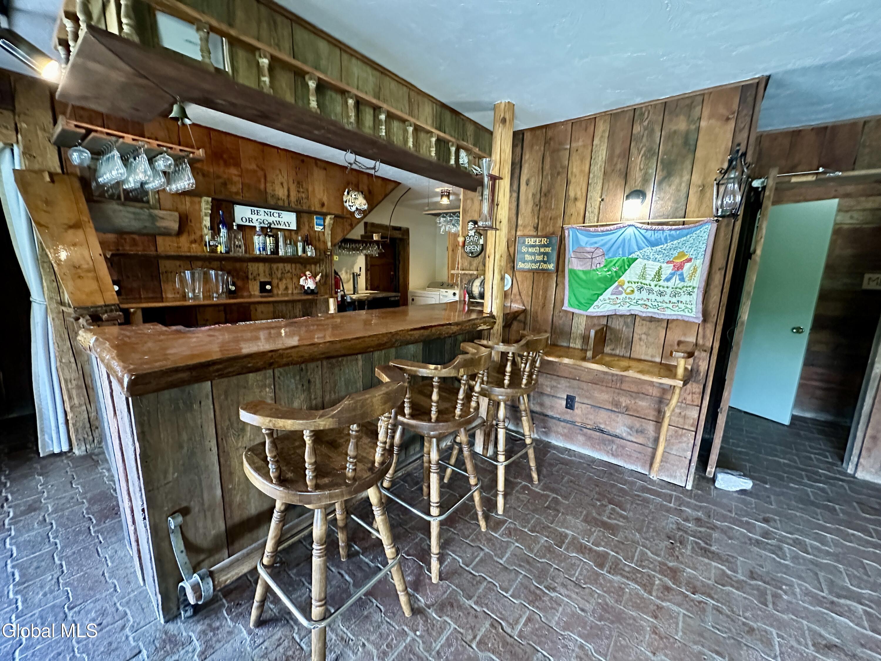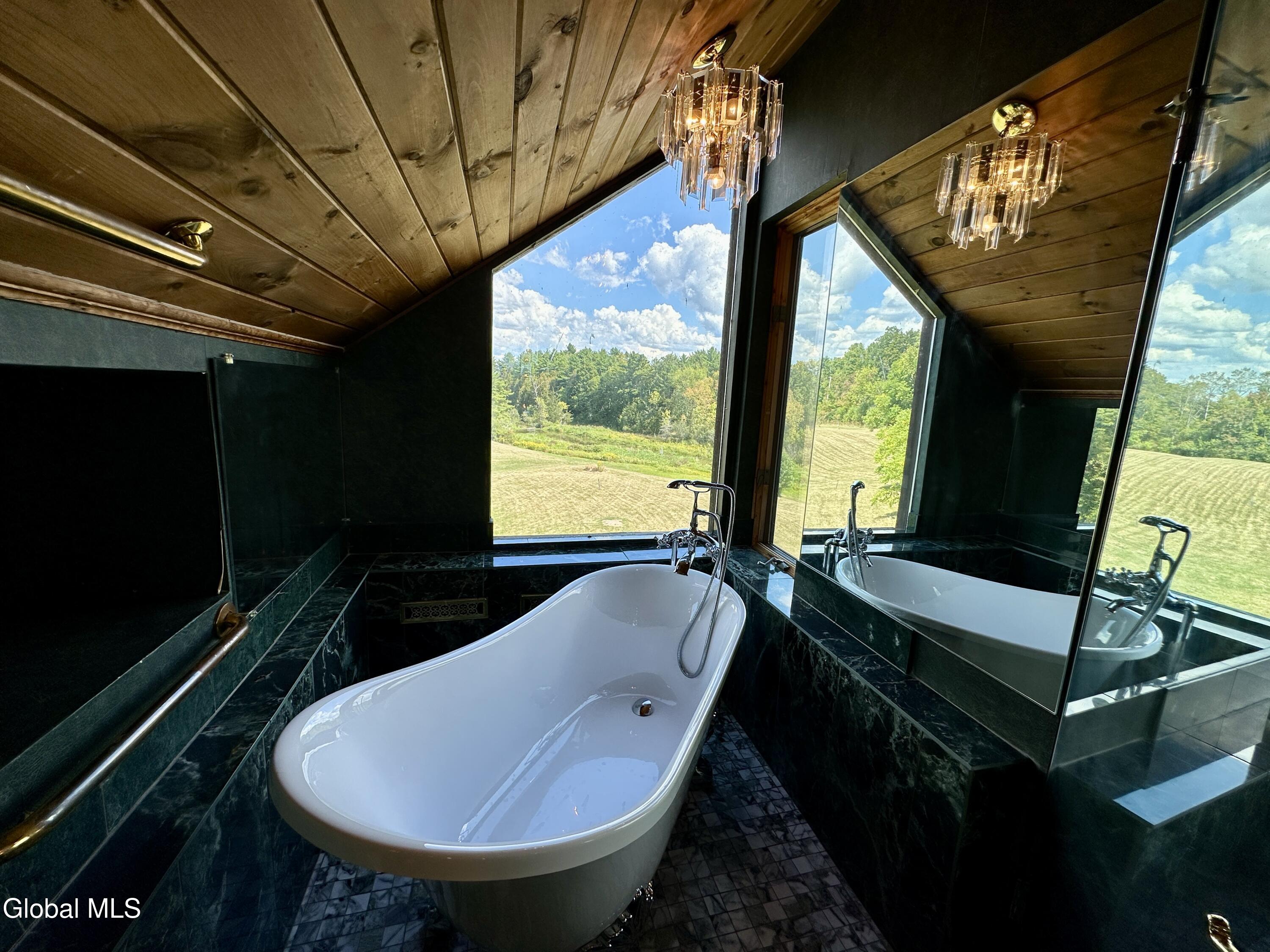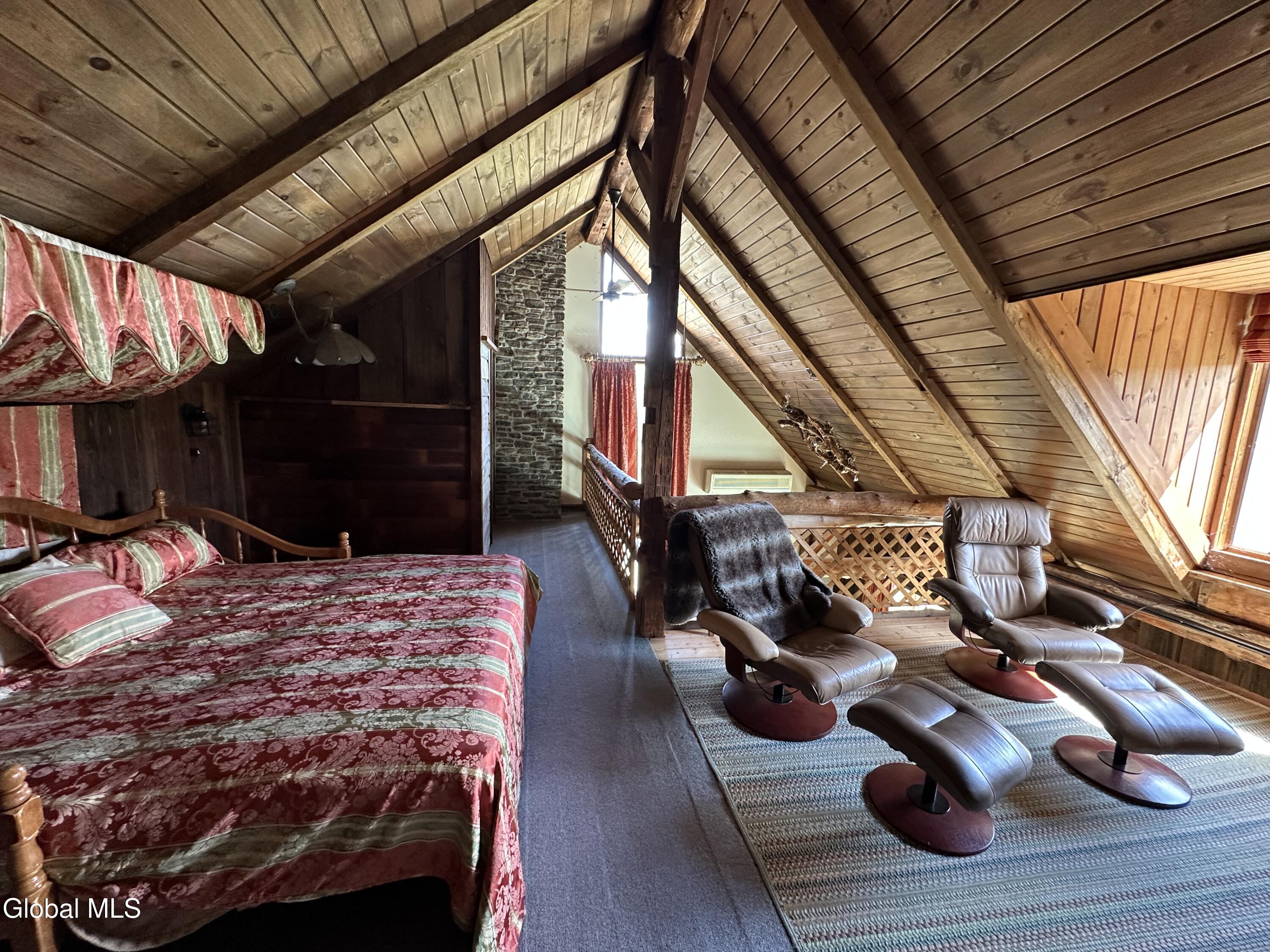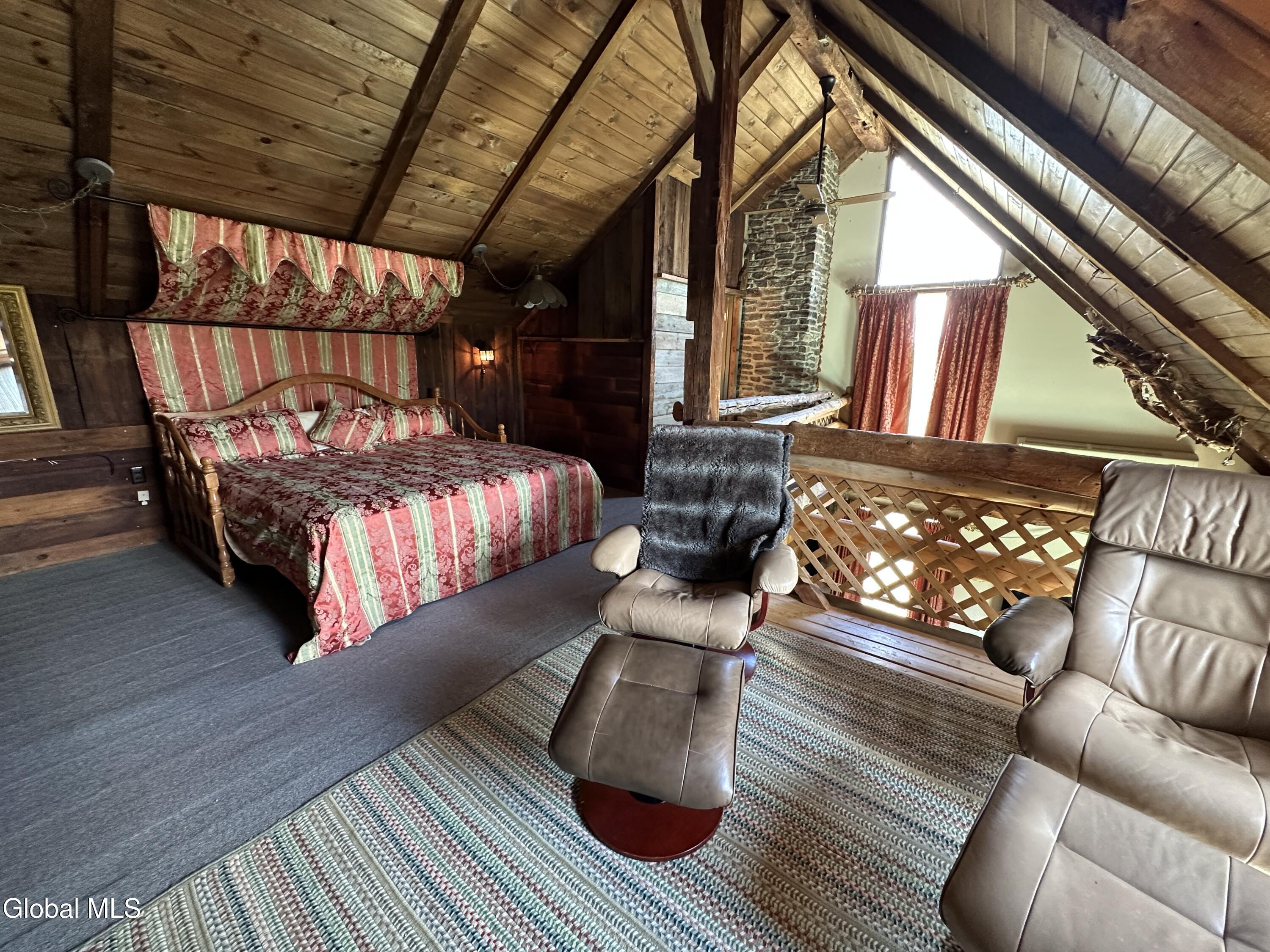 Welcome to 128 Craig Rd, a truly unique property that combines luxury, comfort, and a nod to history, all nestled within a sprawling 296-acre estate. Originally the Craig Farm Ski House and Restaurant, this property still retains its commercial kitchen and a spacious dining room known as the Philadelphia Room, complete with a cozy fireplace—perfect for hosting memorable events and gatherings. The main residence exudes an eclectic charm, with a living and dining area that leads to a coffee/wine bar. Upstairs, you'll find a loft bedroom and bathroom featuring a soaking tub with breathtaking views. The second bedroom, fondly named the Princess Room, impresses with its cathedral ceilings, a picturesque window, and a full bathroom with a barrel vault ceiling. Designed for entertainment, the full basement includes a functional bar, wine cellar, fireplace, and separate men's and women's restrooms. It opens up to a heated sunroom, which leads you to an in-ground pool, perfect for summer relaxation. For those with a passion for DIY projects or gardening, the property offers a garage with a workshop and an attached greenhouse. An in-law apartment with two bedrooms sits above the garage, providing additional living space or guest accommodations. The expansive grounds feature Charter Brook winding through the backyard, extensive lawn space for outdoor activities, and ample room for cross-country skiing, hunting, and riding. Its prime location between Lake George and Lake Champlain ensures easy access to outdoor recreation and beautiful scenery. Whether you're drawn to its hospitality roots or its unique architectural features, 128 Craig Rd offers a rare opportunity to own a property that stands out in both character and scope.
