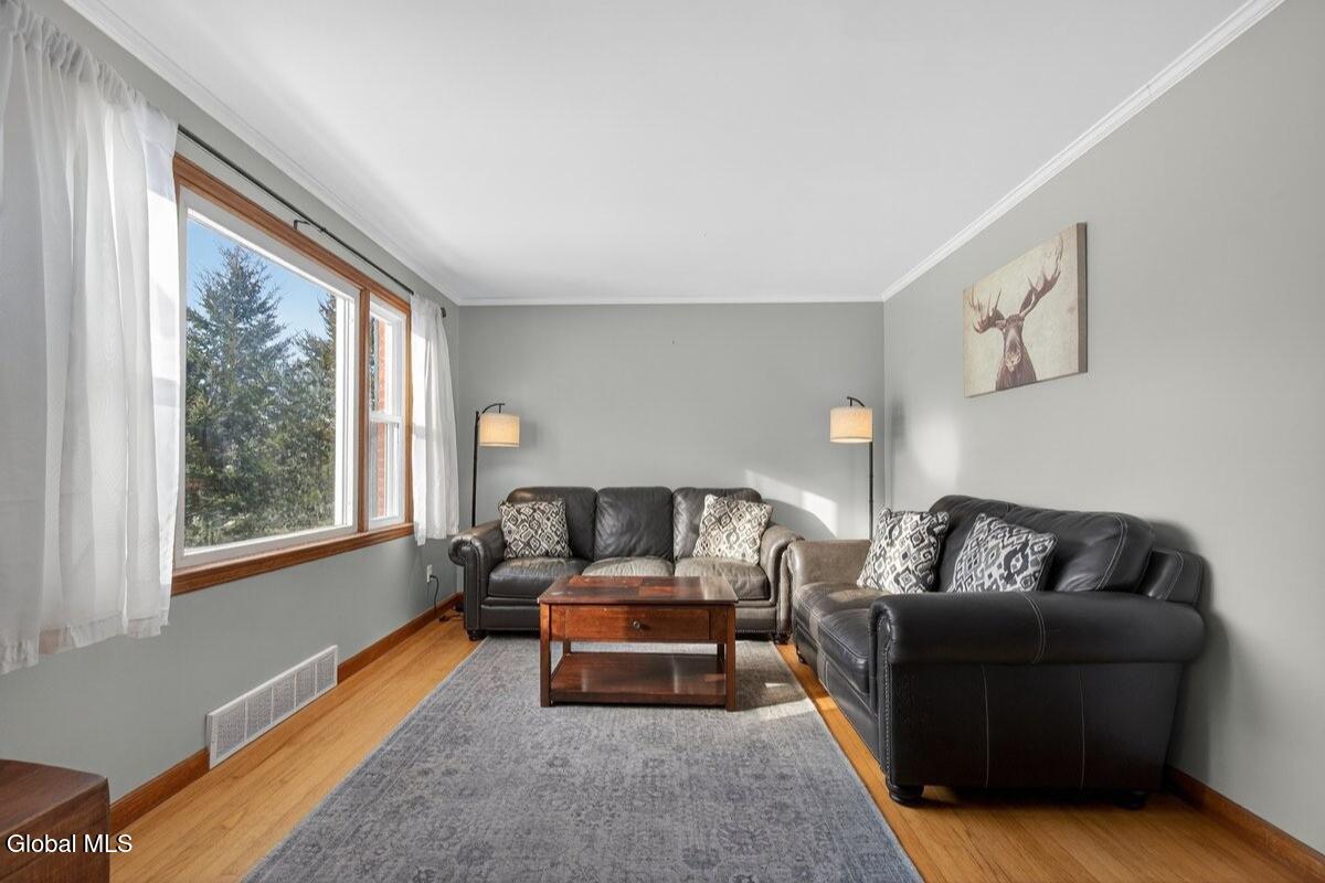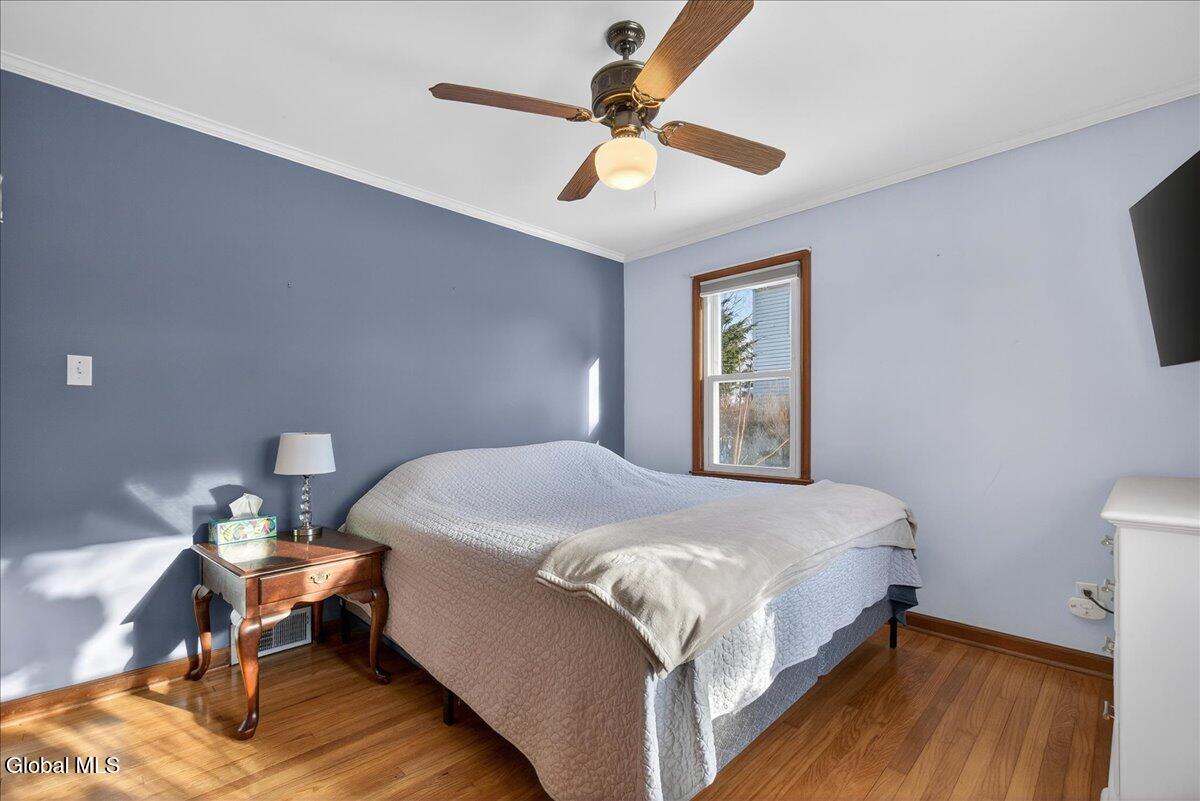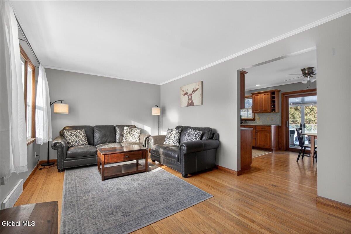 Beautifully maintained 3-bedroom, 1-bath ranch located in the sought-after Burnt Hills-Ballston Lake School District, within the Town of Charlton. A bright, inviting living room flows into a spacious kitchen offering ample workspace and storage. Hardwood floors run throughout most of the main level, which includes two bedrooms and an updated full bath. Upstairs, you'll find a generous third bedroom with attic access, ideal for storage or future expansion. Enjoy the peaceful sunroom just off the kitchen, featuring multiple sliding doors that open to a fenced backyard with a composite deck. Additional highlights include a one-car garage, central air, and a full basement offering storage or future finishing potential. Conveniently located near Charlton Heights Elementary, local shops, and nearby activities. Move-in ready!