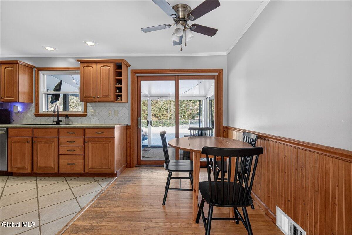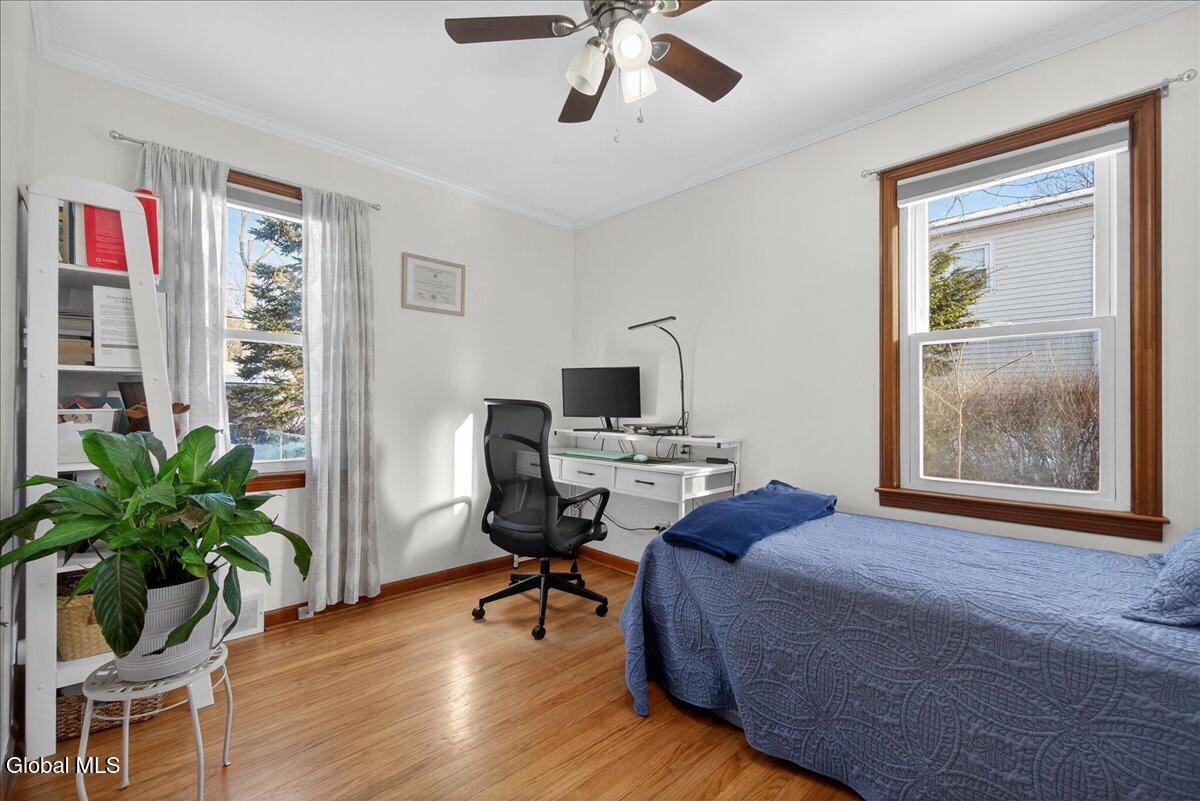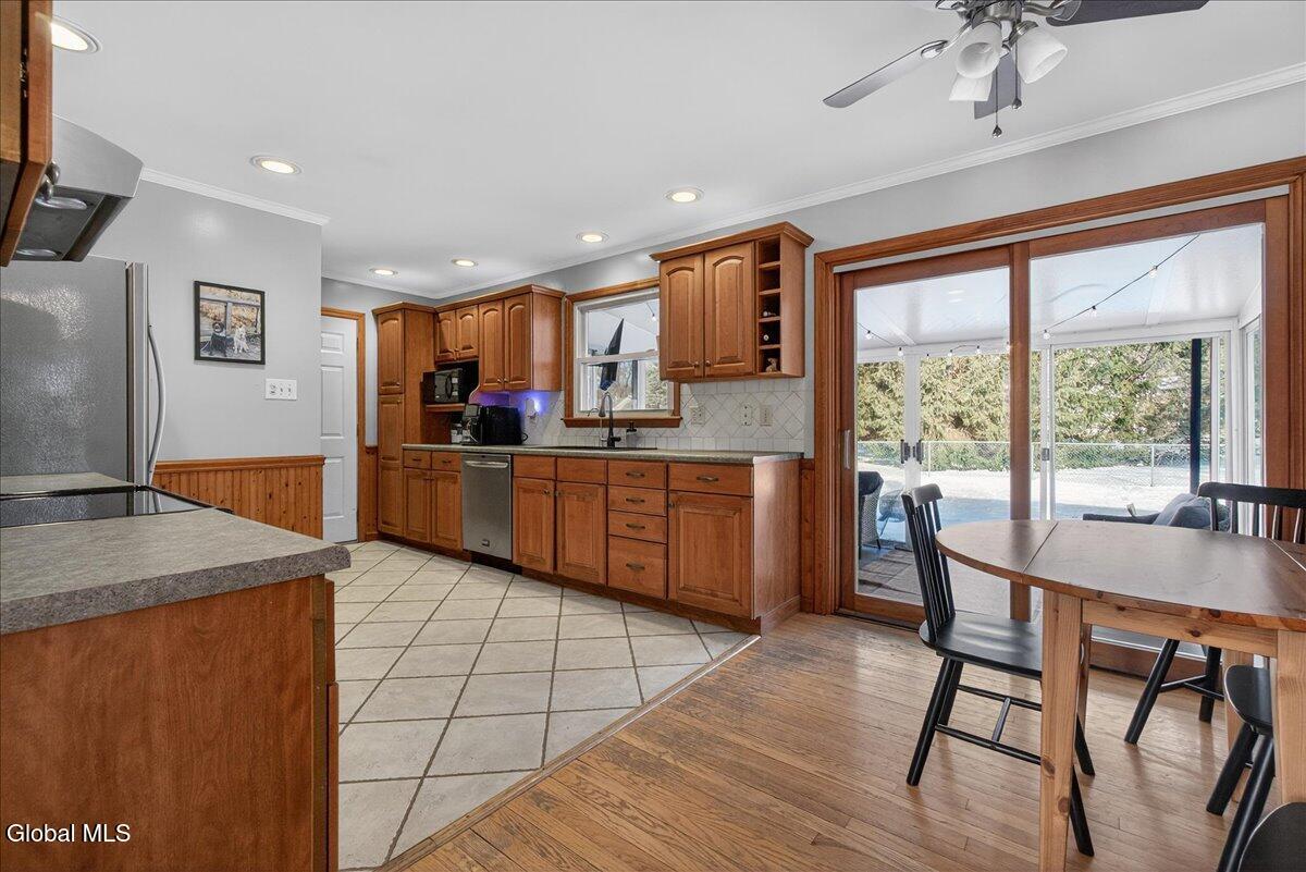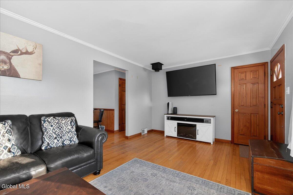 Beautifully maintained 3-bedroom, 1-bath ranch located in the sought-after Burnt Hills-Ballston Lake School District, within the Town of Charlton. A bright, inviting living room flows into a spacious kitchen offering ample workspace and storage. Hardwood floors run throughout most of the main level, which includes two bedrooms and an updated full bath. Upstairs, you'll find a generous third bedroom with attic access, ideal for storage or future expansion. Enjoy the peaceful sunroom just off the kitchen, featuring multiple sliding doors that open to a fenced backyard with a composite deck. Additional highlights include a one-car garage, central air, and a full basement offering storage or future finishing potential. Conveniently located near Charlton Heights Elementary, local shops, and nearby activities. Move-in ready!