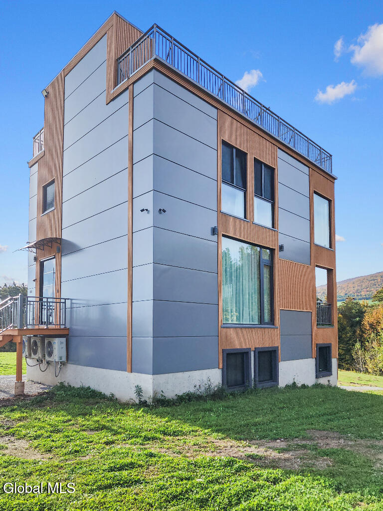 New construction modern home with 6 bedrooms, 3 baths in the Catskills. Features include solid oak floors, triple aluminum-glazed windows with thermobreak, propane radiant heat, mini-split HVAC, and fiber internet. Luxury finishes throughout with sintered stone large-format tiles and steam shower. Sleek Galvalume exterior and modern design. Enjoy panoramic mountain views from the rooftop deck with hot tub. Perfect as a primary residence, weekend retreat, or high-end rental near skiing, hiking, and village amenities.