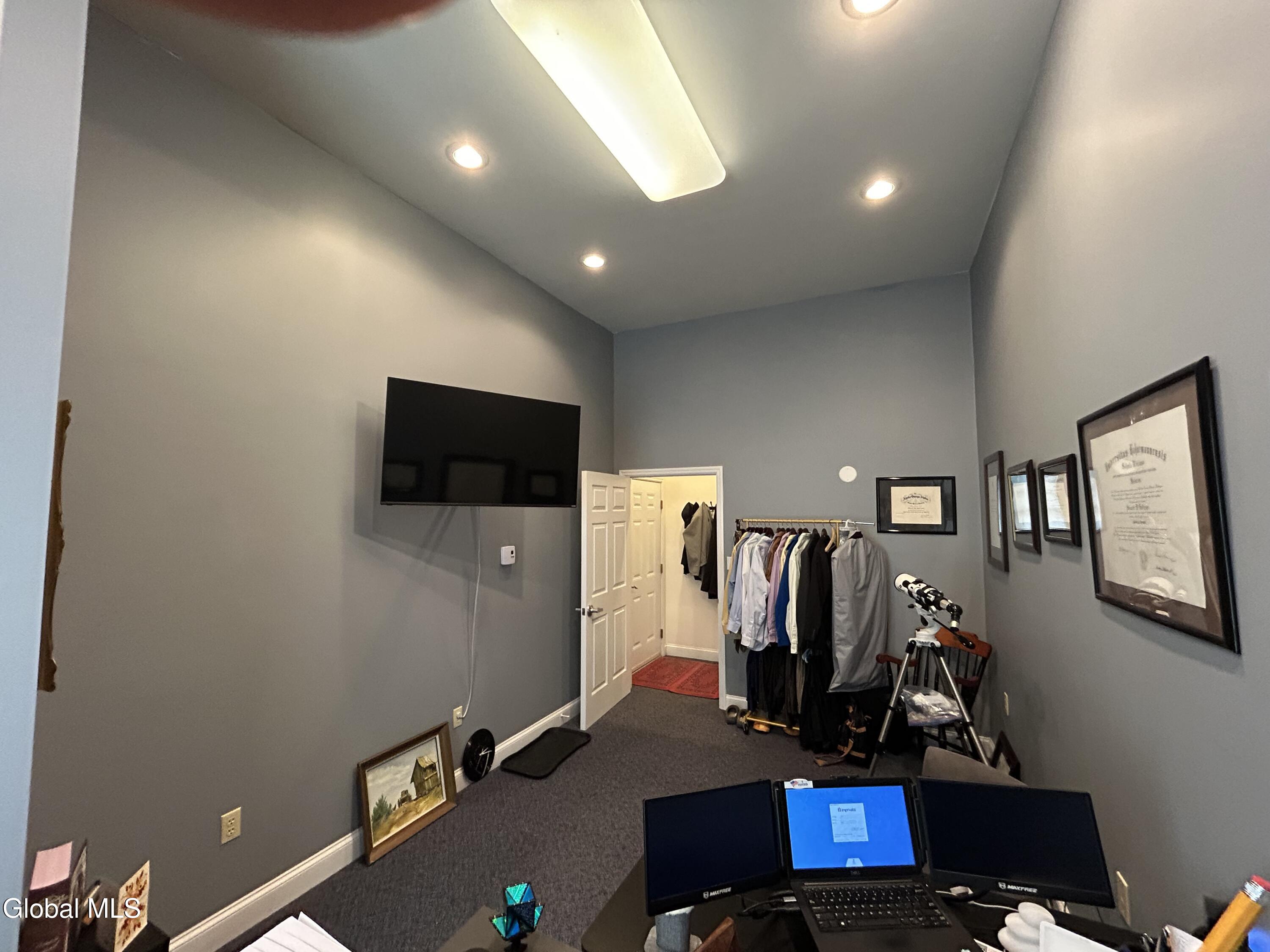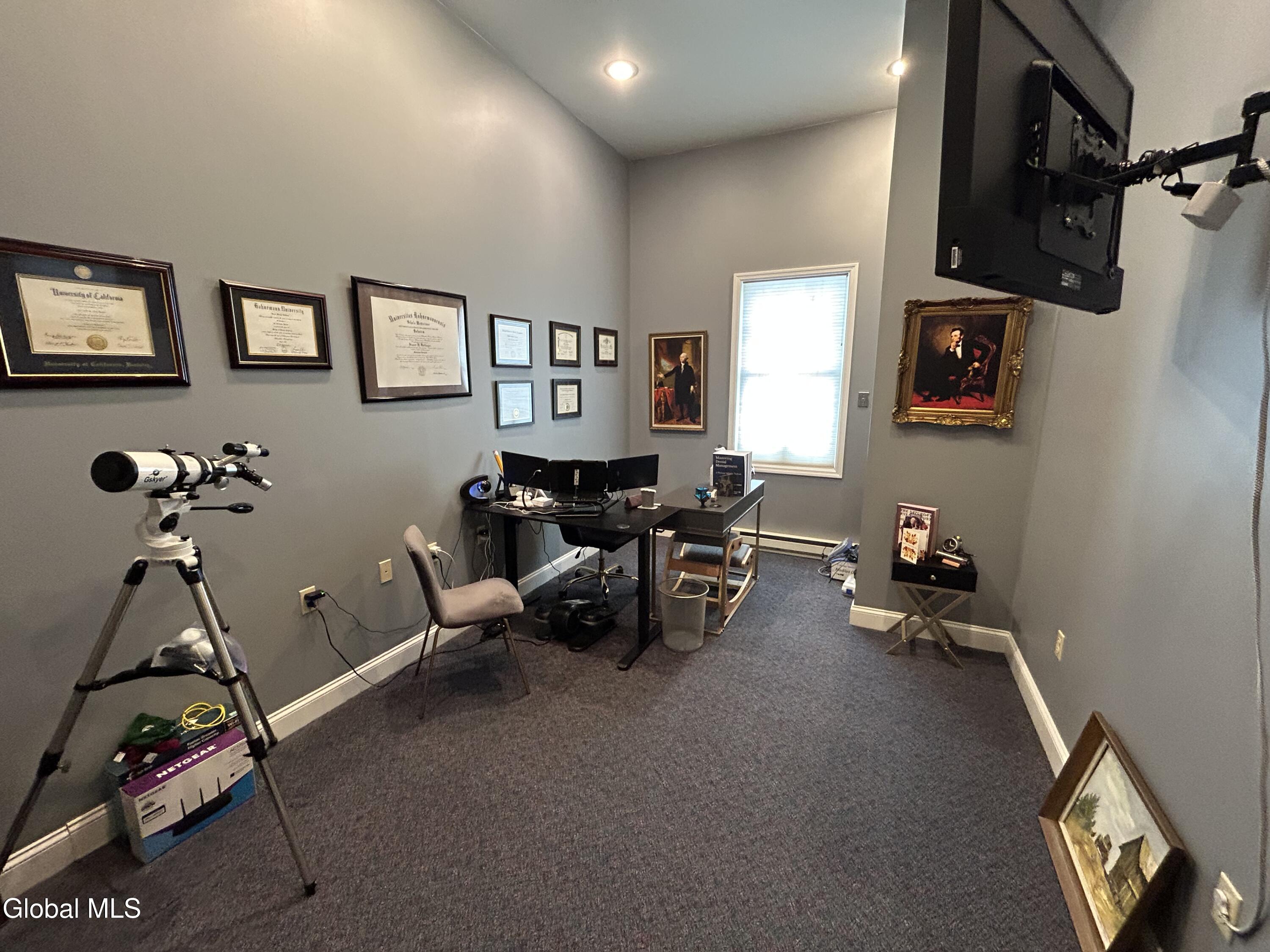 Unique Plattsburgh City home close to the hospital and school. Built in 2006, this property offers a contemporary design. It has three bedrooms, with flexible space for additional bedrooms utilizing the large loft or the first floor office suite. Originally designed for a medical professional, the home includes dedicated office space with a private entrance. The living room feels extra spacious and warm with a cathedral ceiling and toasty gas fireplace. Desirable features include 3.5 baths, a well-appointed kitchen with upgraded cabinetry, appliances and solid surface countertops, There is counter seating too. Once in the basement you not want to leave. It is separated into three distinct areas; one section for casual entertaining and billiards, the second a large theater room and the third a fitness room, with adjacent full bath. Whether your looking for a great place to live or if you're a professional looking to have an office home, don't miss this gem, they don't come along very often.