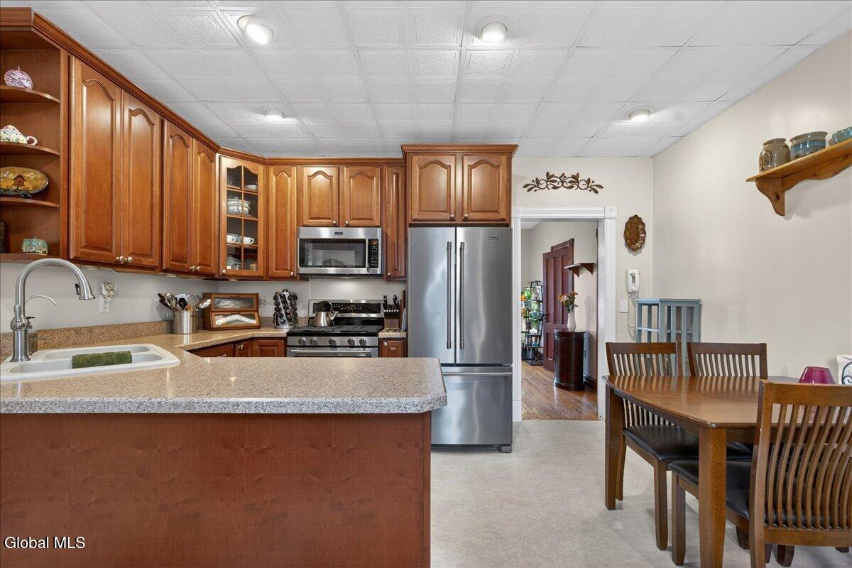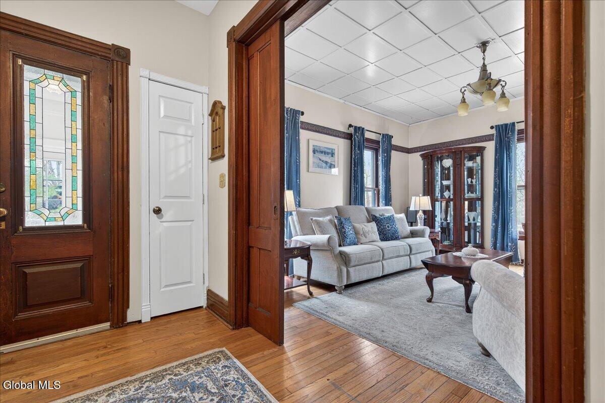 Multiple Offer Deadline, 4/1 at 8 PM! Step into this character-filled two-family home, where timeless details and thoughtful updates come together beautifully. Rich in historic charm, this property showcases stunning architectural features including pocket doors, stained glass, and original woodwork adding warmth and personality throughout. The expansive owner's unit feels like a true single-family home, offering three comfortable bedrooms and 1.5 baths, ideal for everyday living and entertaining. The second unit, laid out over two floors, includes a full bath, one-bedroom and a separate dedicated office space, perfect for today's flexible lifestyle. Whether used for rental income, guests, or extended living, it provides valuable versatility. A large two-car detached garage adds convenience and storage, while the property's overall layout offers the ideal balance of privacy and practicality. Enjoy the benefits of homeownership with the added advantage of income potential, all in a setting rich with character and charm. Home is ideally located near everyday conveniences, making it as practical as it is appealing.