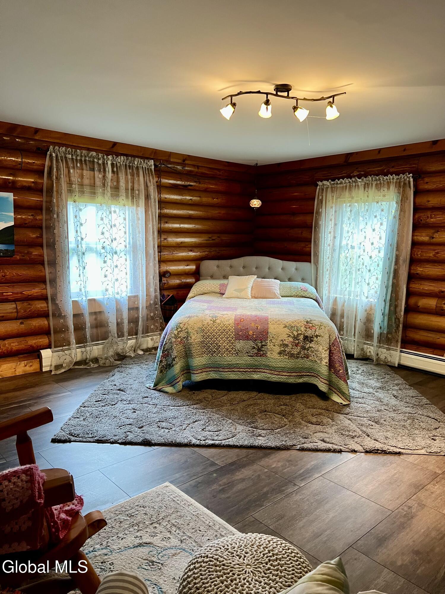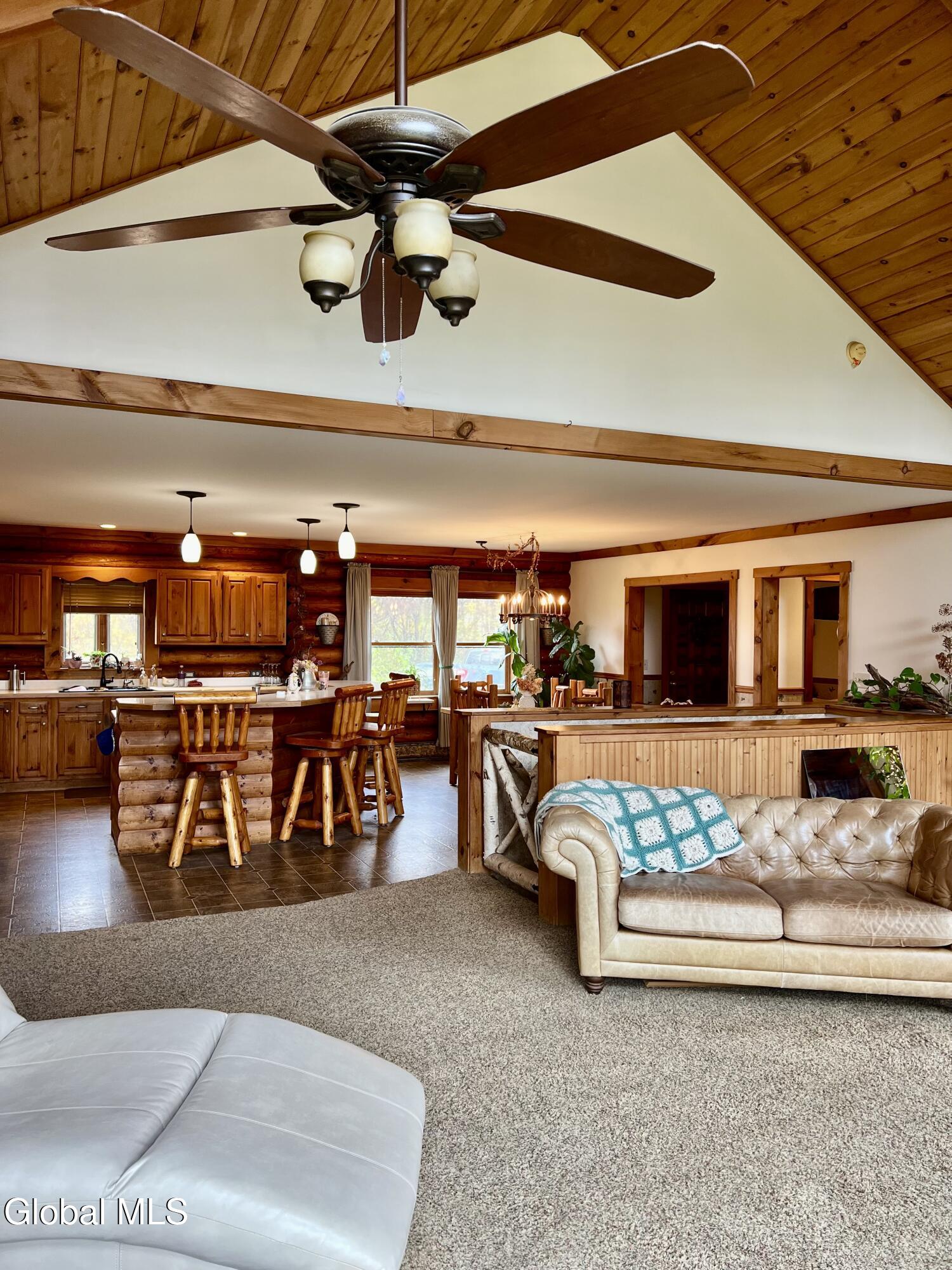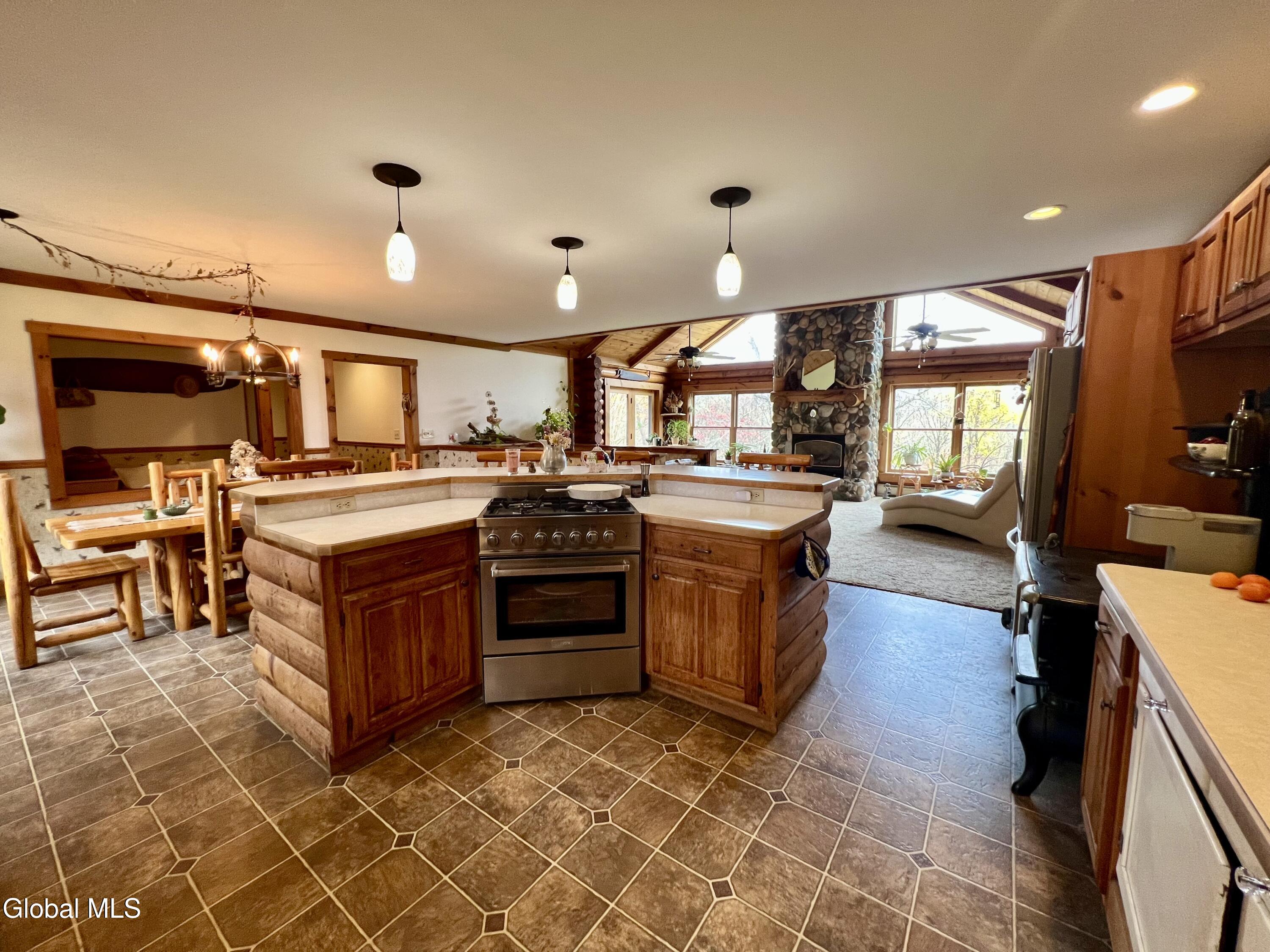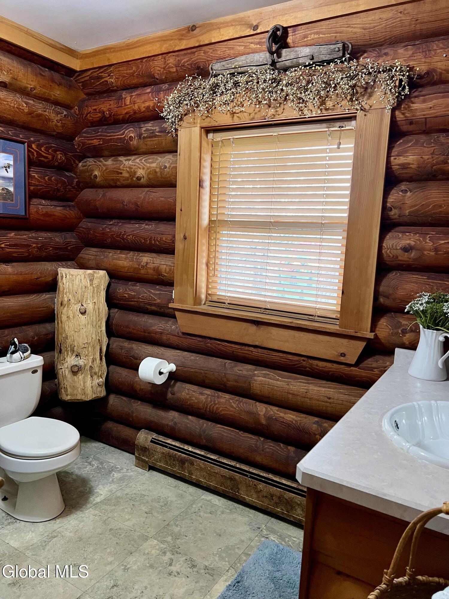 This 3 bedroom, 2 bath log home was built by a contractor for his family back in 2000. A lot of thought and care went into building it. Lovely perennial gardens. The main part of the home is open concept with Kitchen, Dining and Living Room offering great space for gathering. Log dining room set and 4 log stools, at eat at counter, are staying with the house. Cathedral ceiling and beautiful gas fireplace in the living room, with windows on both sides. French Door leading out to the upper decks. Master Bedroom with sitting area, walk-in closet and updated bath w/ granite counter and walk-in tile shower, is on the opposite end of the house from the other 2 bedrooms, which have a bath next to them. Laundry area is on the main level. Full Basement with huge potential for more living space. There is already a family room in the basement. This family was big into archery, and there is a space in the basement for practicing, and the seller will leave the set up if someone is interested in it. Lots of extra space for a workshop. Attached garage offers lots of space for a workshop, and/or cars. Paved Driveway makes life much easier. Surveyed lot is .64 acres. Other items included in the sale are the old cookstove in the kitchen (currently not hooked up to a chimney, but it is more than decorative, as it makes a great place to put hot dishes for serving. A log stand in the living room and the log rocking chair in the master bedroom are also included in the sale. Updated Propane Heating System installed 1/11/2017