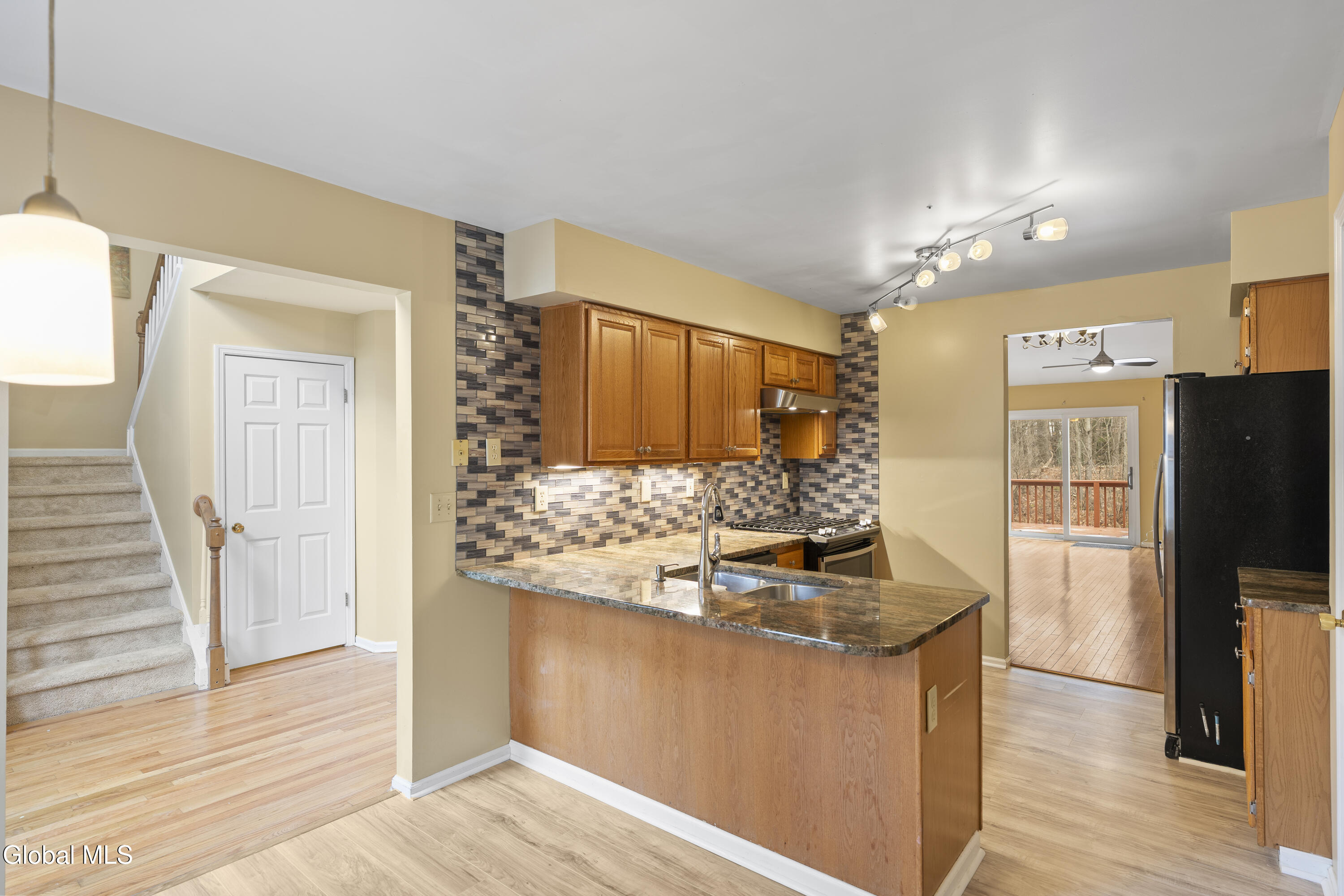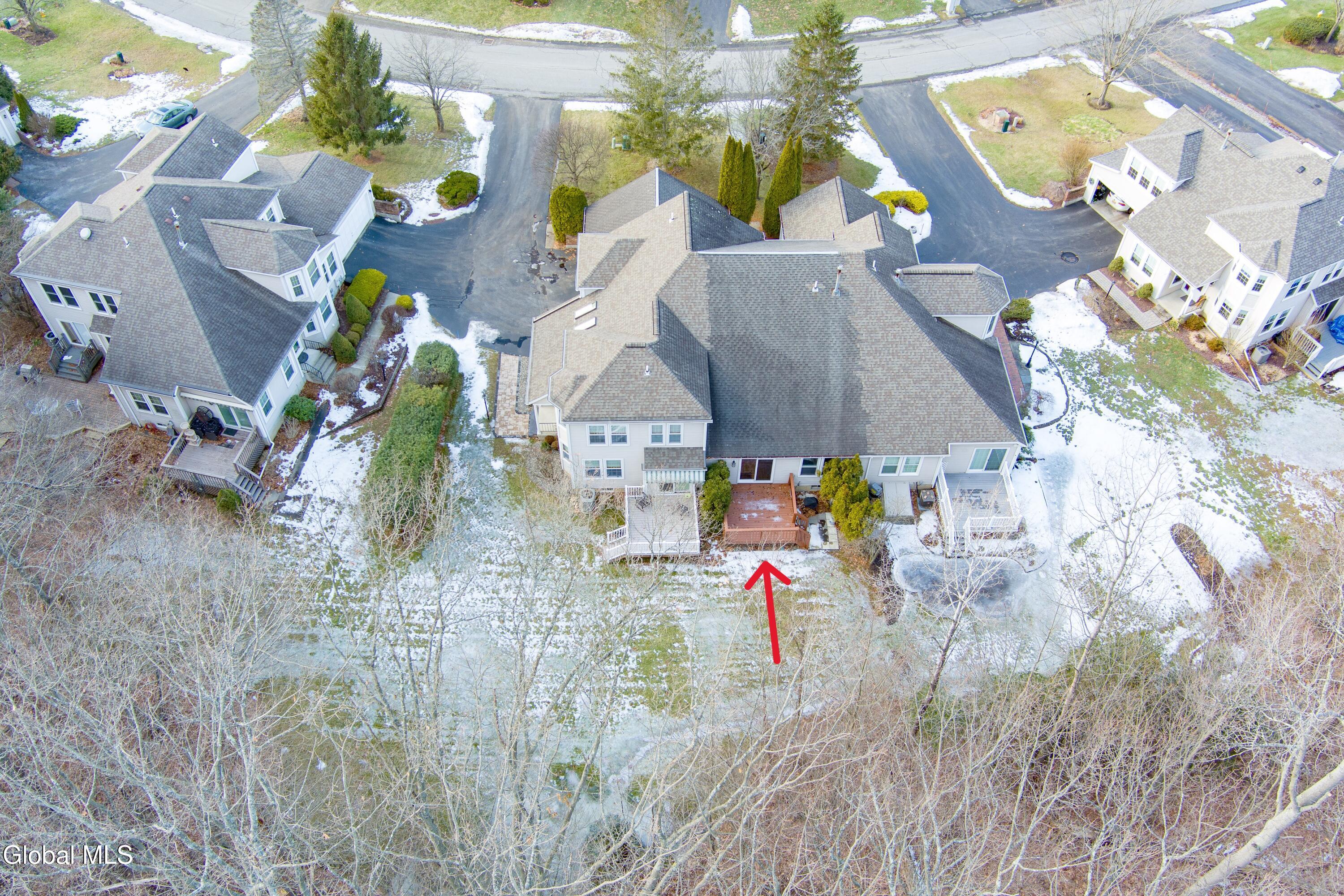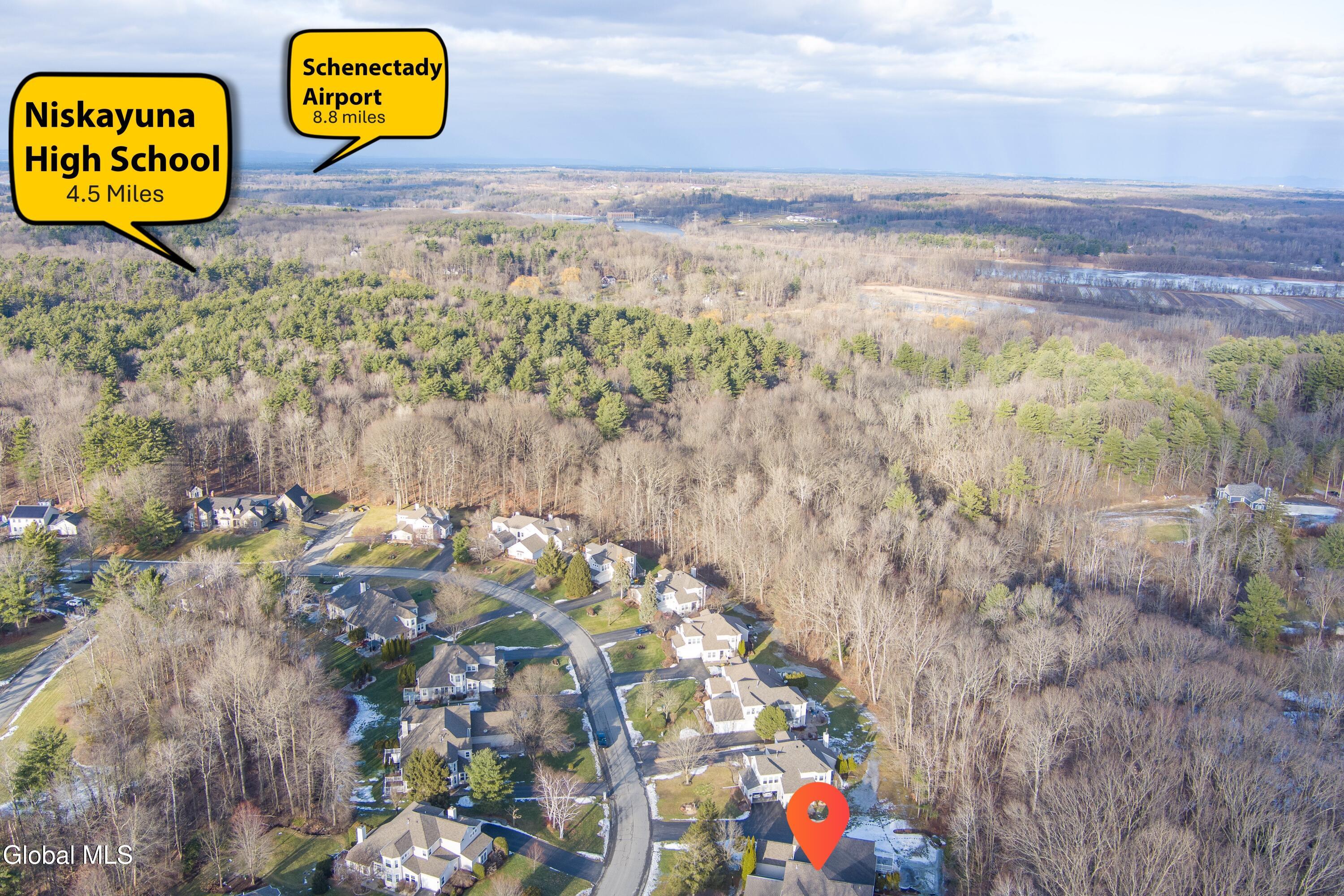 This well-maintained middle-unit townhome in the highly desirable Avon Crest North community offers an ideal blend of low-maintenance living, flexible space, and first-floor living—perfect for a first time buyer, downsizers and relocation buyers alike. The open-concept floor plan and sun-filled living room with vaulted ceiling create an inviting, easy-flow layout designed for comfort without excess upkeep. The eat-in kitchen features oak cabinetry, ample counter space, a new dishwasher, and a vented stove, with convenient access to the dining and living areas—ideal for everyday living or hosting family and friends. The first-floor primary suite includes a walk-in closet and not one but two walk-in showers, offering the option to customize one into a soaking tub or spa-inspired retreat. First-floor laundry adds everyday convenience, especially appealing for those seeking one-level living. Upstairs, newer carpet complements a versatile loft/sitting area—perfect for a home office, reading nook, or creative space—along with an additional bedroom and full bath, ideal for guests or visiting family. Step outside to a private rear deck overlooking a peaceful, wooded backdrop, providing a quiet space to relax and unwind. The basement offers outstanding potential for future finished space, suitable for a family room, guest suite, in-law area, home gym, or hobby space. Garage features a charger for EV. Enjoy excellent walkability and a central location close to schools, shopping, dining, parks, medical facilities, and major commuter routes—a key advantage for out-of-area buyers seeking convenience and ease of transition. Move-in ready, thoughtfully designed, and located within the Niskayuna School District, this townhome delivers comfort, versatility, and lifestyle simplicity. Virtually staged.
