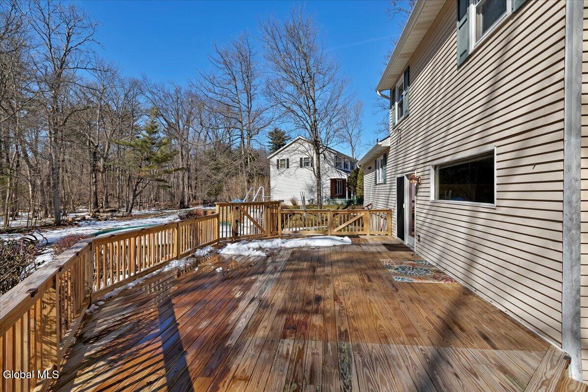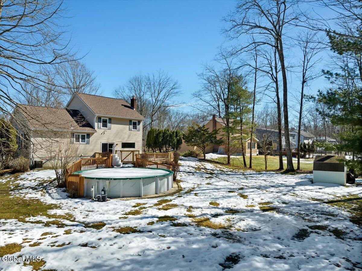 ***MULTIPLE OFFERS! Final and best by Sarurday, 3/14 4pm.*** Location, privacy, and opportunity - this Treemont Woods property checks all the boxes! Set on a beautiful lot backing to forever wild land leading to the reservoir, this custom multi-level home is tucked away on a quiet cul-de-sac in one of Clifton Park's most sought-after neighborhoods, just off Exit 8 and within the Shenendehowa School District. The home features 3 bedrooms and 2.5 baths with a flexible layout designed for comfortable living. A vaulted ceiling in the living room creates an open feel, while the step-down family room provides a comfortable gathering space and leads directly to the outdoor living area. The redesigned and updated kitchen offers modern functionality, and a partially finished basement adds additional space for recreation, hobbies, or a home office. Outdoor living is a highlight, with a large wood deck overlooking a beautiful backyard and above-ground pool, creating the perfect setting for summer entertaining or relaxing while enjoying the peaceful natural surroundings. Treemont Woods offers a quiet residential setting while remaining conveniently close to many Capital Region destinations: • 3 minutes / ~1 mile to I-87 (Northway) Exit 8 • 10-12 minutes to Saratoga Lake • 15 minutes to GlobalFoundries in Malta • 20 minutes to downtown Saratoga Springs • 20-25 minutes to downtown Albany With its desirable neighborhood, scenic backyard setting, and convenient location, this home presents a great opportunity to enjoy all that Treemont Woods has to offer.