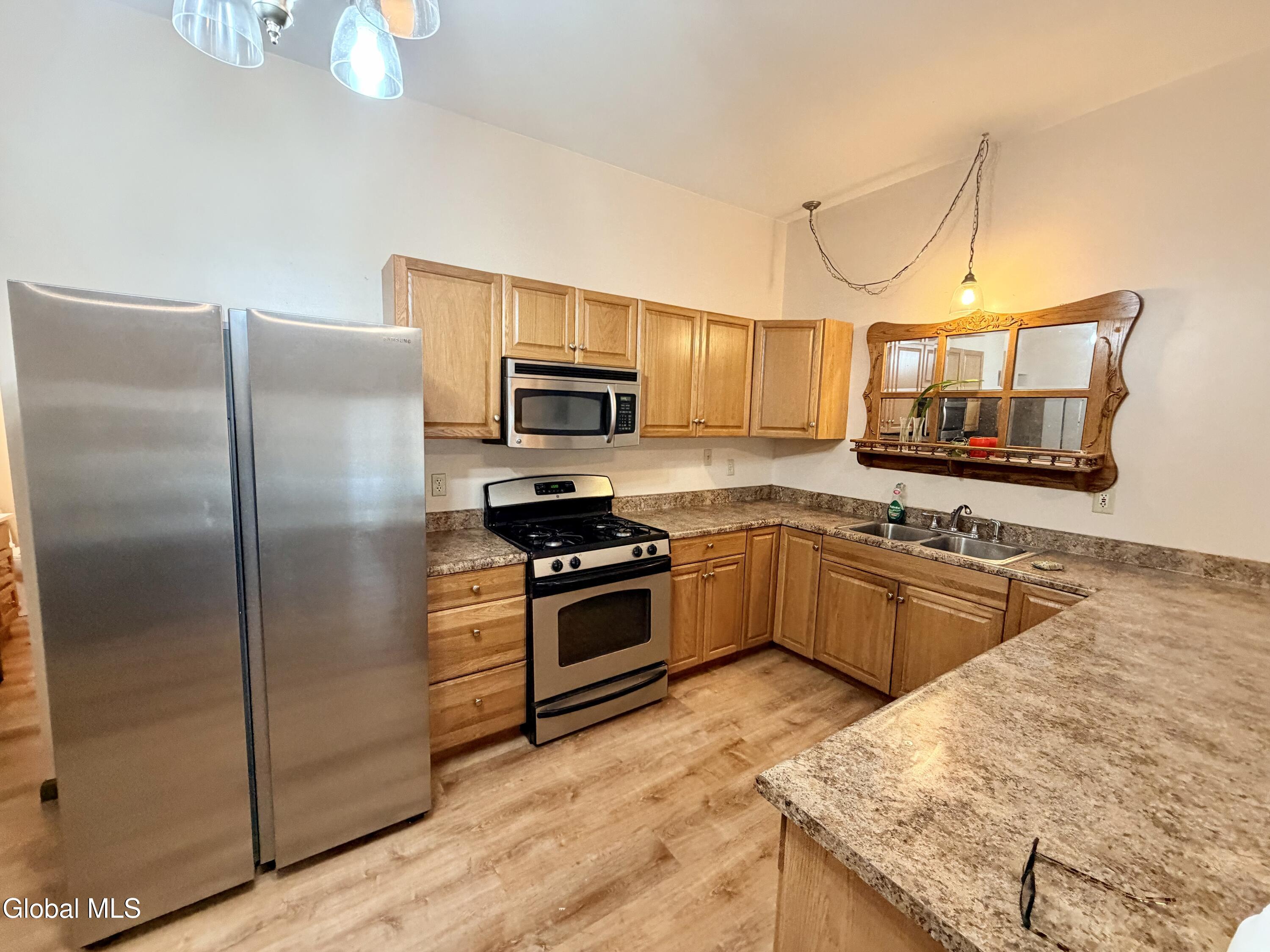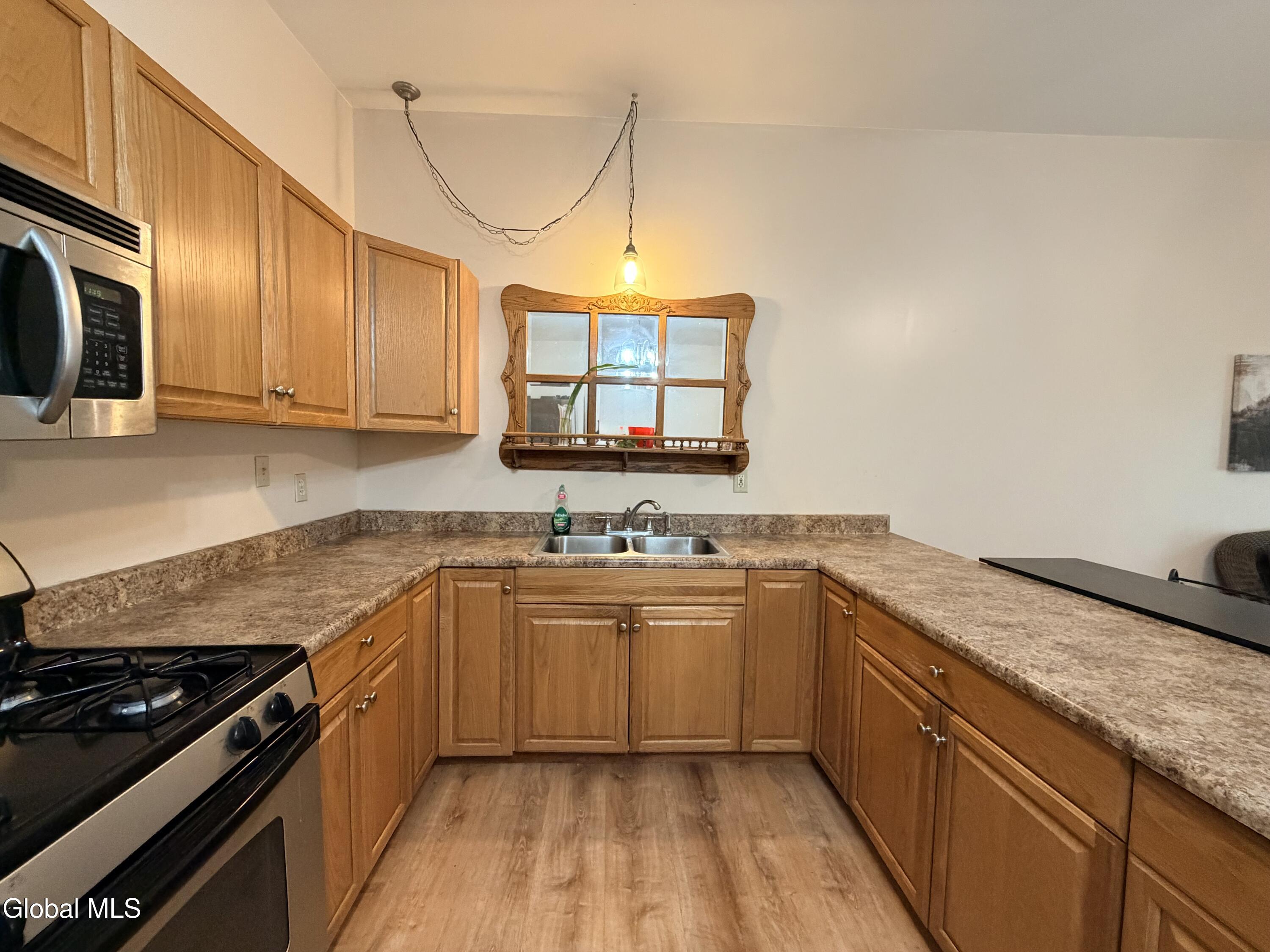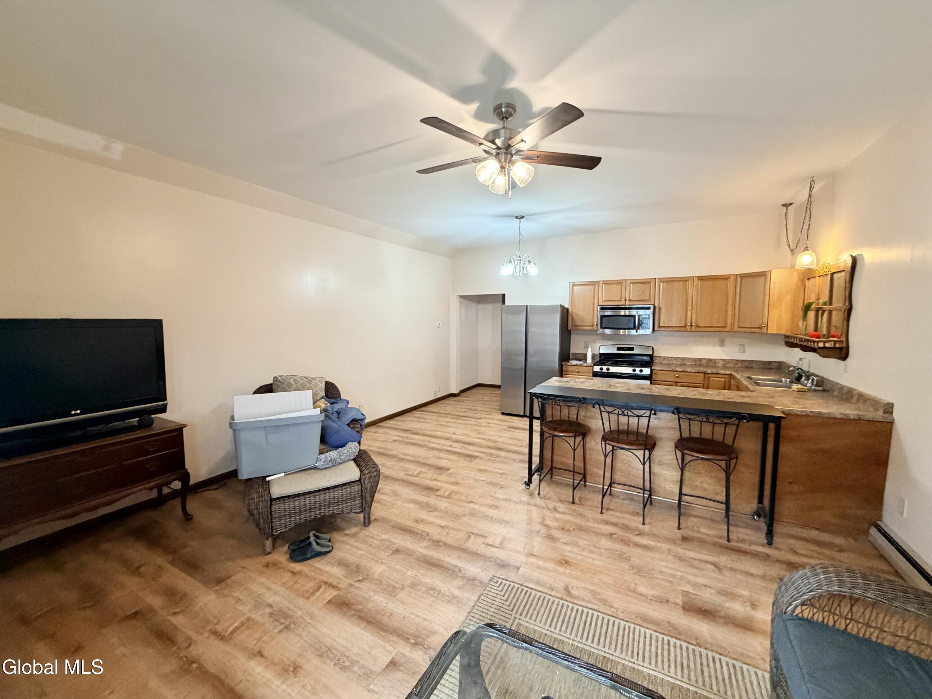 What an incredible opportunity this property offers. Originally designed for both commercial and residential use, it is now zoned residential and presents exceptional flexibility--ideal as a single-family home with separate living quarters or easily converted into a two-unit property. Located in the heart of Amsterdam's West End, this home offers exceptional convenience with close proximity to the hospital, local bars and restaurants, convenience stores, and the train station--all within walking distance. The right side of the home features a spacious living room with sliding doors that open to a cozy front deck/porch. This side also includes a large kitchen with ample cabinetry, a full bath, and a comfortable bedroom. A shared laundry room connects to the left side of the property, which offers its own full bath, a living room (with potential to be converted into an open-concept living/kitchen great room), and a bedroom. Sliding doors on this side lead to a private front deck/porch, creating a separate and inviting entrance. The home also includes a dry basement equipped with on-demand hot water and a furnace, adding efficiency and peace of mind. A 2-year-old roof adds additional value and reduces immediate maintenance concerns. With a shared driveway and a small side yard, this versatile property is full of potential and should not be overlooked. Move in condition!