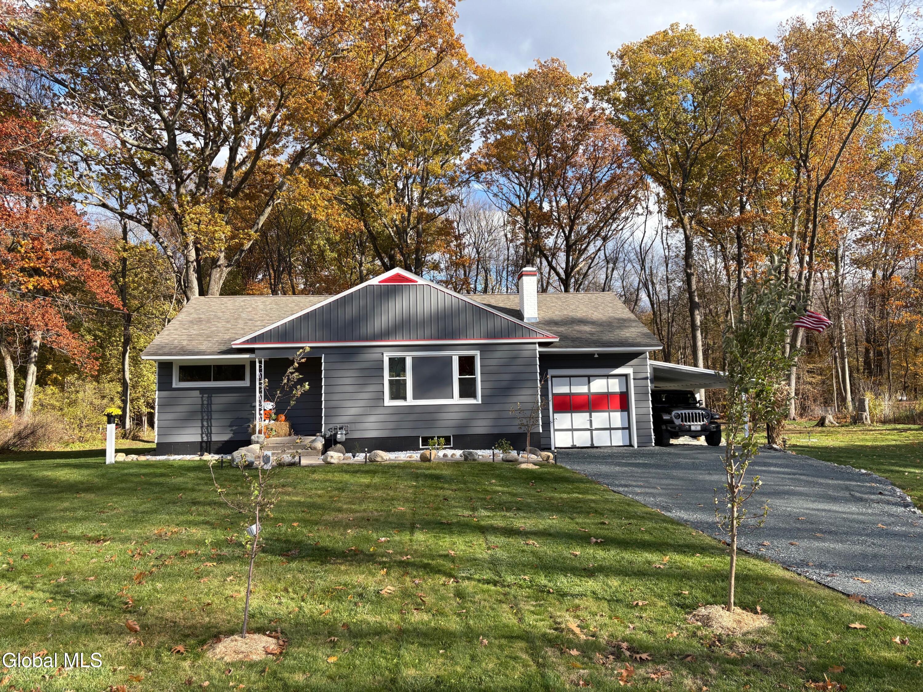 Retro charm with a taste of contemporary design! This unique turnkey property offers many new upgrades. Family owned since 1958. A dream home with custom touches that has gone through a transformative modernization while maintaining its original character. The exceptional attention to detail leaves you with new home aesthetics and functionality. Located in a highly desirable neighborhood, this parcel has room for town permitted expansion for those growing families, or a retirement plan for seniors, which features a level yard for easy walking. This property has an apple orchard in the front yard! New crushed stone driveway with underlayment installed, leaving room to expand for added parking if needed. The garage is finished as an entertainment family room with built-in sink and 65'' TV. You won't find a basement as clean as this one, and offers plenty of room for additional square footage. Check out the fully renovated living room with fireplace and marble entrance, new bathroom and updated bedrooms and staircases. The kitchen features vintage yellow pine cabinets, stainless steel appliances, and custom mini-bar. Morning sun shines through the rear windows that light up the kitchen, bathroom and 2nd bedroom, and continues to the upstairs bedroom and living room, sunsetting in the front yard. The backyard is pool ready, while offering woodland views with plenty of nature, and features a fire pit for entertaining family and friends. The huge oak tree out back is ready for a custom treehouse with swing. Relax in front of the living room fireplace after a long day, or entertain guests with a home that speaks for itself. Yes, that is a built-in 5' Fort Knox vault for your valuables! Other new features include LG Smart washer and dryer, touchscreen Honeywell smart thermostat, locking mailbox, vinyl replacement windows, Ring security door bell system, and App controlled Govee path lighting. See documents and pictures for a full list of updates and renovations.