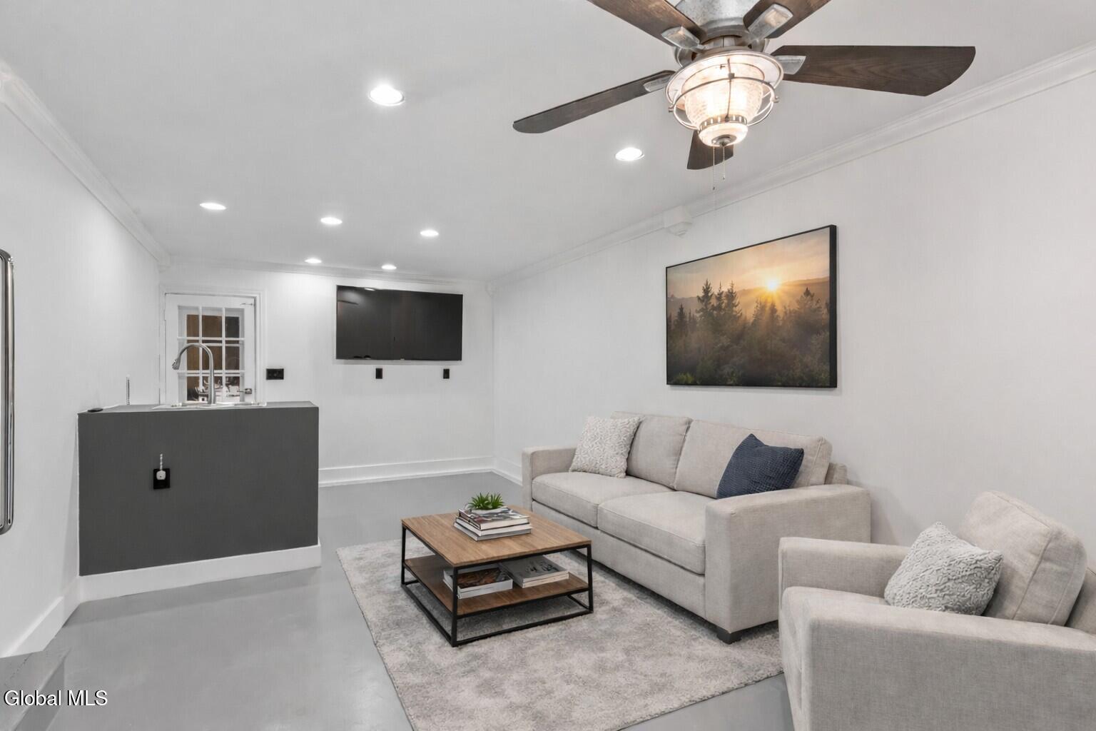 This unique, turnkey ranch located in the heart of Glenville, offers one-floor living and has been thoughtfully transformed with modern upgrades while preserving its original character. Lovingly maintained by the original owner, the home reflects exceptional attention to detail throughout. The fully renovated living room features a fireplace and elegant marble entry, creating a warm yet refined gathering space. A large number of updates have been thoughtfully completed (full list available). Updated paint, a beautifully refreshed bath, and bright, sun-filled spaces enhance everyday comfort. Morning light pours into the kitchen, bath, and second bedroom. The kitchen showcases stainless steel appliances and a custom mini-bar, blending style and function. A finished garage with built-in sink serves perfectly as an entertainment or family room. The spotless basement is ready for gym equipment or additional flexible use. The private backyard is pool or garden ready with peaceful woodland views and a fire pit for relaxing and entertaining. A new crushed stone driveway with proper underlayment ready for blacktop offers room for added parking. Additional highlights include a 5' Fort Knox vault, LG Smart washer and dryer, touchscreen Honeywell thermostat, Ring security system, vinyl replacement windows, locking mailbox, and app-controlled Govee path lighting. Close to all amenities Glenville Has to offer.