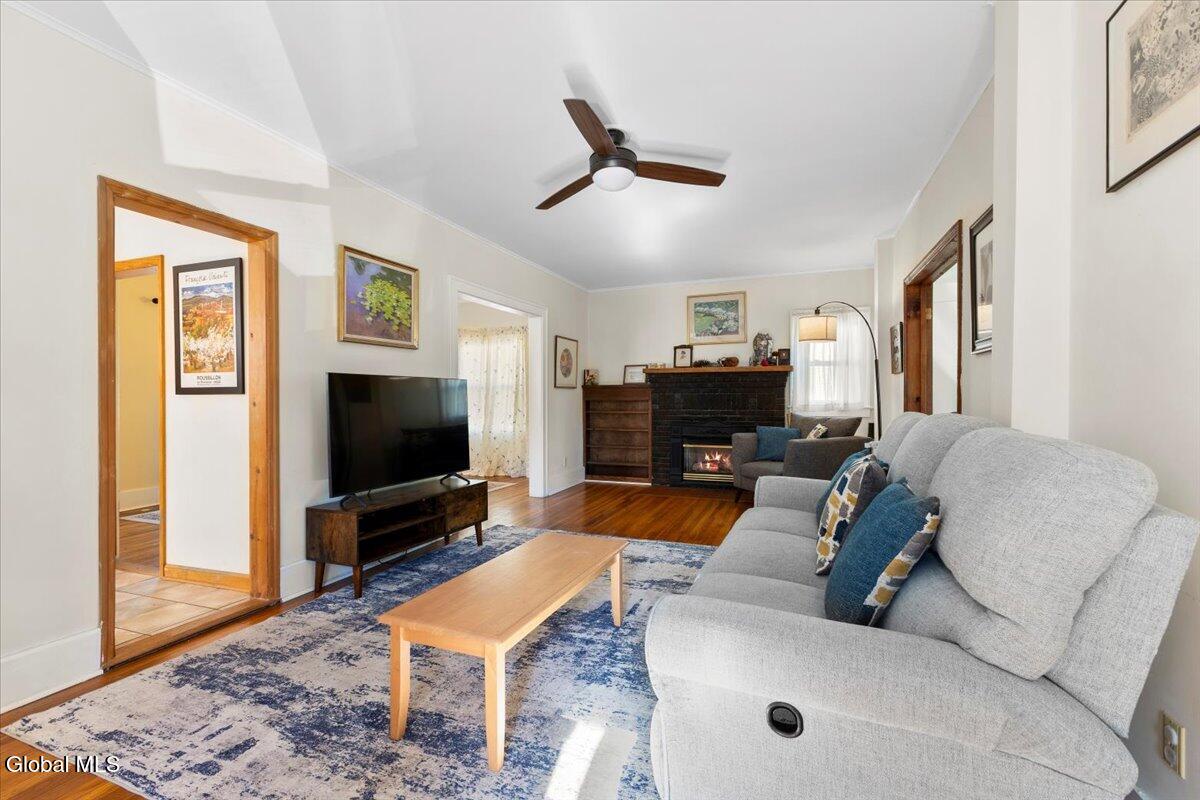 A True Bethlehem Charmer - 15 Roweland Avenue, Delmar Centrally located in the very heart of Olde Delmar, this sweet home offers both charm and convenience in one of the area's most popular neighborhoods. Updates include a newer roof, kitchen appliances, and a brand-new hot water heater—providing peace of mind along with timeless character. Step inside to a welcoming entryway designed to keep life organized, leading to a bright, functional kitchen perfect for cooking and gathering. The living room with a cozy gas fireplace and front den provide flexible space for relaxing, working, or play. The formal dining room, complete with French doors, opens to a deck and lovely backyard—ideal for entertaining or quiet evenings outdoors. A convenient half bath completes the first floor. Upstairs, you'll find three comfortable bedrooms and a full bathroom. Hardwood floors run throughout most of the home, with new carpet in the den adding a touch of comfort. All this, just steps from the library and Delmar's beloved Four Corners Town Center with its shops, restaurants, and small-town charm. This well-cared-for home perfectly blends warmth, character, and location—a true Bethlehem classic ready for its next chapter!