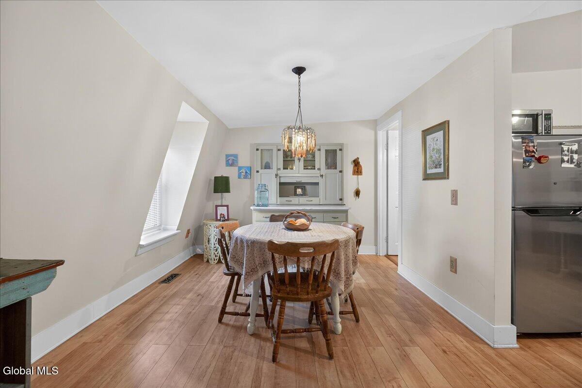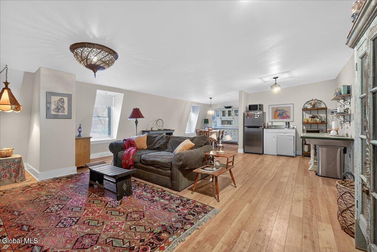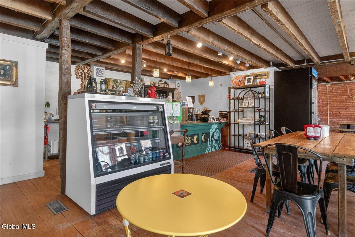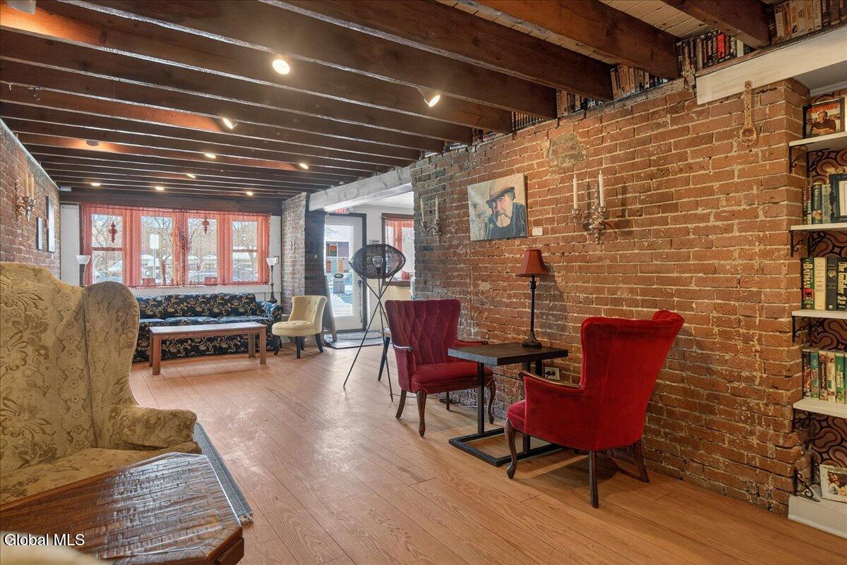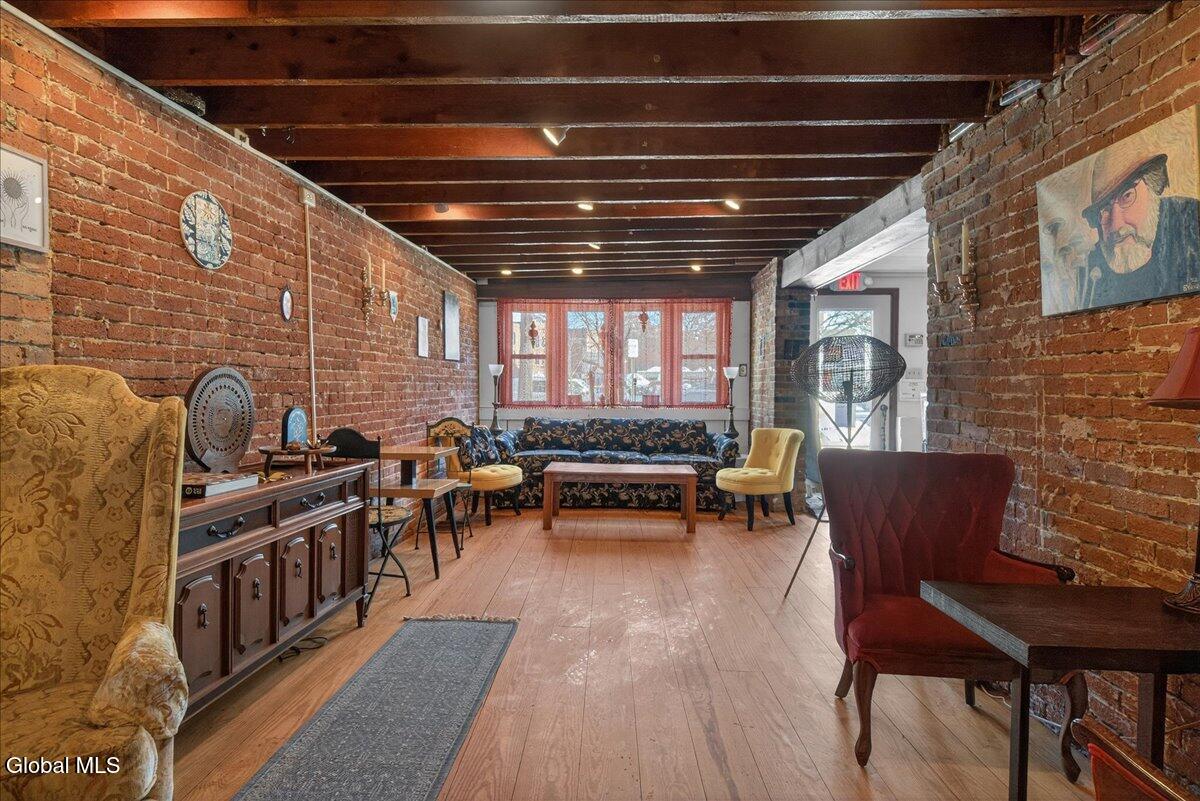 Outstanding Downtown Glens Falls Property! Don't miss the opportunity to acquire one of the oldest buildings in Glens Falls! This mixed use building has been updated and maintained to perfection. Great tenants! Thriving 1st floor restaurant with vaulted ceilings, wood floors and exposed beams. Full kitchen, outdoor patio area and 4-6 off street parking spots. Full basement for utilities and storage. Unit 1 is a 2 bedroom, 2 bathroom, 2nd floor apartment with an office, that has been completely renovated and updated! LV flooring, new fixtures, fresh paint throughout, private entrance, open concept living space and one of the coolest bathrooms you will find in an apartment. Unit 2 is a 1 bedroom/1 Bathroom, 2 story apartment with unique space. Exposed brick, private entrance, storage closet-Outstanding apartment! Separate HVAC for each unit. This Property has Character!! Quaint alley setting with public parking in the front and rear of the building. Come take a look at this special property! Building for sale only.