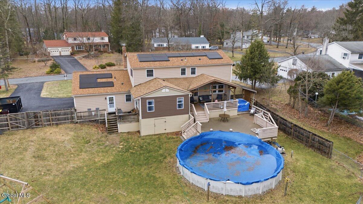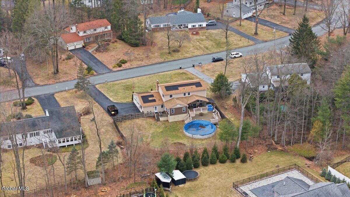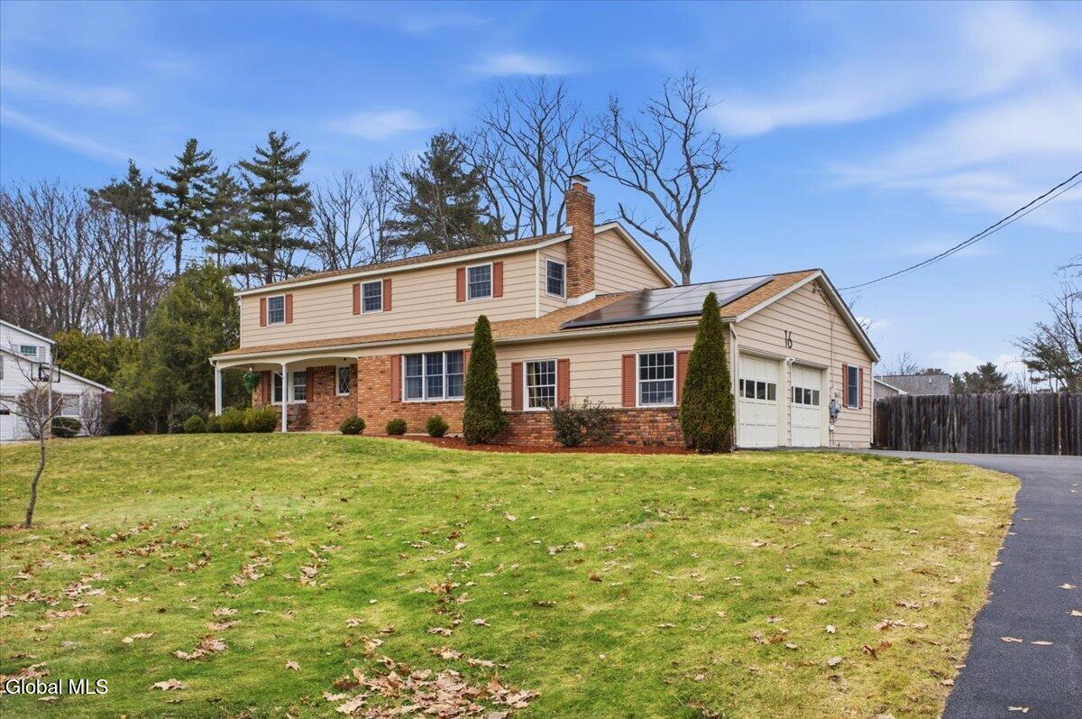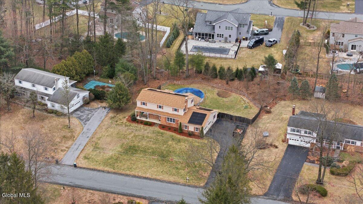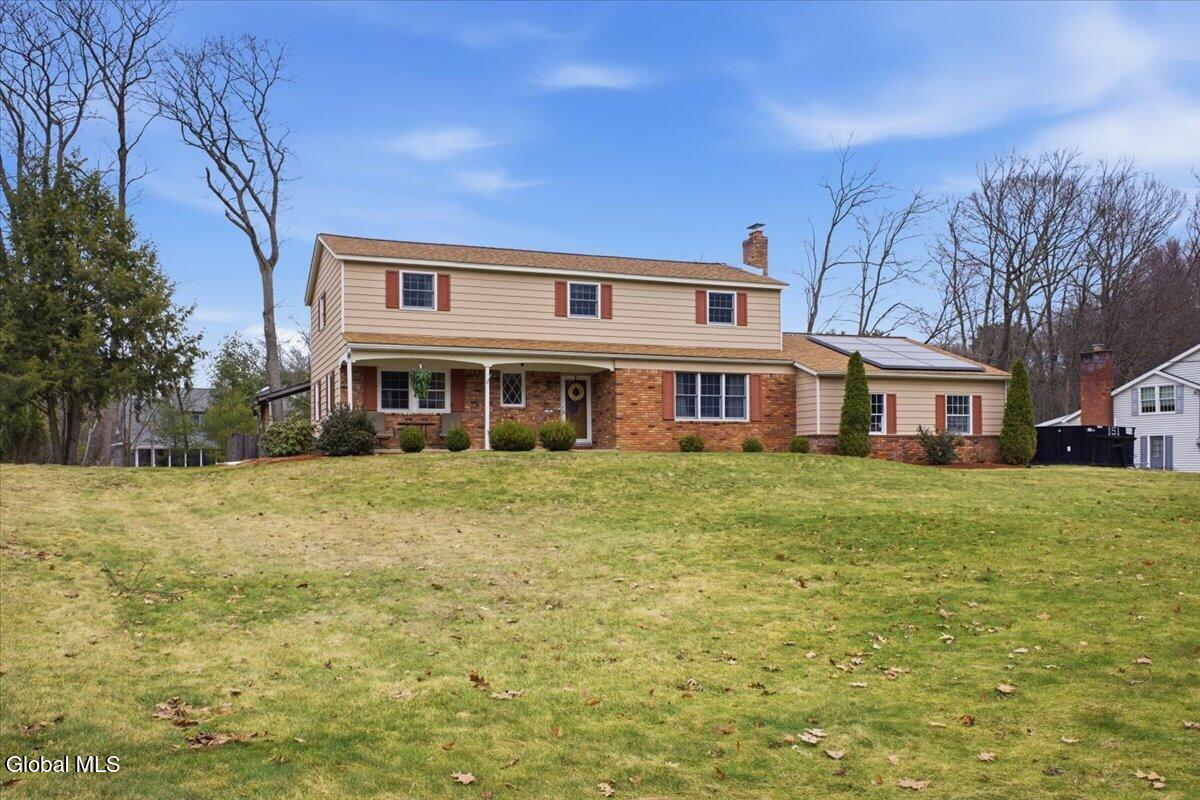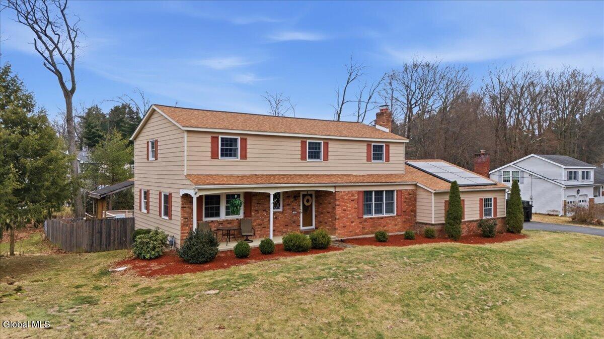 Best and Final due in by Sunday 3/29 at 5pm. Very well-maintained Country Knolls Hanover Colonial located in the Shenendehowa School District. Offering 2,676 sq ft on a .57-acre lot, this spacious home features 4 bedrooms and 3 baths. The layout includes a formal living room and dining room, along with an updated eat-in kitchen featuring granite countertops, new flooring, new appliances and cabinets, and a large island with seating. The kitchen opens seamlessly to a comfortable family room with a gas fireplace, creating an ideal space for everyday living and entertaining. Gleaming hardwood floors run throughout much of the home. Additional highlights include a generous mudroom/laundry area off the garage and a heated, enclosed four-season porch overlooking the backyard. Outdoor features include a large deck, above-ground pool, and newer hot tub. The primary suite offers a spacious renovated bathroom with dual sinks, a walk-in closet, and a tiled walk-in shower with rain heads. The additional second floor full bath was recently renovated. Additional amenities include an in-ground sprinkler system and a Tesla Powerwall in the garage for energy storage. Solar panels are owned.