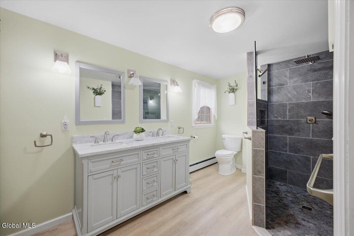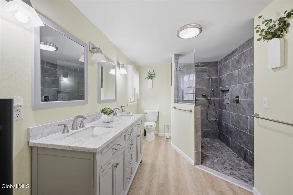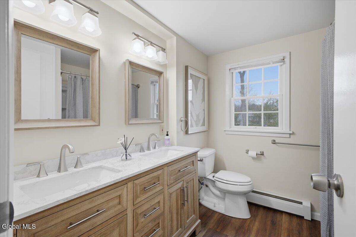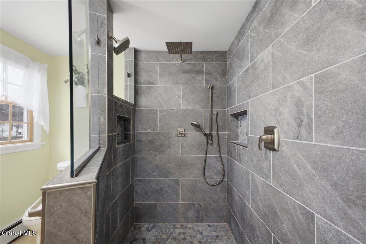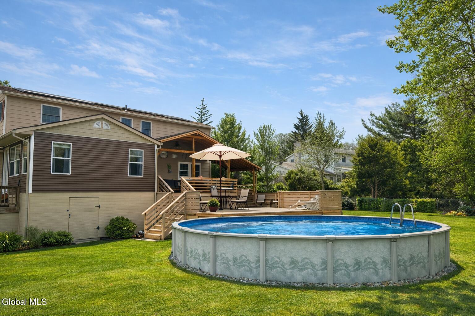 Best and Final due in by Sunday 3/29 at 5pm. Very well-maintained Country Knolls Hanover Colonial located in the Shenendehowa School District. Offering 2,676 sq ft on a .57-acre lot, this spacious home features 4 bedrooms and 3 baths. The layout includes a formal living room and dining room, along with an updated eat-in kitchen featuring granite countertops, new flooring, new appliances and cabinets, and a large island with seating. The kitchen opens seamlessly to a comfortable family room with a gas fireplace, creating an ideal space for everyday living and entertaining. Gleaming hardwood floors run throughout much of the home. Additional highlights include a generous mudroom/laundry area off the garage and a heated, enclosed four-season porch overlooking the backyard. Outdoor features include a large deck, above-ground pool, and newer hot tub. The primary suite offers a spacious renovated bathroom with dual sinks, a walk-in closet, and a tiled walk-in shower with rain heads. The additional second floor full bath was recently renovated. Additional amenities include an in-ground sprinkler system and a Tesla Powerwall in the garage for energy storage. Solar panels are owned.