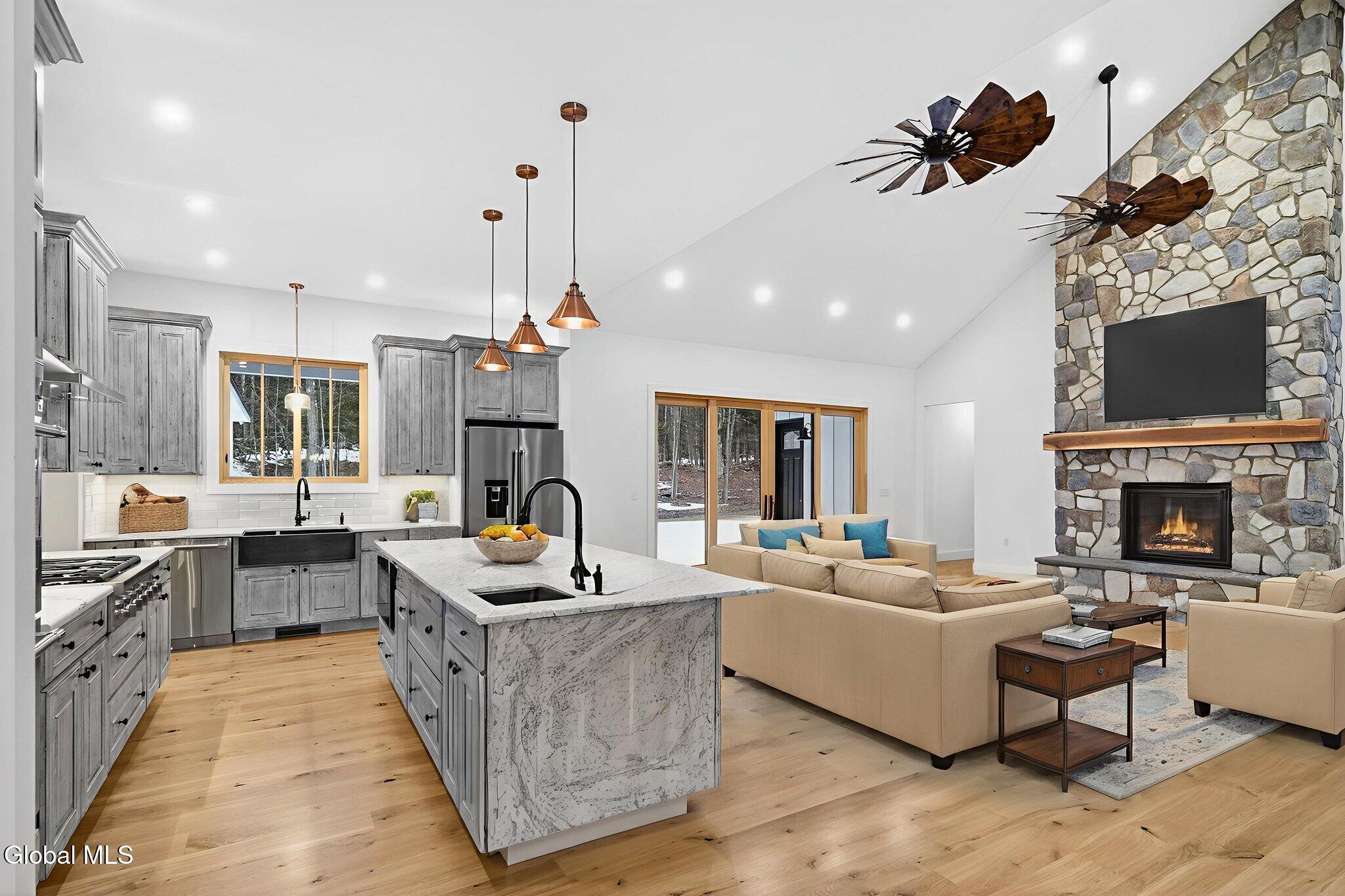 A rare opportunity to own a truly custom, never-lived-in modern ranch, thoughtfully designed and masterfully built as a forever home. Completed in 2025, this sprawling residence blends timeless materials with high-performance systems, offering coveted single-level living on just over five acres in Westerlo's picturesque countryside, surrounded by open land and Catskill Mountain scenery. Despite being newly constructed, the home carries a sense of warmth and permanence, feeling exceptionally quiet and filled with natural light. This modern farmhouse-inspired executive ranch balances open flow with intuitive, comfortable living. Features include geothermal HVAC, commercial-grade mechanical systems, smart home functionality, wide-plank white oak flooring with natural pine trim and finishes, a gourmet kitchen, a custom stone fireplace, a walk-in butler's pantry, and a beautifully appointed formal laundry room with cabinetry. The primary suite is thoughtfully connected to an oversized walk-in closet with island. Four bedrooms (including a flexible office or guest space) and 2.5 baths complete the main level. The full basement offers approximately 9-foot ceilings with dual access from the garage and rear patio, presenting exceptional potential for future finished living space. Additional highlights include a three-car attached garage with 13-foot ceilings, new well and septic, and nearly every major component of the home carrying a one-time transferable warranty, providing outstanding peace of mind. Located approximately 30 minutes from downtown Albany and the New York State Thruway, under 40 minutes to Hunter Mountain, and about an hour to Saratoga Springs, this home offers both privacy and accessibility. From its quiet strength and natural light to its thoughtful design and enduring materials, this home delivers a rare sense of comfort, permanence, and ease.